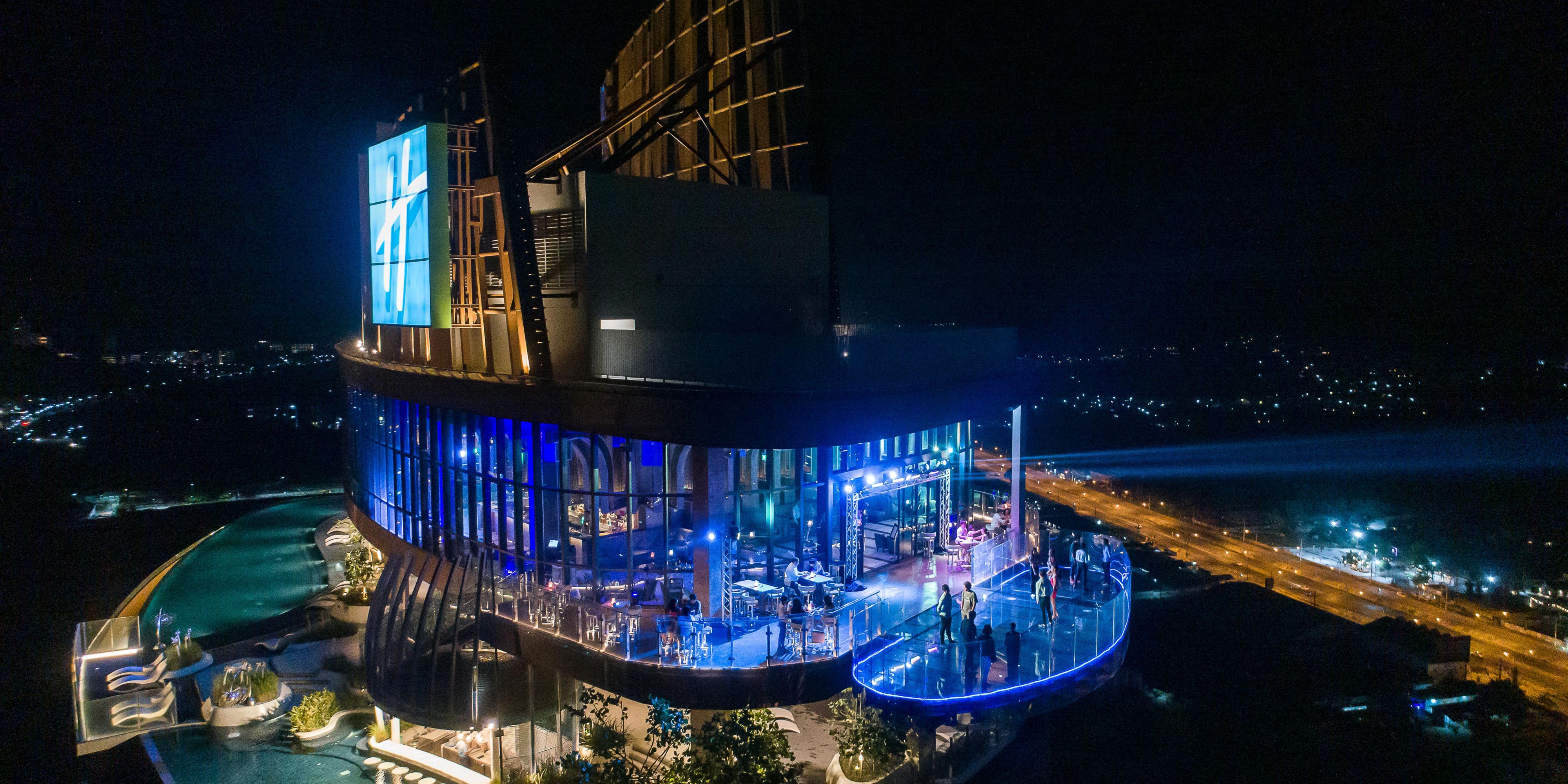 屋顶酒吧位于最高点,设有一个透明玻璃阳台,提供360度无障碍视角,可以看到海滩和华欣天际线。THE SKY 提供时尚的环境,是浪漫晚餐或饮品的理想选择,并拥有令人惊叹的夜景,使其成为必须体验的地方。