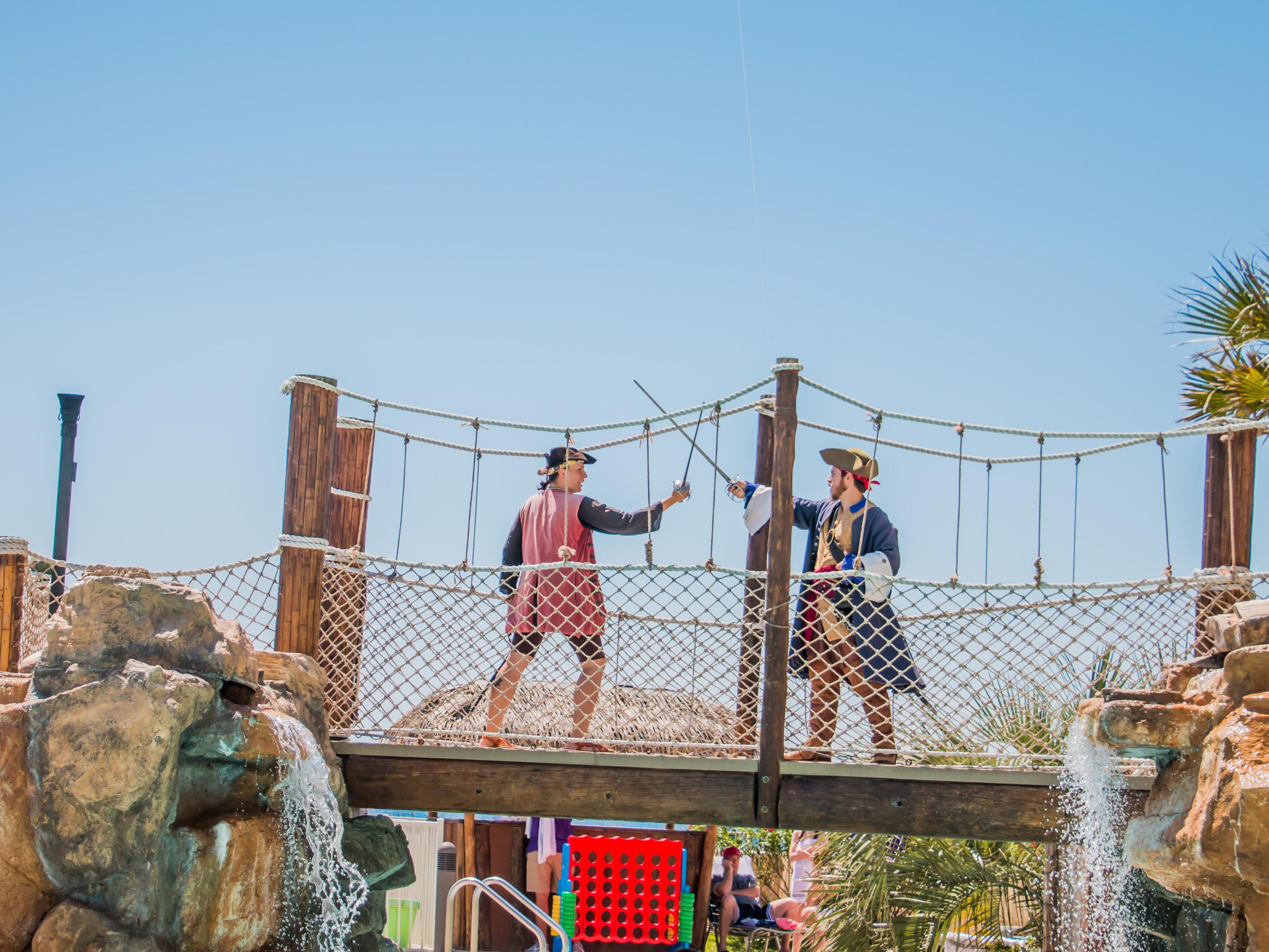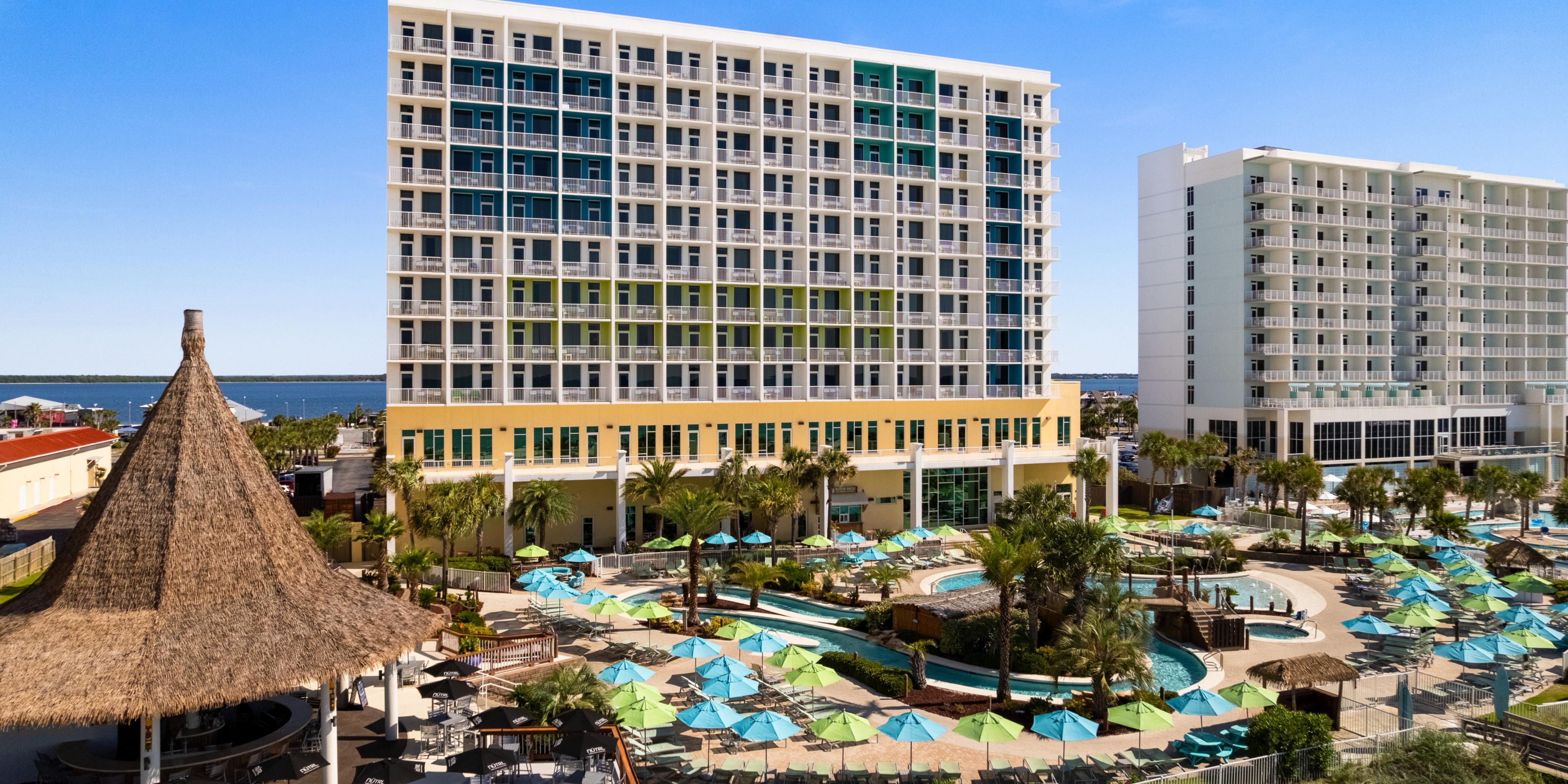Enjoy the best lazy river pool on the Pensacola beach at our hotel, complete with cascading waterfalls, two hot tubs, and poolside fire pits. Enjoy a cocktail or a bite to eat at the Riptides Sports Grill & Beachfront Tiki Bar. Our Pensacola Beach Resort hotel is within walking distance from several dining options at Quietwater Beach Boardwalk, along with fishing, paddleboarding, kayaking, and biking.