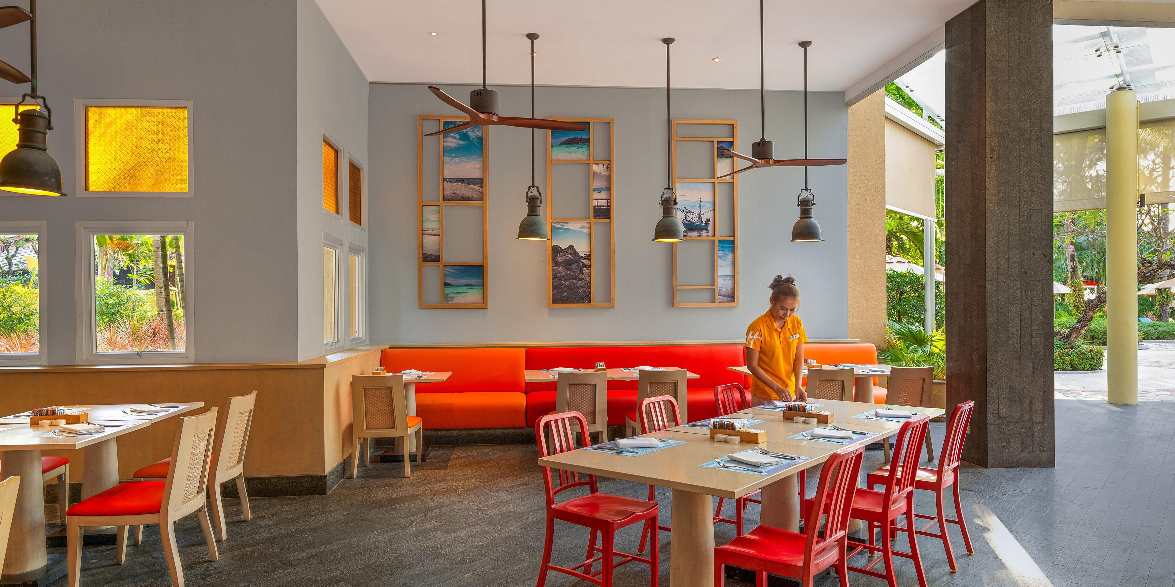 Savour the flavours of our four distinct restaurants. Sea Breeze Breakfast offers continental classics and local favourites. Sam’s Steaks serves expertly grilled prime cuts, while Terrazzo Italian features exquisite Italian cuisine in a charming setting. Enjoy authentic Thai creations at Charm Thai. We offer diverse dining to please every palate.