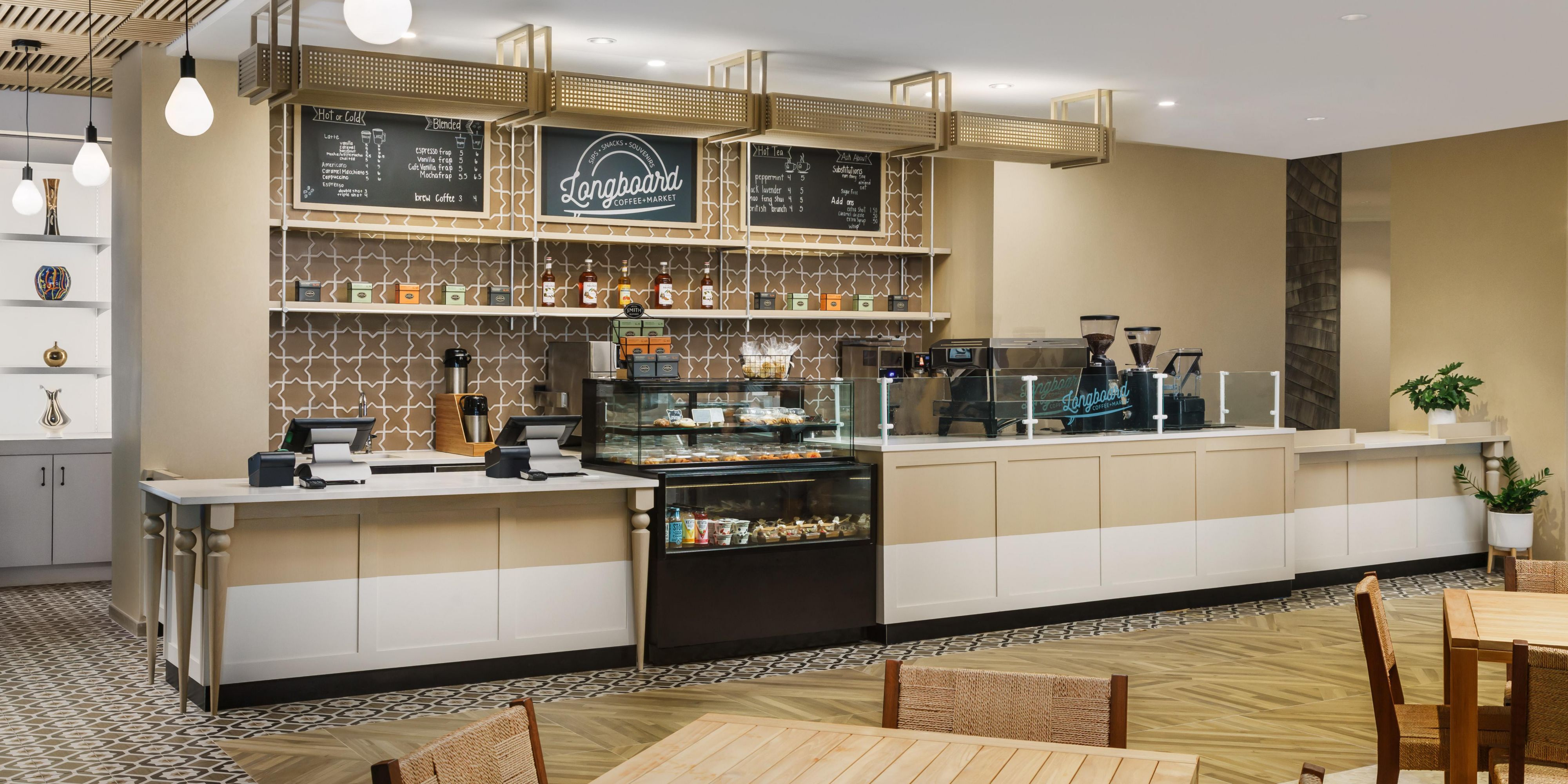 There are plenty of dining options, with 3 restaurants onsite including Solstice Oceanfront Kitchen + Cocktails, Surfside Beach Bar & Grille, or Longboard Coffee + Market.