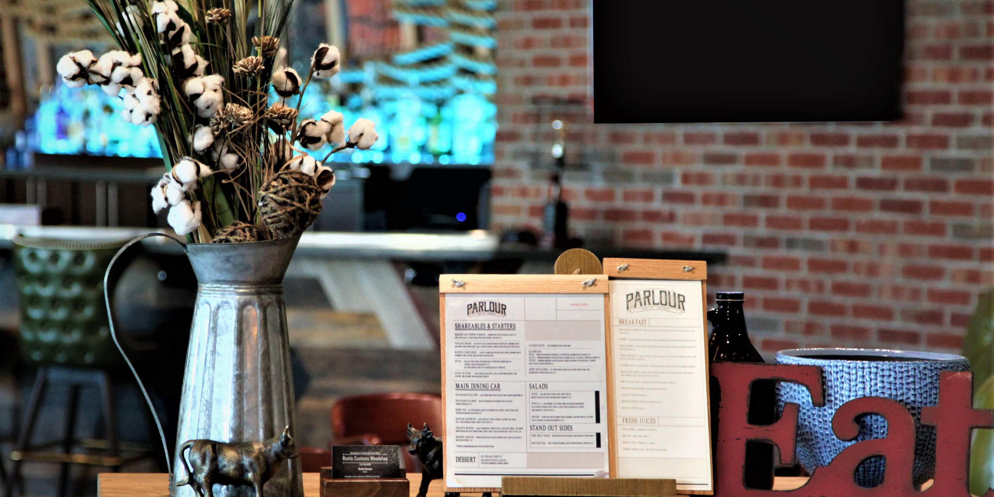Savor an exquisite dining experience at Parlour Bar and Grill, the perfect hub for group gatherings. Explore our diverse breakfast and dinner menus, featuring delicious options ranging from hearty cowboy omelets to mouthwatering burgers, tasty sandwiches, and crisp salads. Pair your meal with a selection of delightful drinks. Whether you're starting your day with a satisfying breakfast or unwinding with a flavorful dinner, our inviting ambiance and service ensure an unforgettable experience.