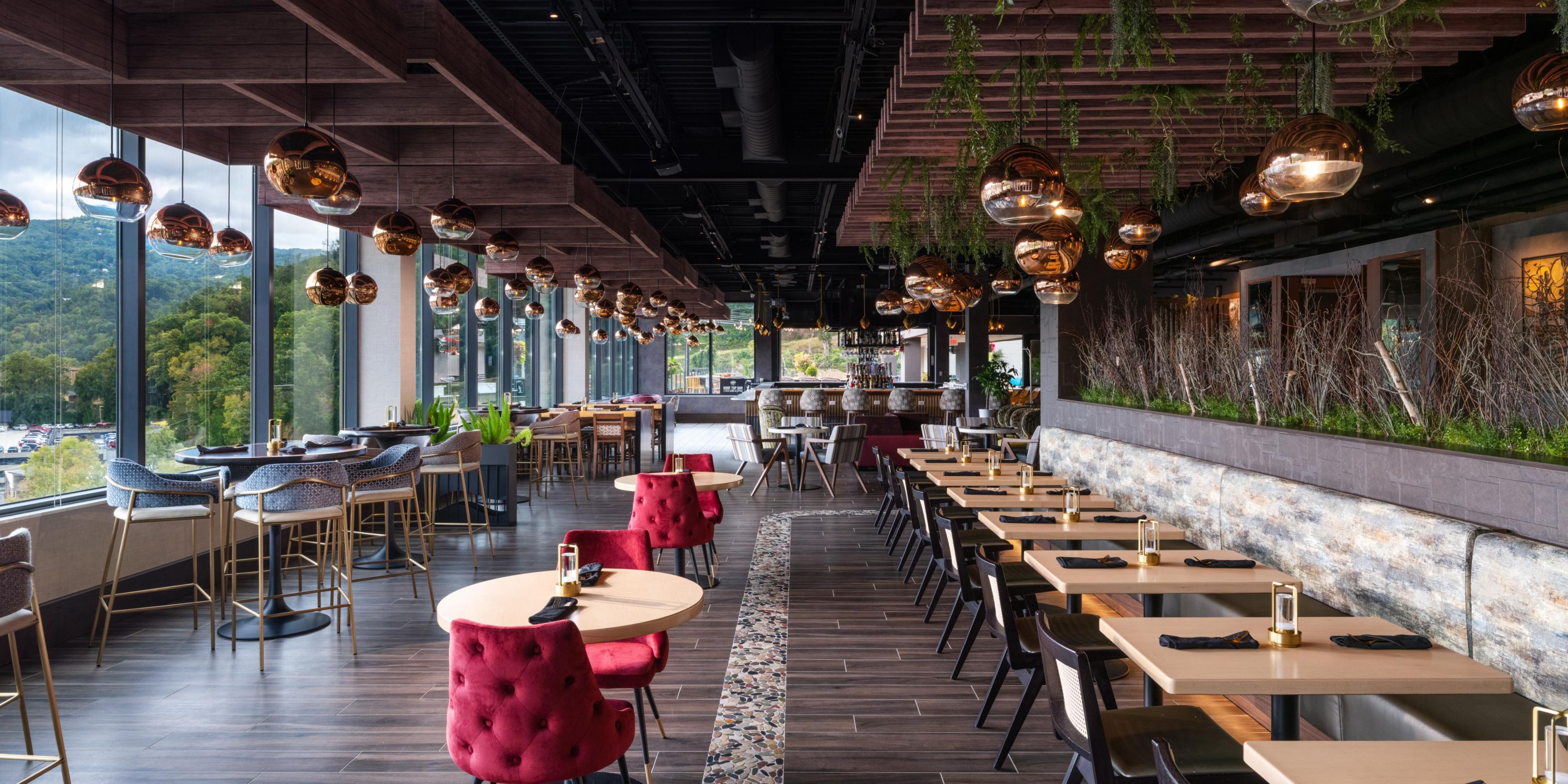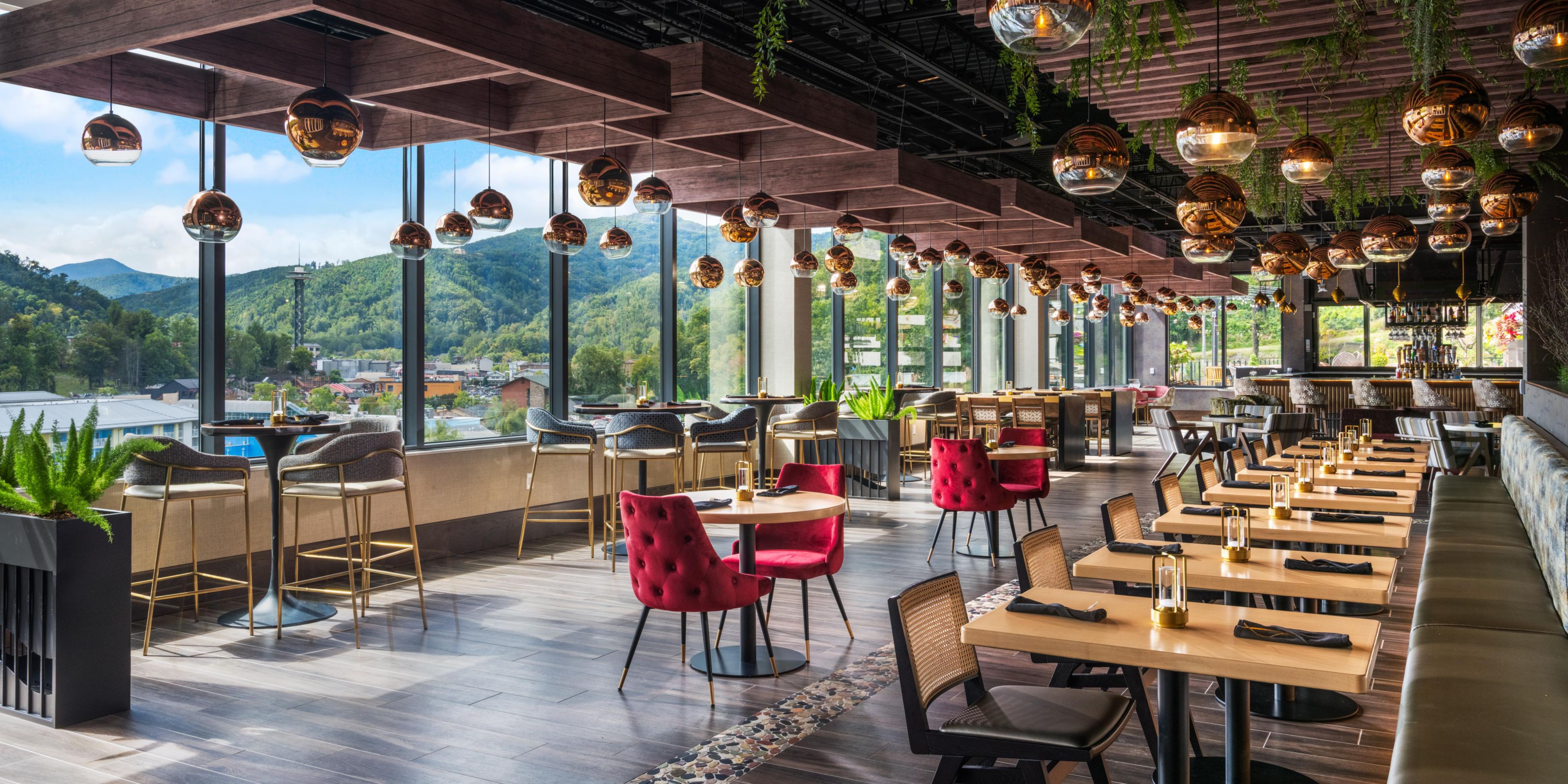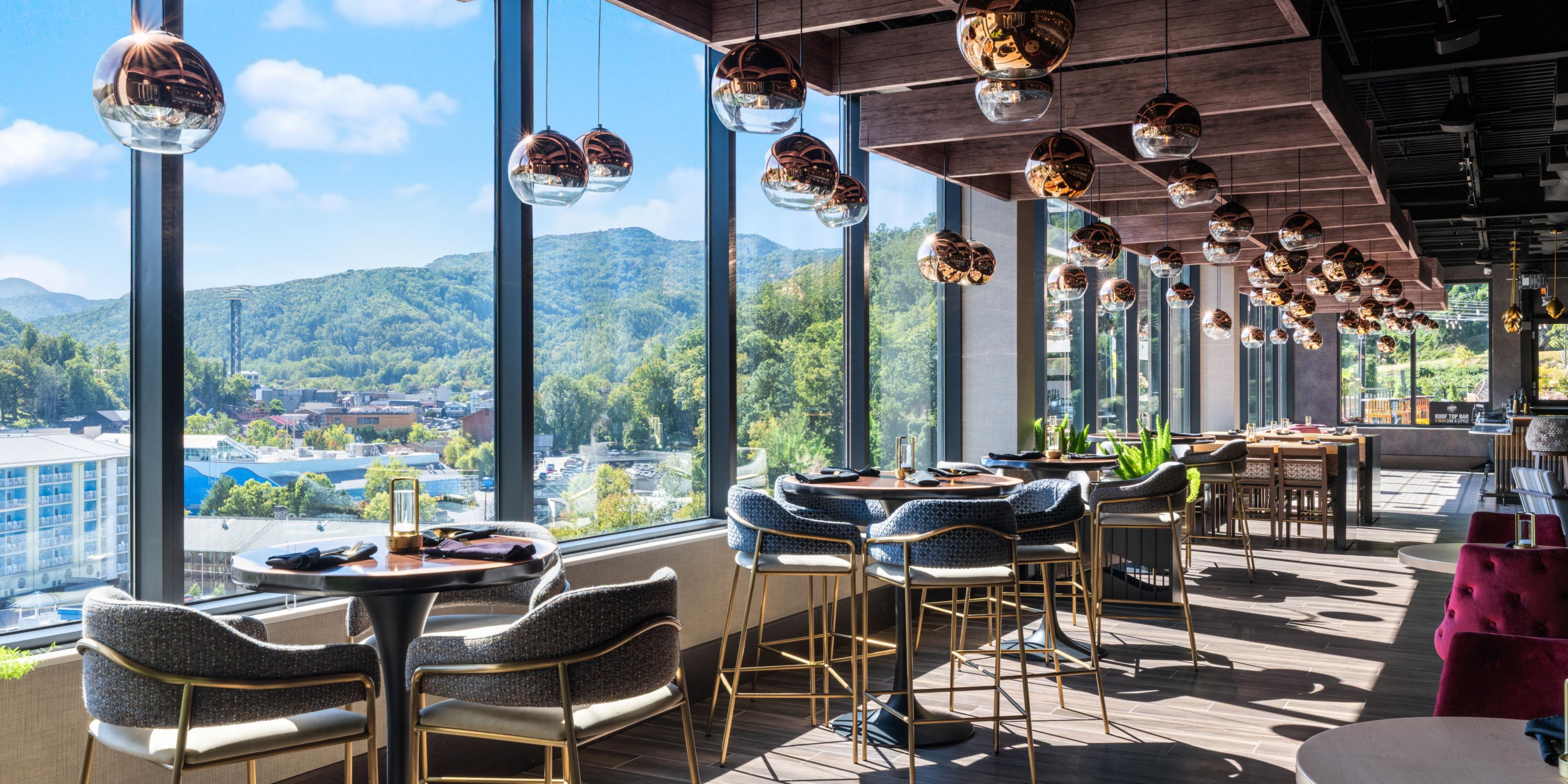 Altitude Restaurant and Rooftop Bar showcases expansive views of the Smoky Mountains. Enjoy a menu inspired by local flavors alongside handcrafted cocktails in a space that transitions from elegant indoor dining to open-air terraces; ideal for breakfast at dawn, dinner at dusk, or memorable social gatherings