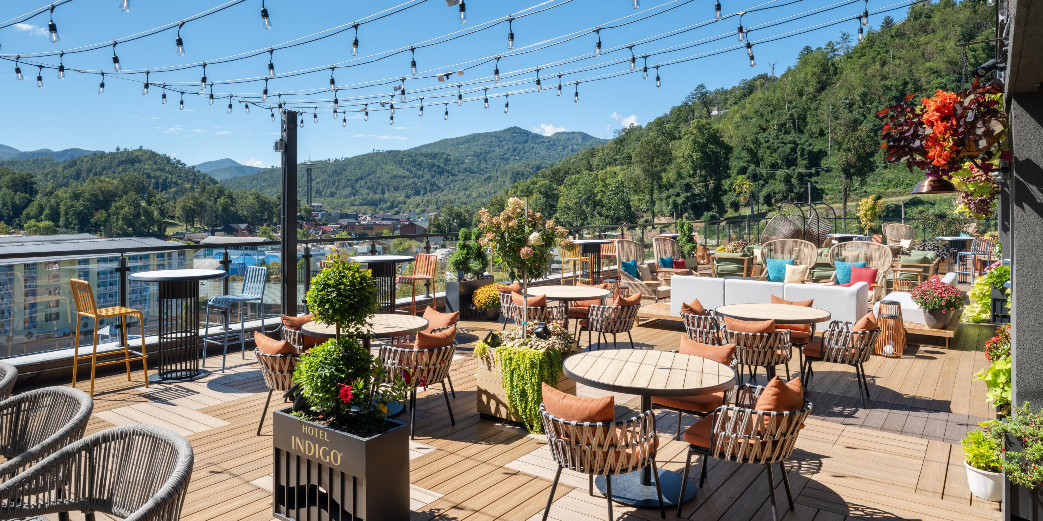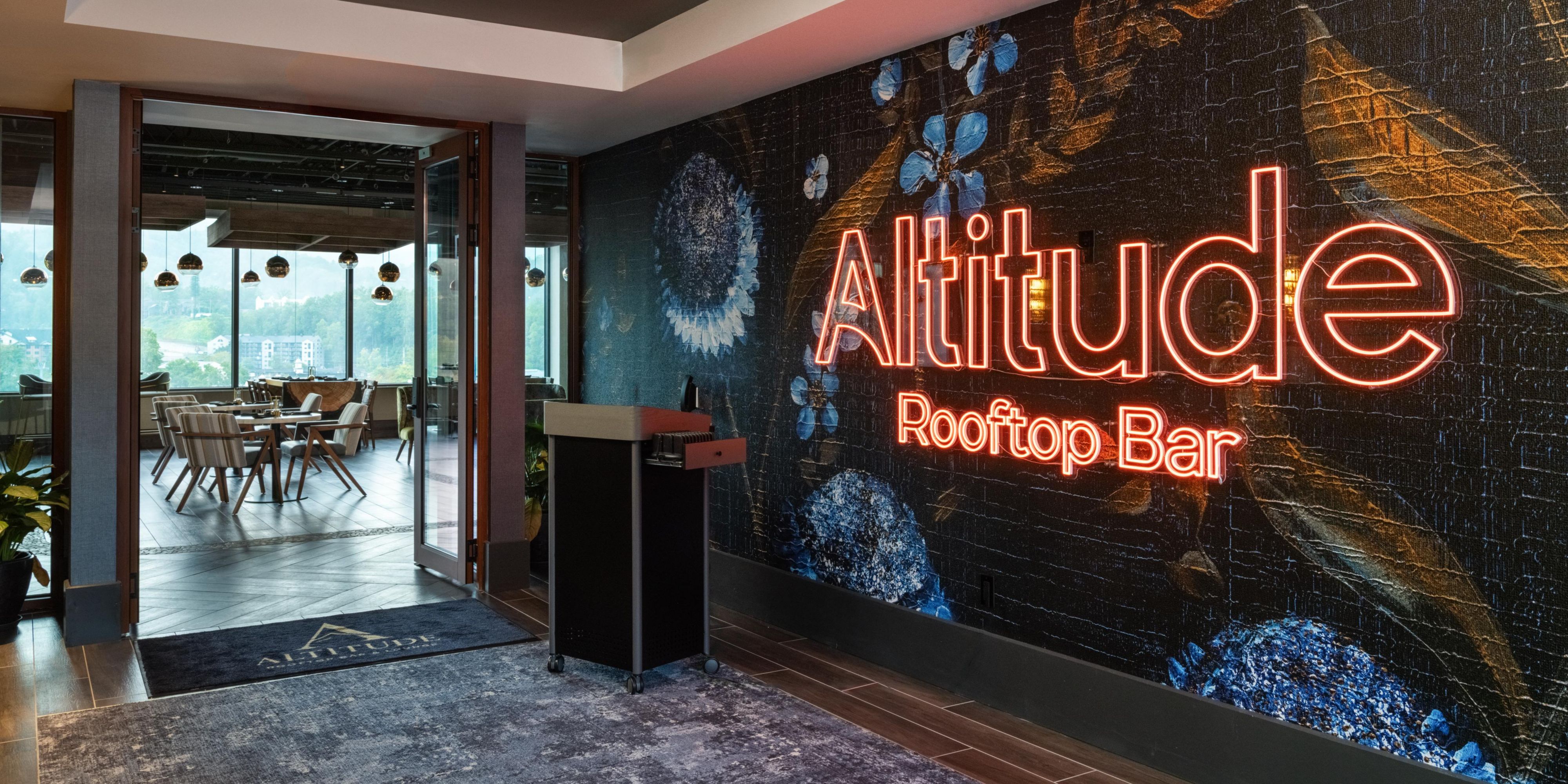 Perched atop the highest outdoor hotel rooftop terrace in downtown Gatlinburg, Altitude Restaurant and Rooftop Bar offers panoramic Smoky Mountain views. Savor locally inspired cuisine and handcrafted cocktails in a setting that flows from stylish indoor dining to open air terraces, perfect for sunrise breakfasts, sunset dinners, and unforgettable gatherings.
