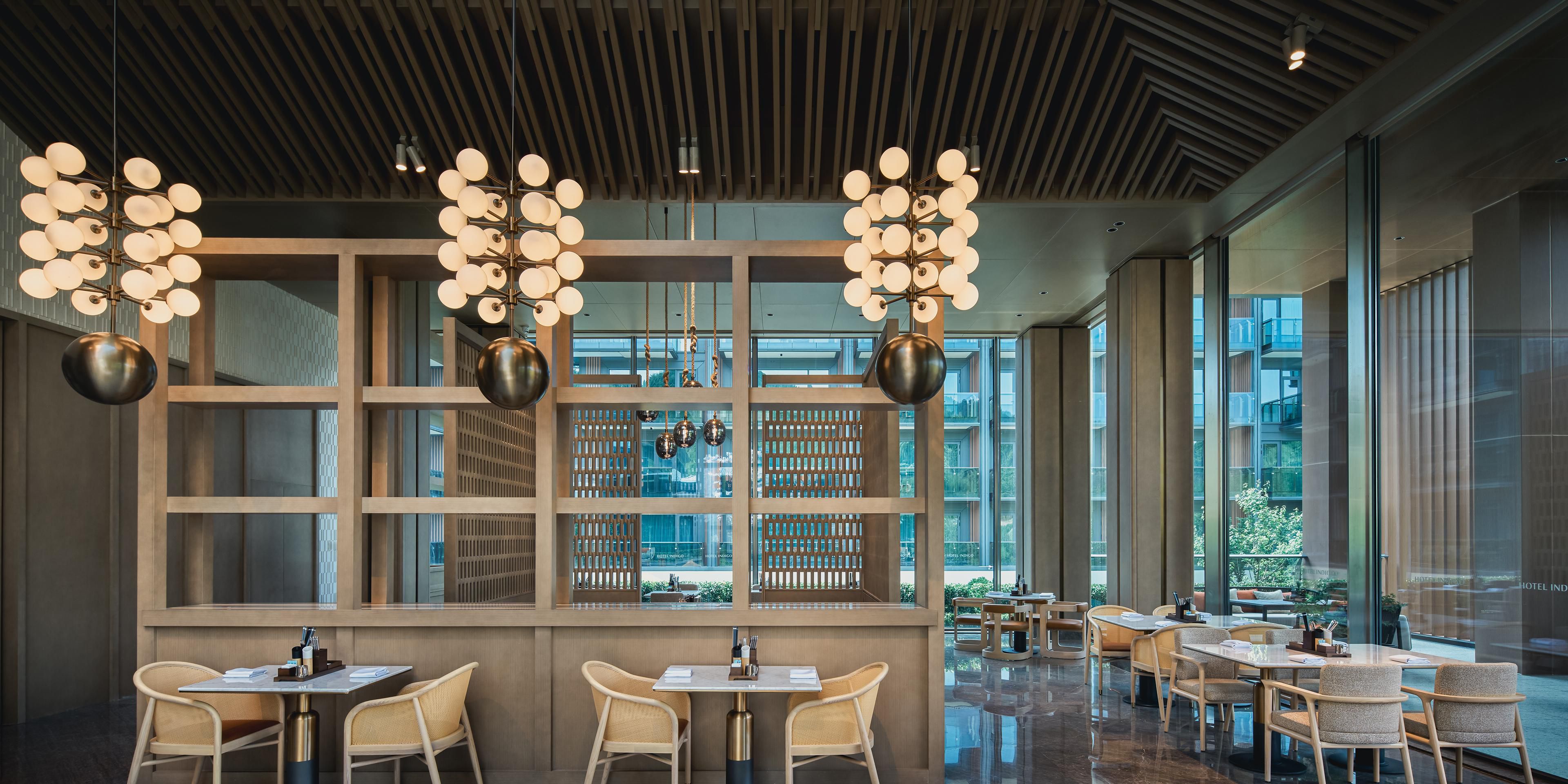 四季古树环绕下的森邻邻里餐厅,共有148个餐位,提供全天候餐饮服务。