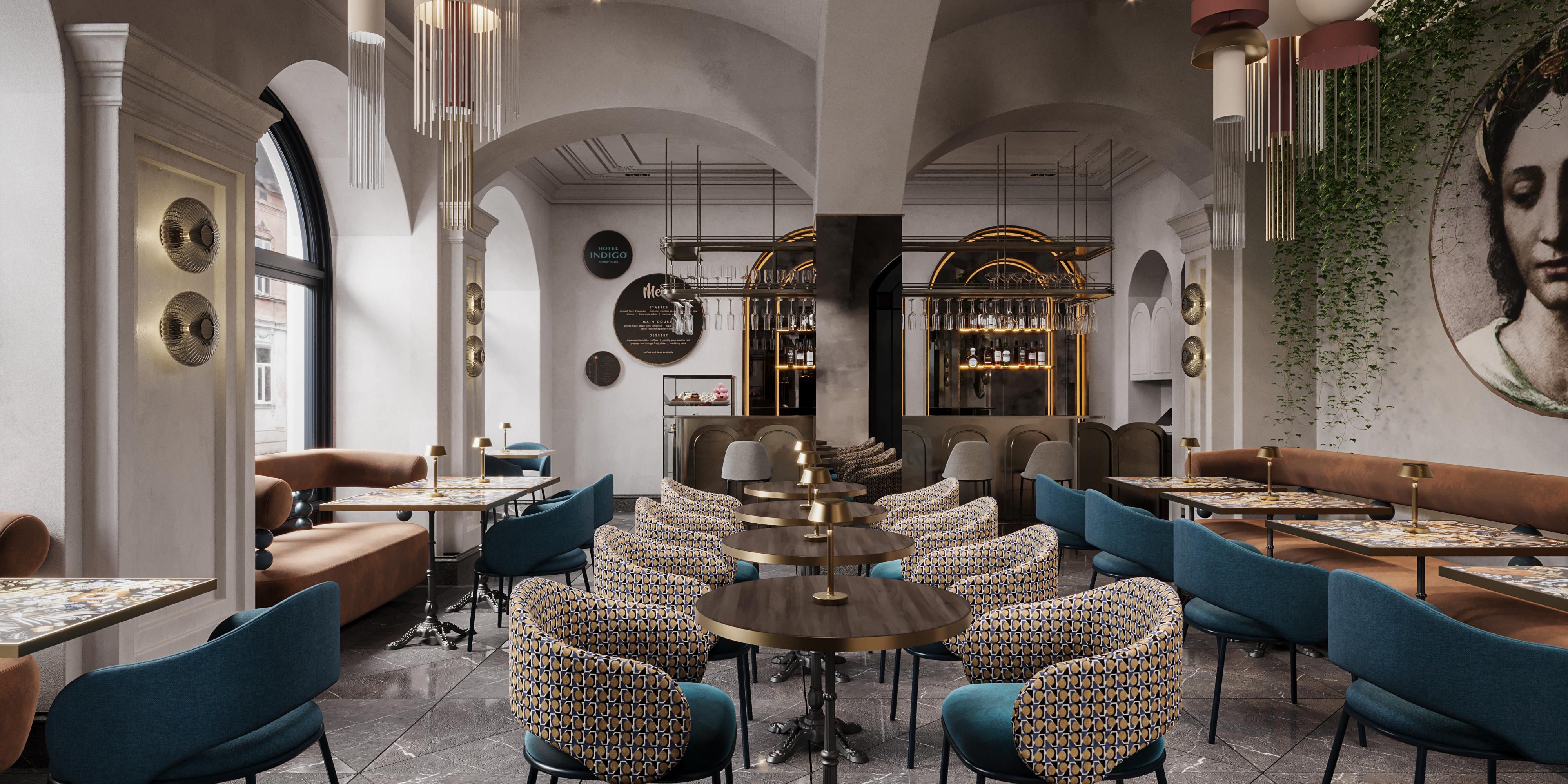 The bar’s decor is a playful blend of history and modernity. The remaining smudges of paint referring to the old walls, the frequent occurrence of old gold, woodwork and mirrors modeled on elements that can be found in the Wawel castle allow you to feel the rich past of the place. Designer, even funny furniture adds some relaxation to dignified spaces. Both hotel guests and casual passersby who visit us for their morning coffee or a pastry will feel comfortable in these interiors.
