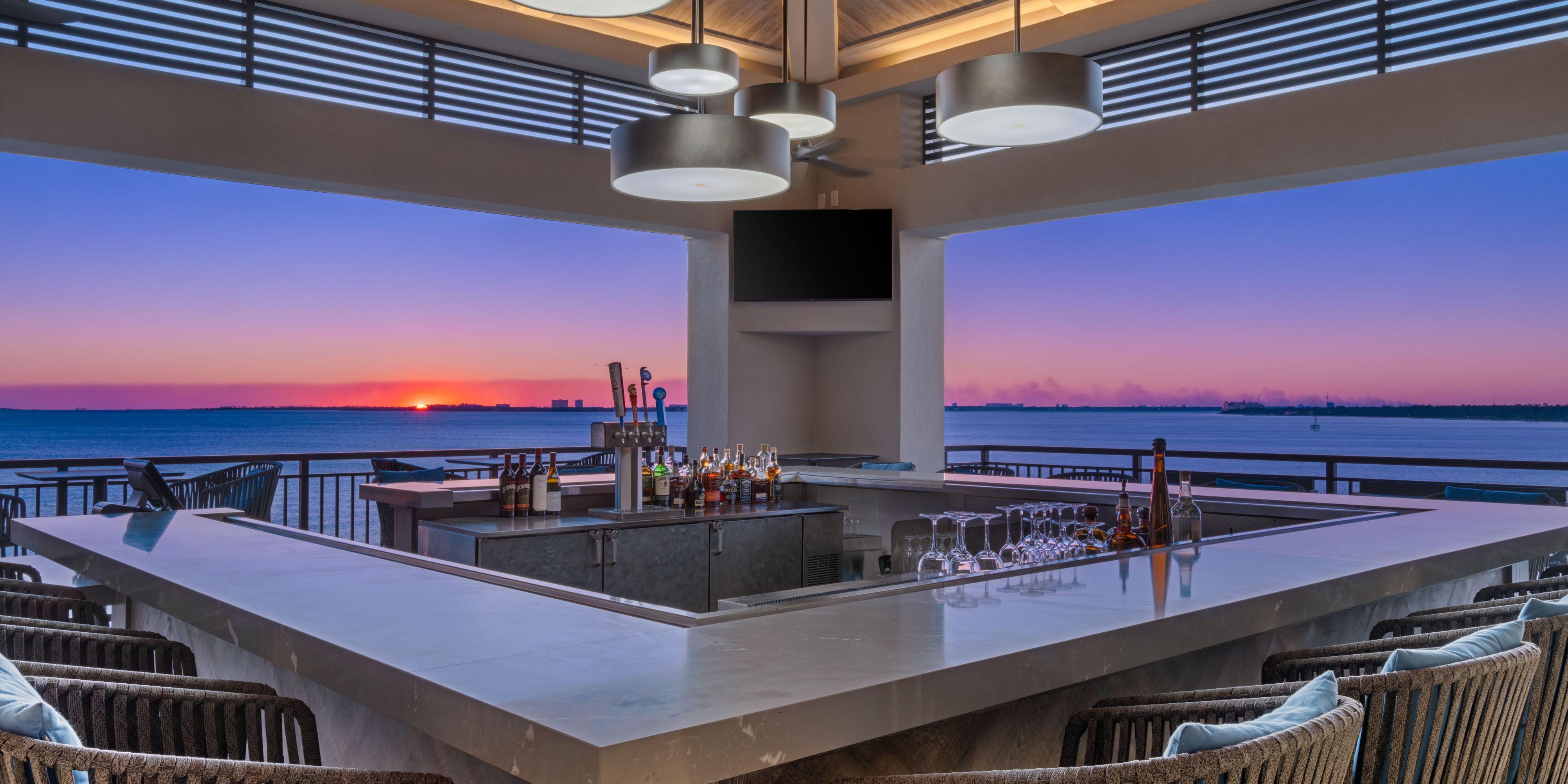 Savor coastal flavors at Tarpon’s, where Southern cuisine meets creative cocktails. Elevate your dining experience at Steam on 5, our open-air rooftop bar, featuring fresh local seafood, light bites, and breathtaking bay views. Open to the public.