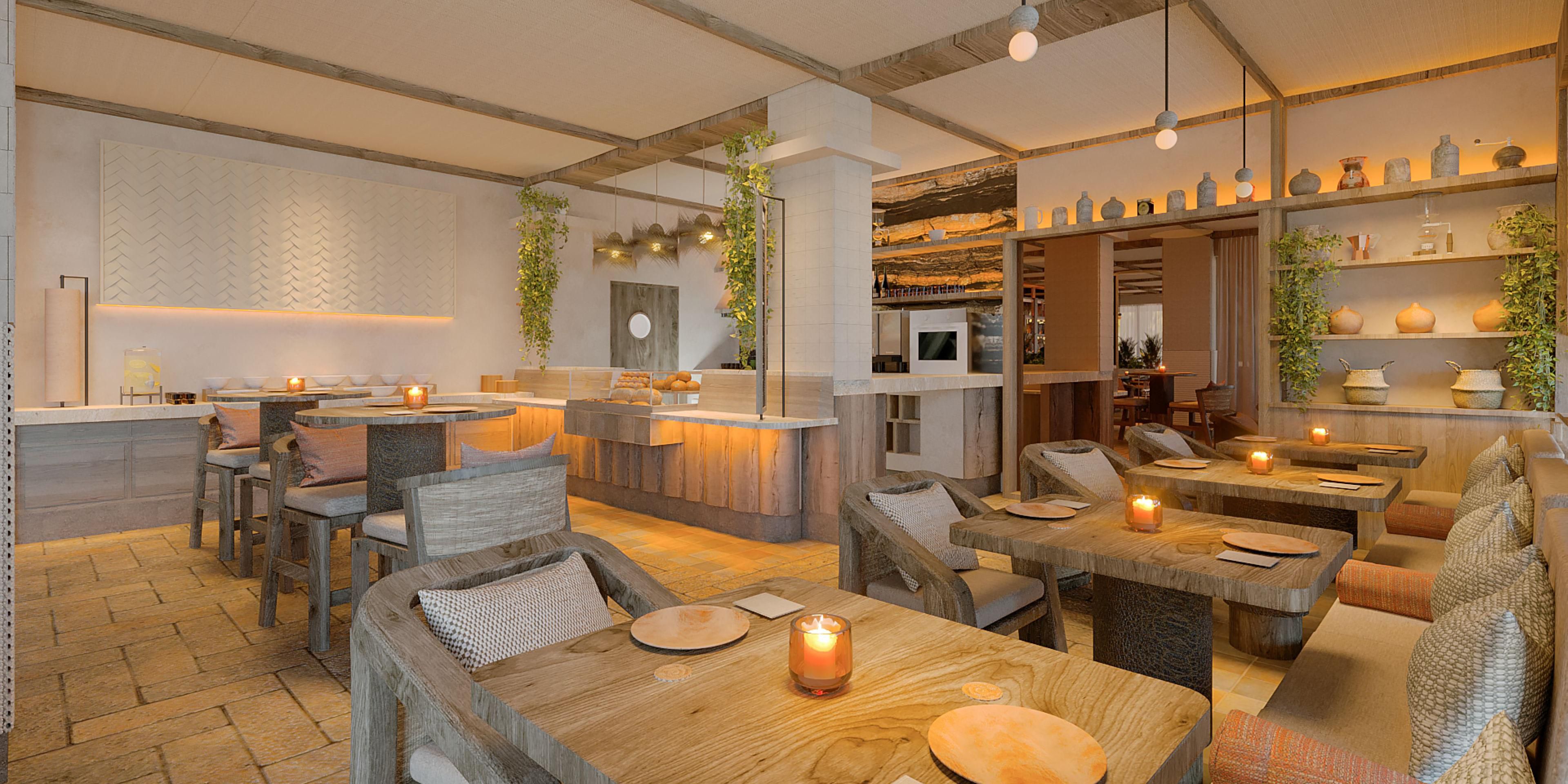 Enjoy a boho-chic vibe at our lobby restaurant, serving fresh coffee, full breakfast, cocktails, and grab-and-go bites—perfect for jumpstarting your day or winding down after exploring Playa del Carmen.