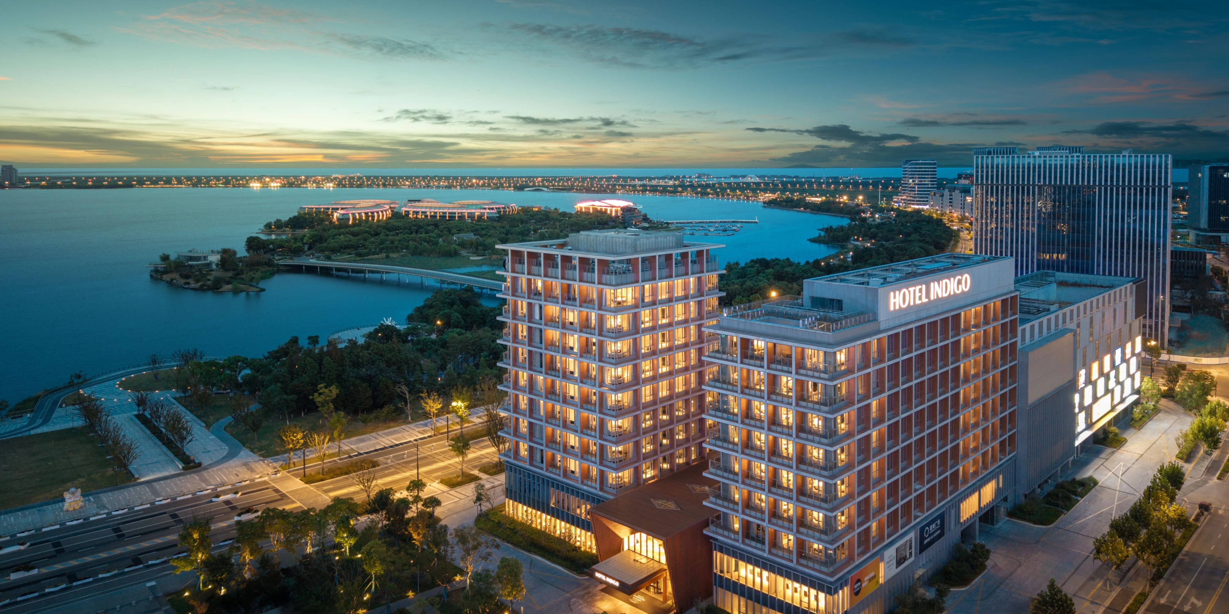 上海滴水湖英迪格酒店坐落于浦东临港新城滴水湖湖畔,酒店建筑面积为19039㎡,地理位置优越,其正面对美丽的滴水湖畔,一年四季皆有不同的面貌。酒店配备176间客房,配置潮邻间餐厅、汐邻间酒吧、健身房和游泳池等。 酒店设计以滴水湖光怪陆离的水下世界为灵感,以湖蓝和藻绿为主色调,打造别样居停体验。