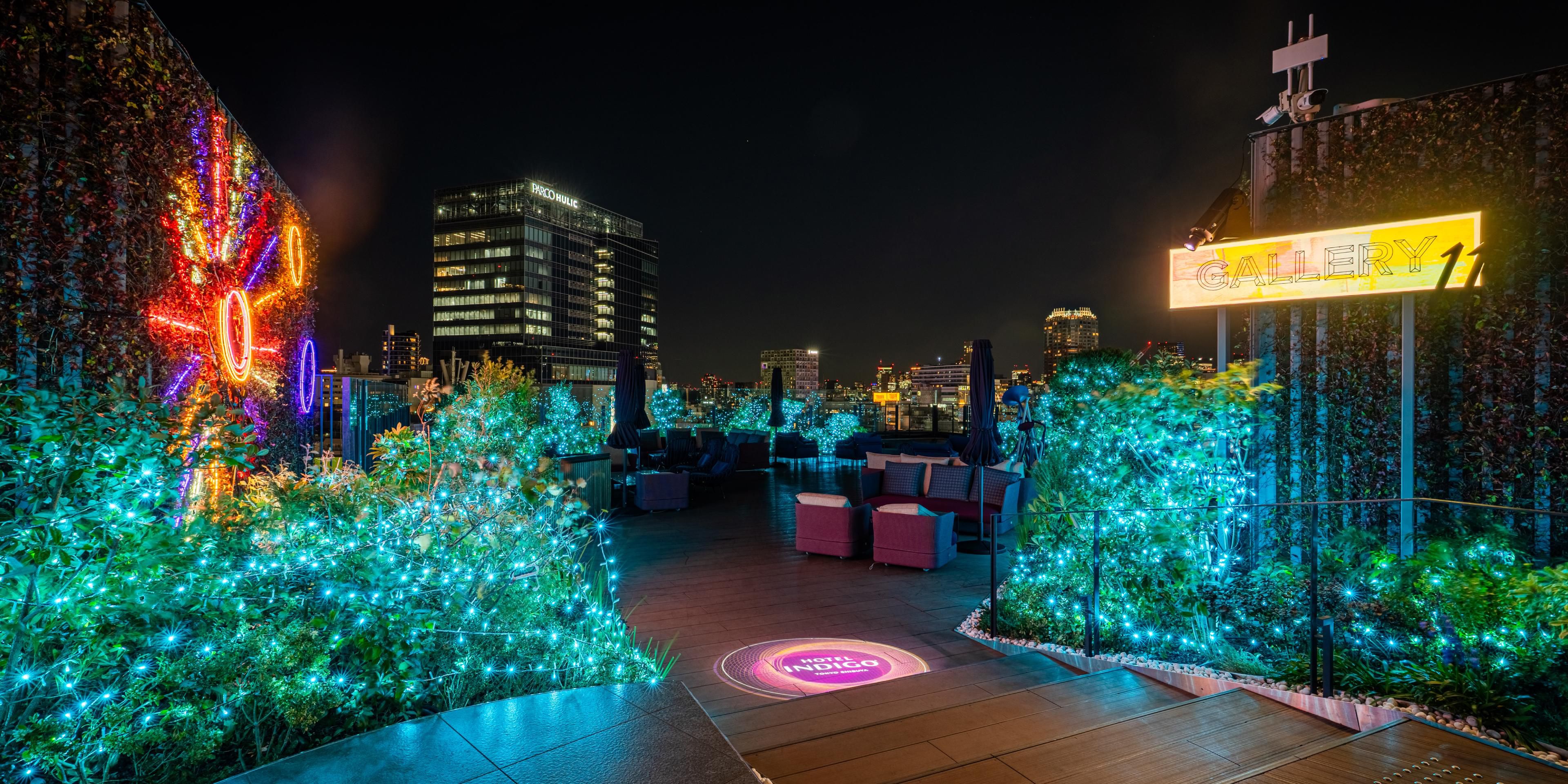 露台将视线引向不断变化的涩谷城市景观与蔚蓝天空之间的对比,营造出一种自由而又与众不同的氛围。您可以眺望涩谷随时间而变的广阔面貌,并享受这里独有的美食体验。
