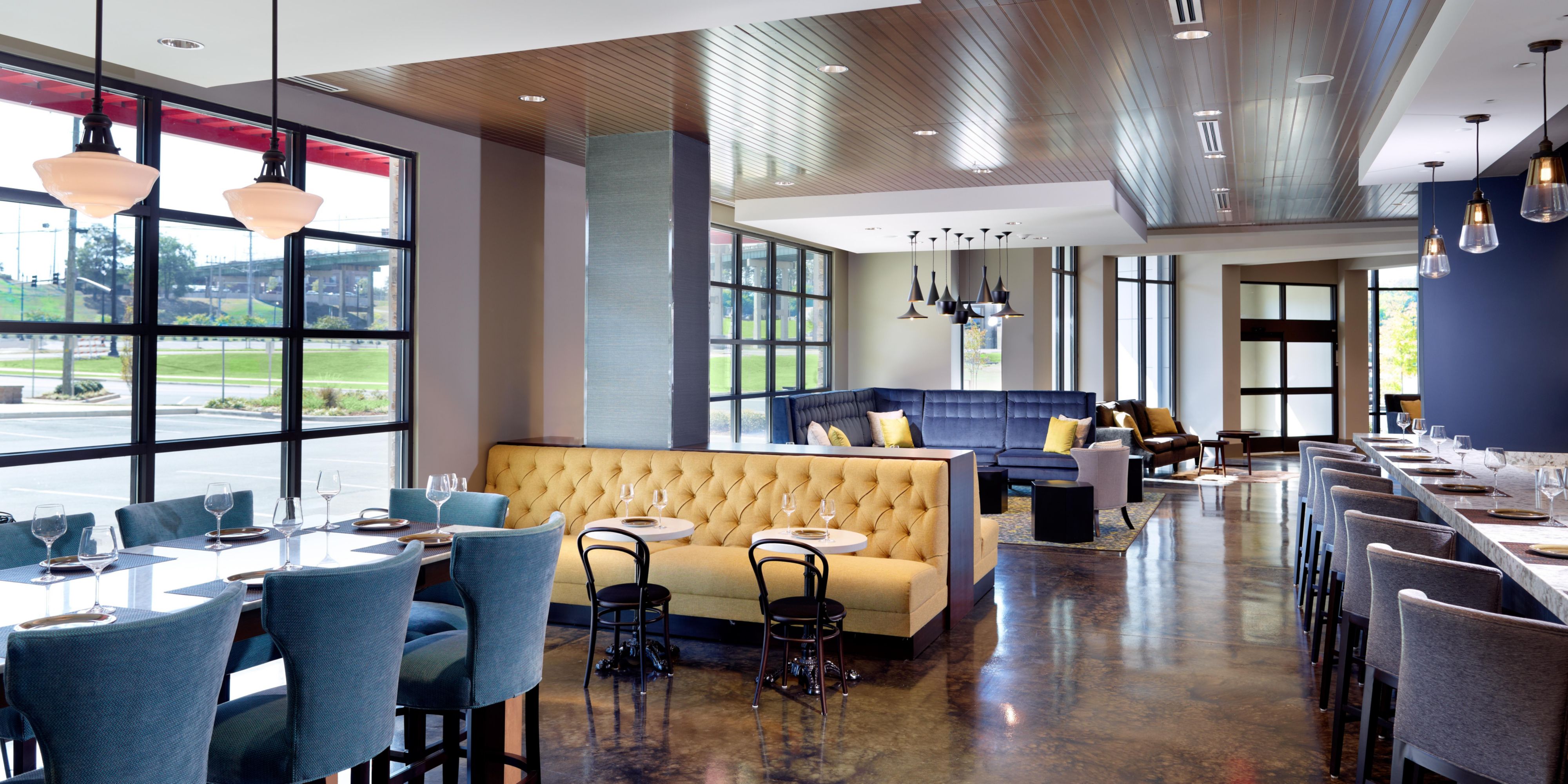Our full service restaurant on the first floor serves breakfast and dinner. Stop by Pure Provisions Market to pick up tasty grab and go items. Upstairs our restaurant/bar has sweeping views of the Black Warrior River and offers indoor/outdoor seating.