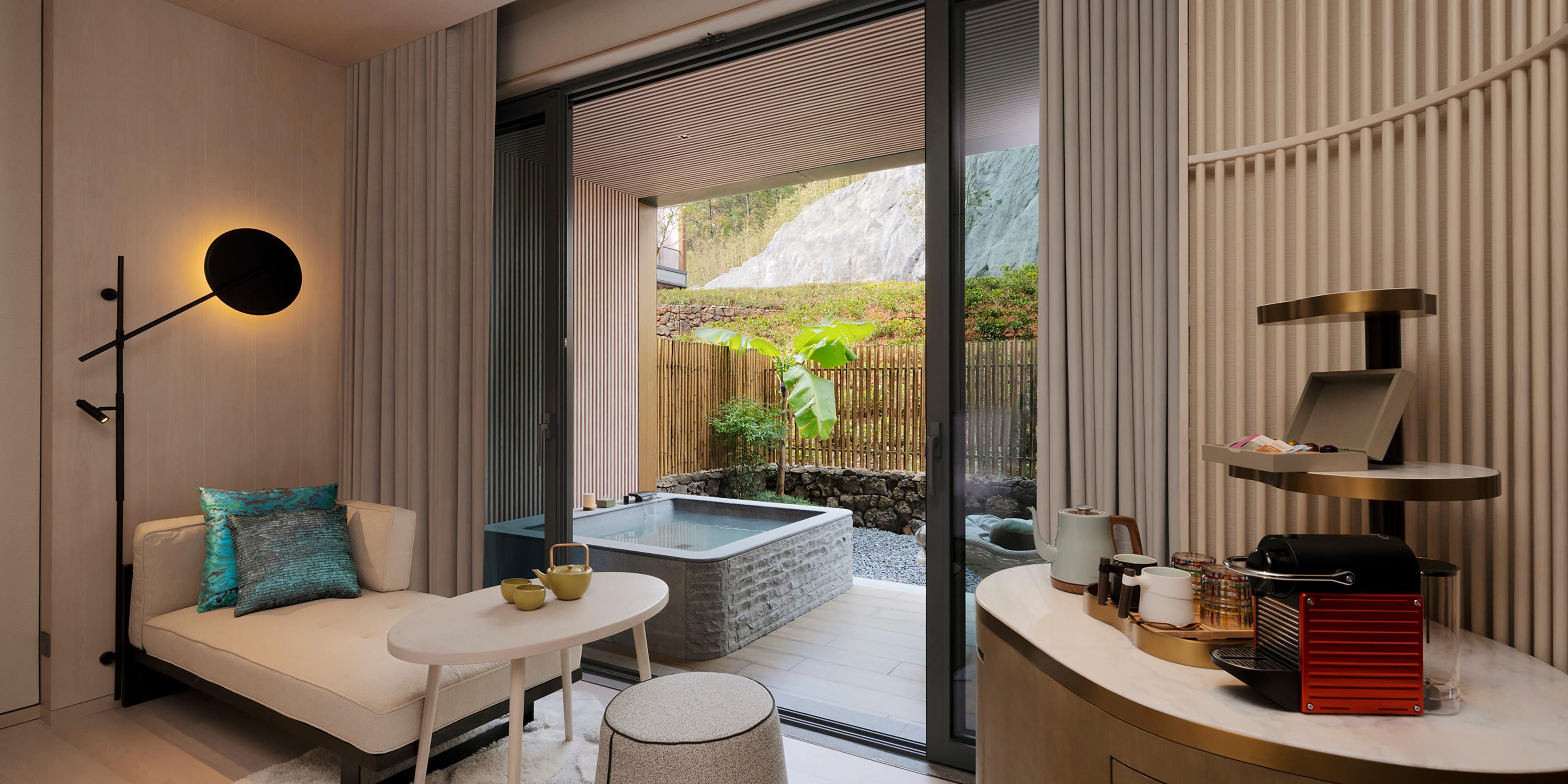 A Hidden Treasure In The Blissful City Anji “The Hometown of Bamboo and Tea,” Anji – meaning comfortable and beautiful – takes its name from the ancient Chinese classic, The Book of Songs. In this blissful place, bamboo forests and white tea fields stretch forever, thousand-year-old temples carry Zen sounds and Changshuo culture appears everlasting. The renowned film Crouching Tiger, Hidden Dragon was shot here, and the neighborhood culture surrounding Hotel Indigo Anji basks in its luminance. Hotel Indigo Anji is located in the famed Lingfeng National Scenic Area, a place rich in greenery and the aroma of tea. The hotel draws on the fascinating stories of the Anji Neighborhood, its design and artwork embody the spirit of bamboo reeds and tea fields, as well as the thousand-year-old Lingfeng Temple and artist Wu Changshuo's colorful imagery. The sensation is of "one green, one white, one Zen and one master," welcoming you to encounter a tranquil wonderland rich in nature's gifts and historical mist.