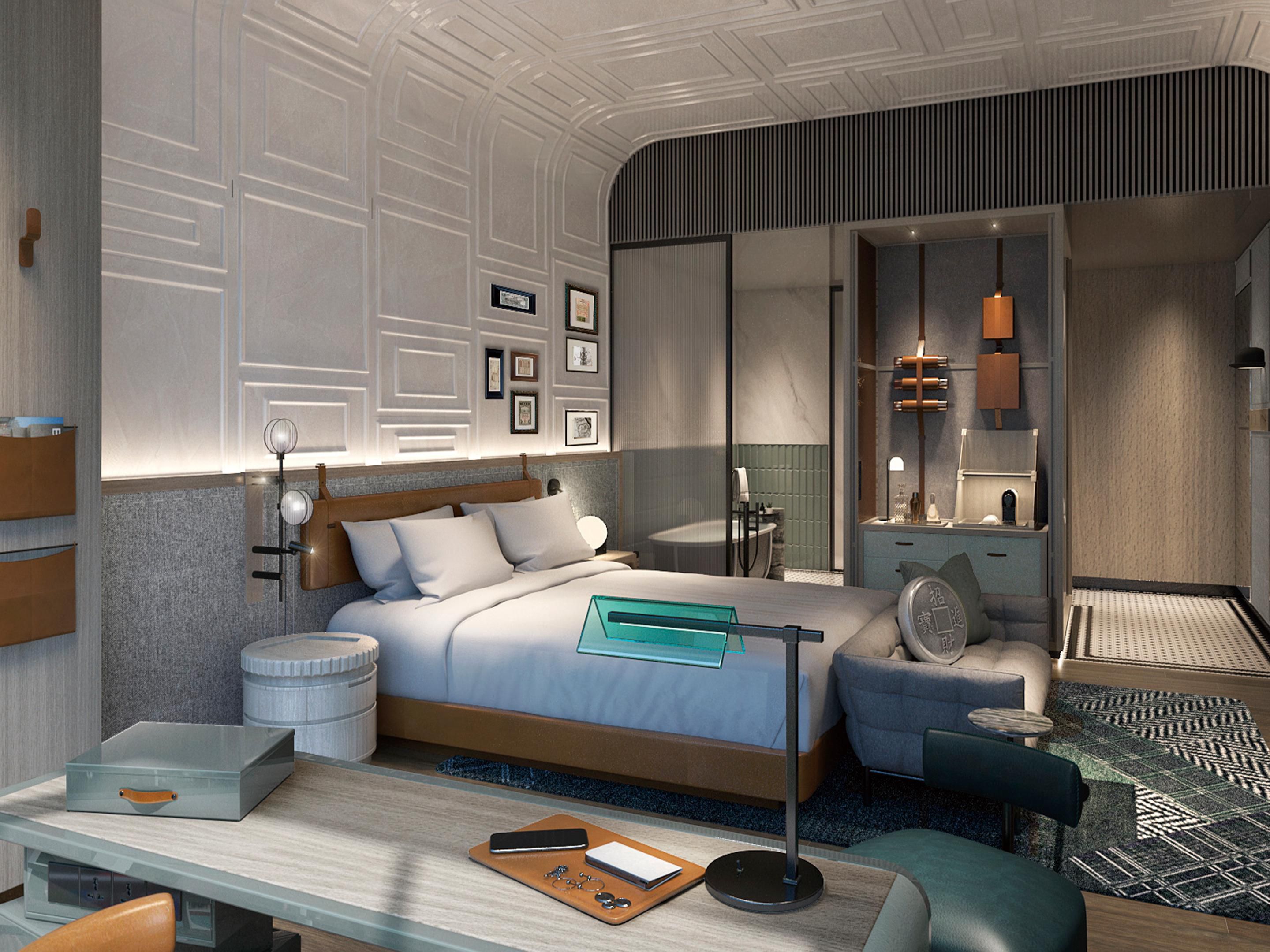 Hotel Indigo Ningbo takes the century-old legend of Yong merchants as its narrative thread, drawing inspiration from the historic character of Ningbo’s old money houses and Jiangxia Street. Symbols of the Ningbo Merchant Group such as scales, abacuses, Chinese silver dollars, accounting rooms and old shop signs are reinterpreted with a contemporary touch. These elements are woven into every corner of the hotel, from guest rooms to restaurants, from the bar to meeting spaces.
