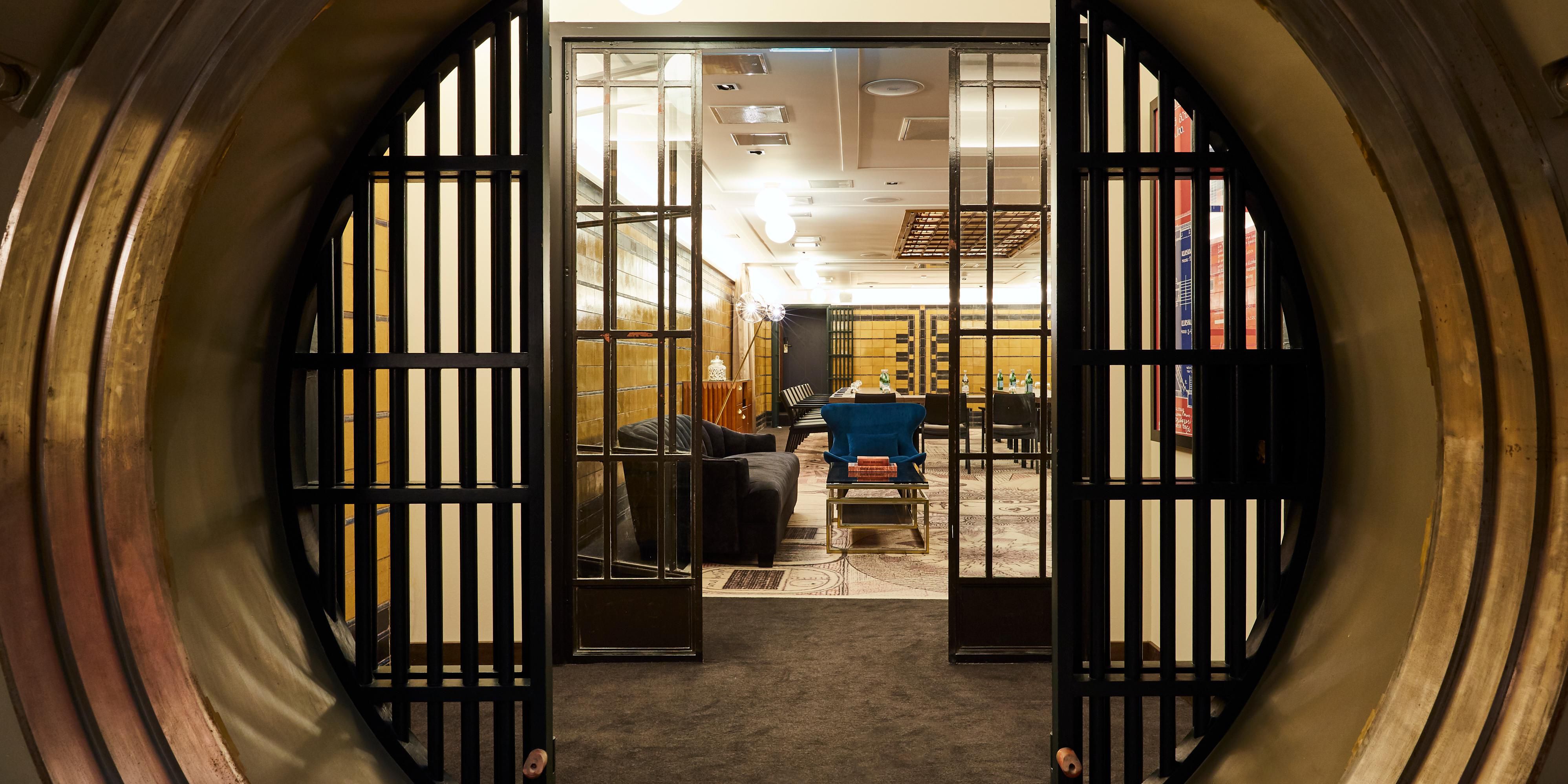 Enter a quiet respite in The Hague’s city centre by way of Hotel Indigo's lower level. Main meeting room The Vault is the former safe of the bank. The Vault features rich velvet sofa's, dark furniture and original details. Adjacent to The Goldbar.