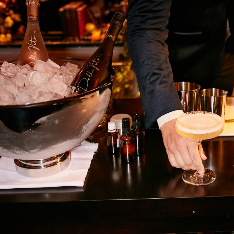 Poppy Delevingne celebrated the third anniversary of her prosecco, Della Vite, in the Apsley Suite's remarkable dining space, enjoying a menu overseen by Chef Patron Theo Randall. With whimsical touches of autumnal nature and thoughtful gestures including a bespoke DeVine cocktail, this intimate gathering blended Poppy's playful aesthetic with the distinctive Mayfair elegance of InterContinental London Park Lane.