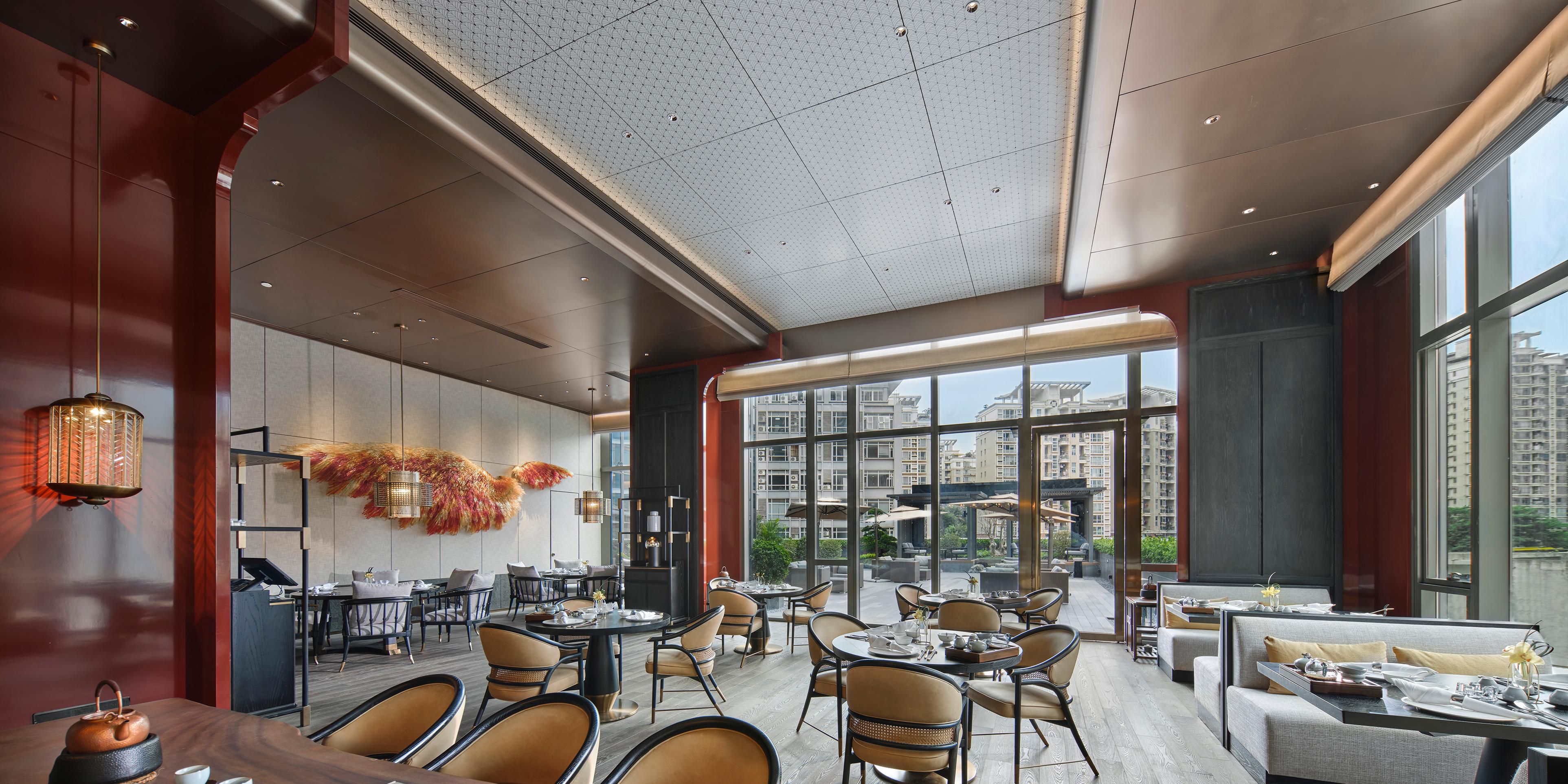 东莞洲际酒店坐落于东莞四大商圈之间,作为新城力作亦是大型商业综合体民盈·国贸中心建筑群的重要组成部分之一,酒店外观采用水晶幕墙雕砌,炫彩夺目,室内设计汲取岭南四大园林之一——可园精髓,呈现古雅精巧的岭南文化与现代精致生活交织共鸣的气韵。酒店共设有285间客房及套房,房间面积从45-220平方米不等,可观绵延山景或城市律动。酒店拥有5,000平方米超大、奢华的会议空间,其中包括超1,000平方米户外空间,并以多样化的场地和高科技视听设备等特色,倾力满足不同规模会议之需。2,200平方米的无柱宴会厅配有110平方米超大LED屏幕,能够容纳2,000人出席,还可灵活分隔为3个宴会厅使用。透过超大落地窗举目眺望,民盈•国贸中心尽收眼底。此外,8间多功能厅,为各类会议提供更多选择。酒店2间氤氲着岭南风情的餐厅和1间大堂酒廊,供应中外美食佳酿,空间设计精巧而别具匠心,室内和户外用餐区淋漓再现“香榭小院,透影摘鲜、红砂揽园,飞鸟驻岩”的诗情画卷,为享用美食的时光再添意趣。