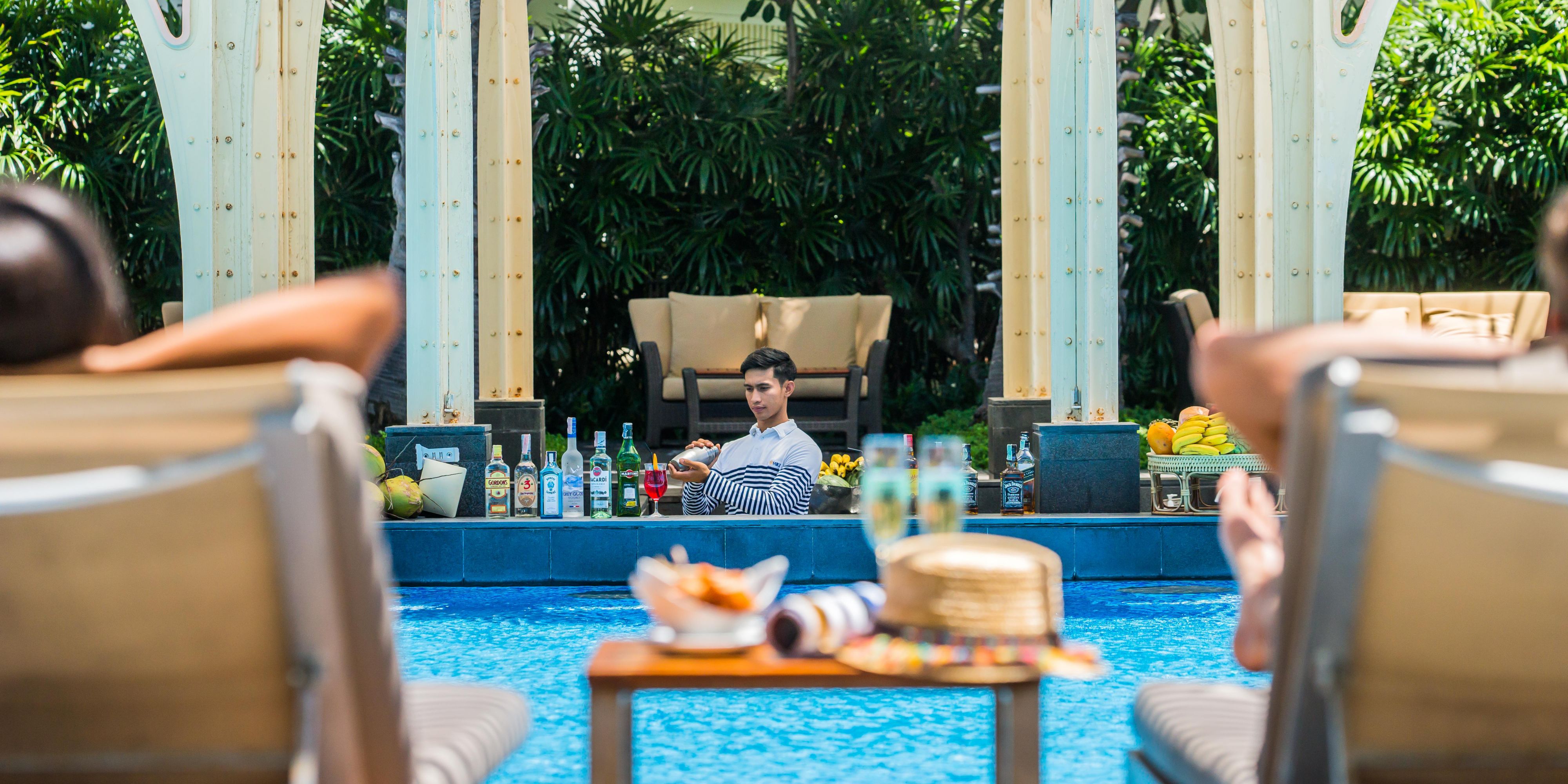 作为度假区唯一的泳池酒吧,这里供应各种冰爽饮品、解渴饮料、异国风味鸡尾酒和特色小吃,此外,您还可以探索更多趣味盎然的食品和饮料,度过完美的一天。