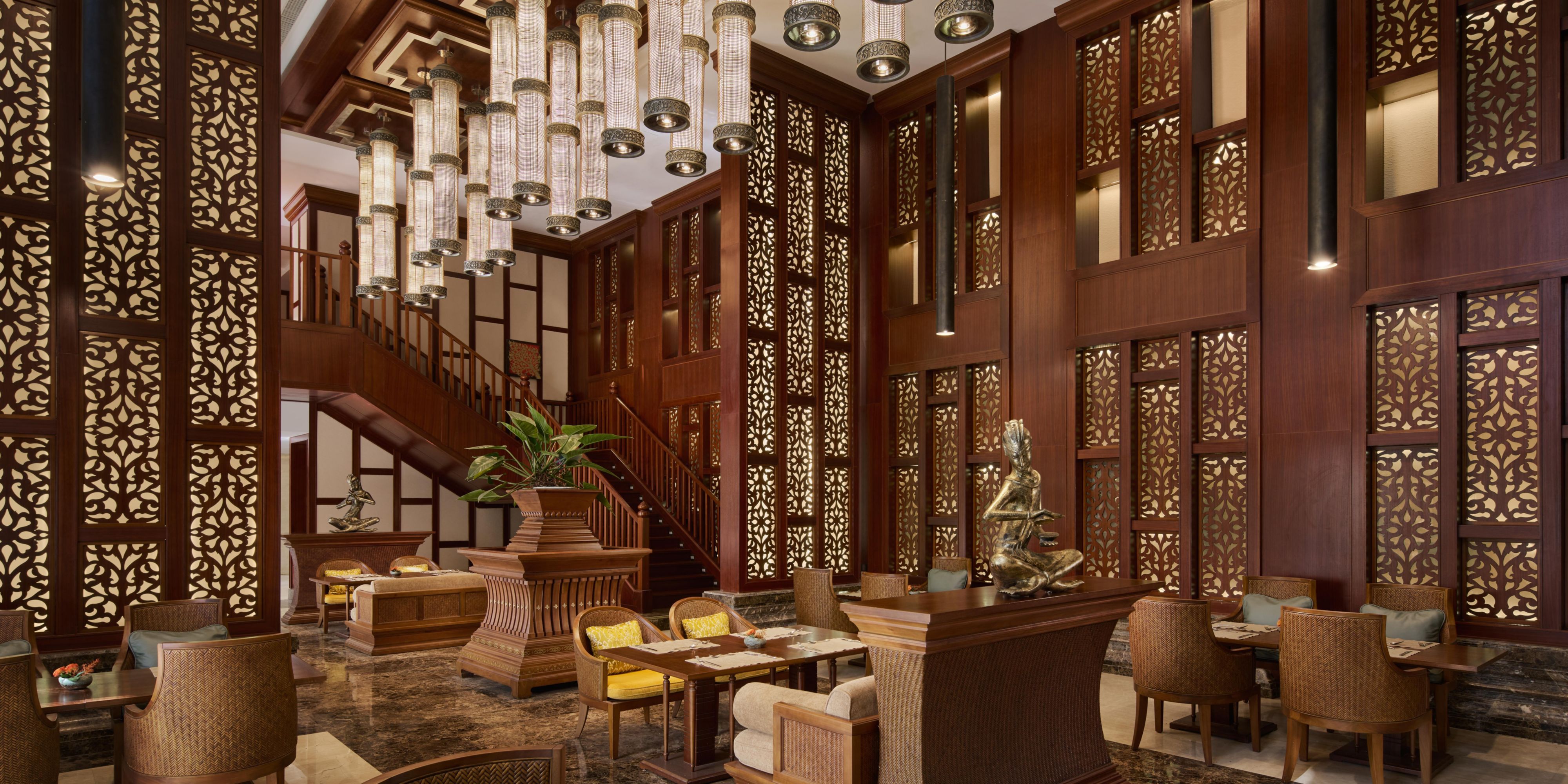 您可在这尽情享用全开放式厨房精心烹制的美味主题自助餐,还有零点菜单供您选择,侬香全日餐厅碧水环绕,完美的建筑设计将自然气息蔓延至餐厅内外,将室内外餐区用餐环境营造得雅致怡然。