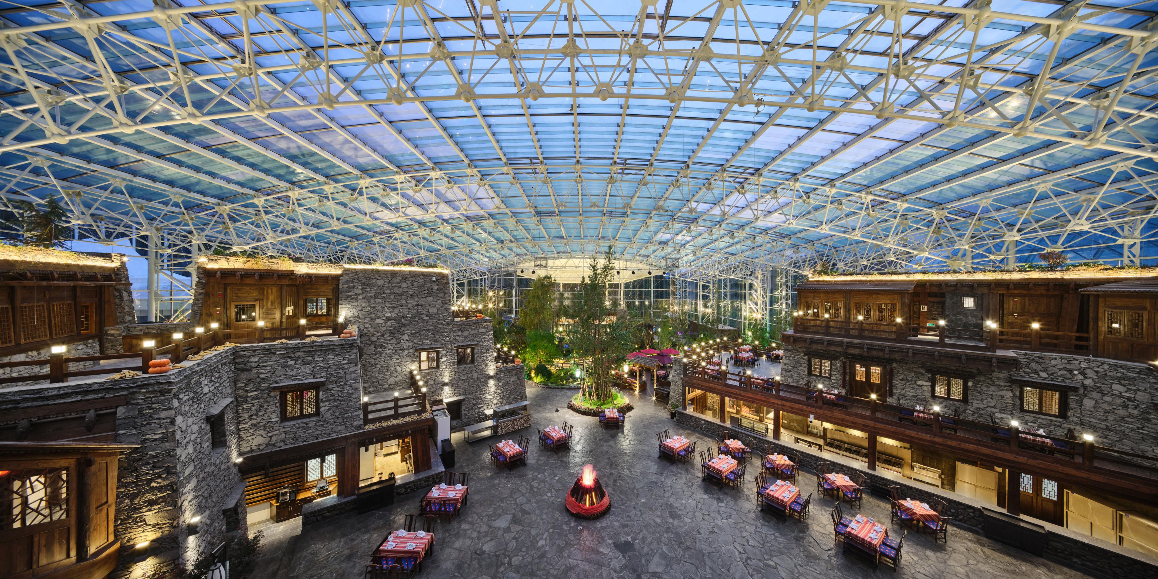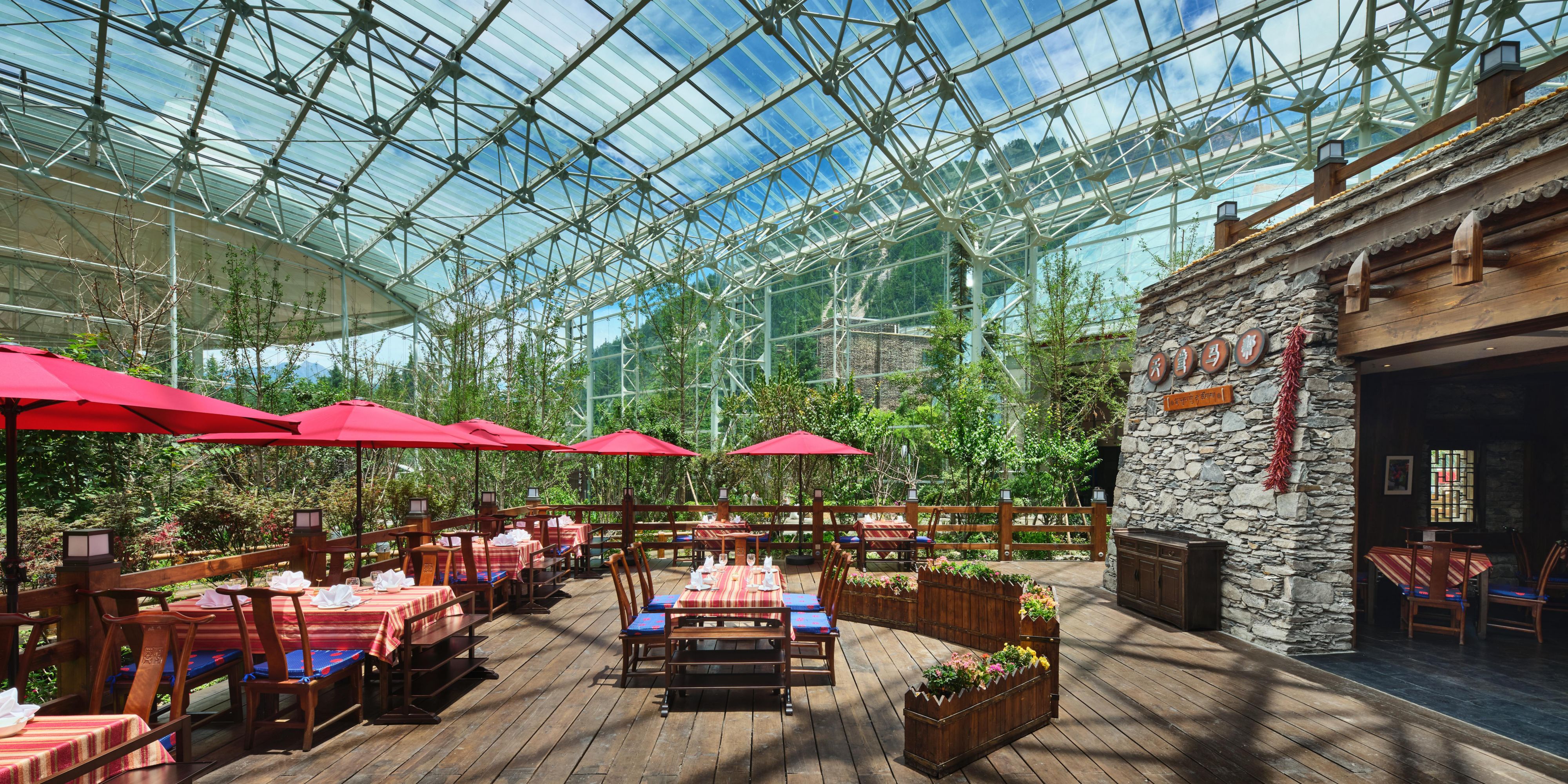 九寨沟内知名的餐厅之一,被美丽的山景所环绕,营造轻松惬意的舒适环境。是朋友闲谈或商务会谈的理想场所,于此尽享居停度假慢生活。餐厅主要提供以本地特色高原食材研发的时令美食、特色烧烤、地道四川美食及精选西式菜品,为宾客创造多元选择。