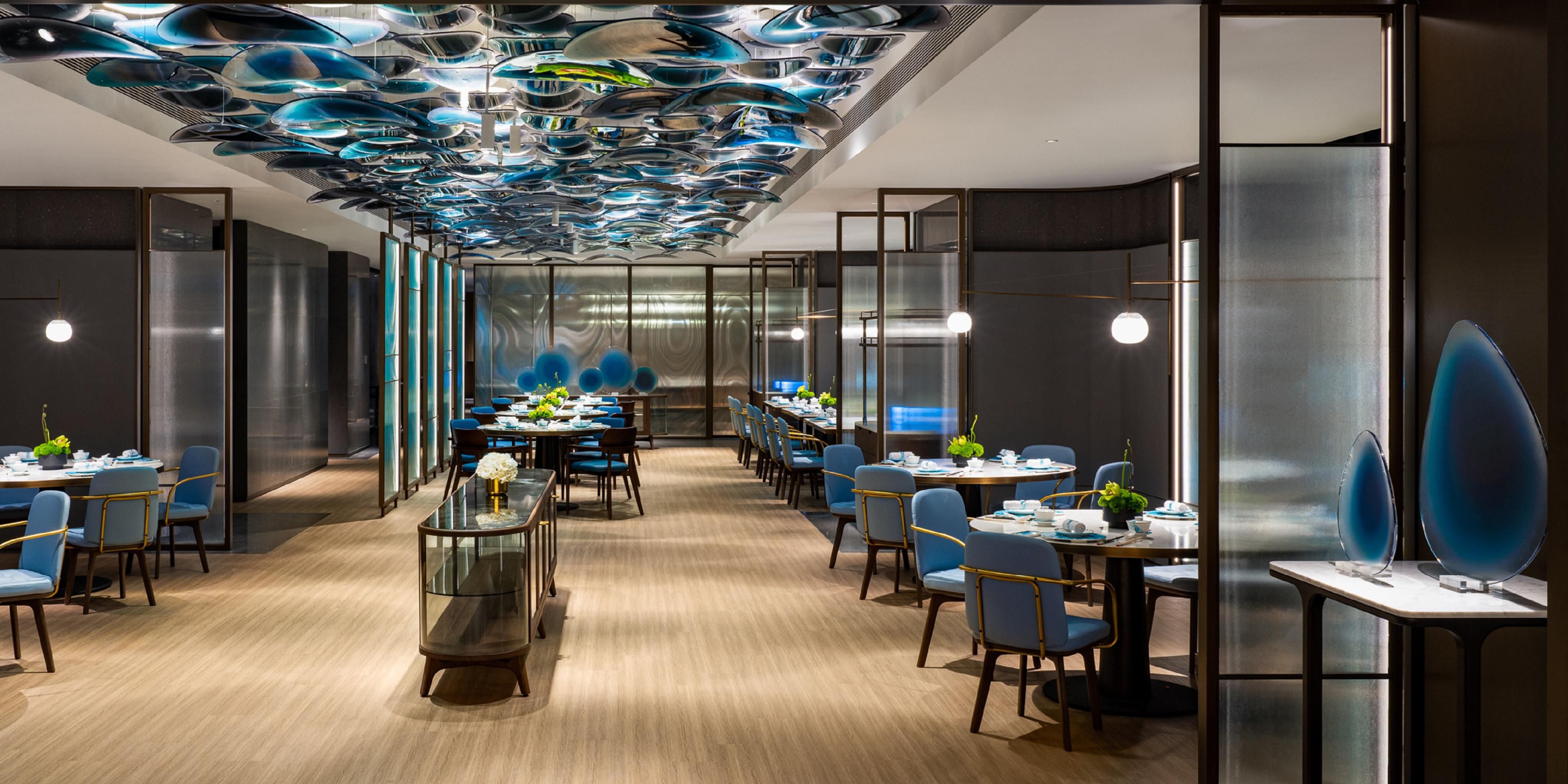 湛露中餐厅位于2楼,灵感源自拥有悠久中华文化历史的诗经小雅,歌颂宴饮宾客的欢快微醺直至破晓的兴致空间设计运用自然质理脉络,以圆润流线设计展现浅海流域的阳光穿透厨艺团队专注地道粤式菜系,融合经典上海美食餐厅内酒吧提供精选台湾金门高梁︑中式白酒︑威士忌︑啤酒等︒佳酿与美馔合鸣,品味中华料理百味珍馐的丰富层次︒精致怡人的包厢,也是商务宴请︑亲友欢聚的心仪之选︒