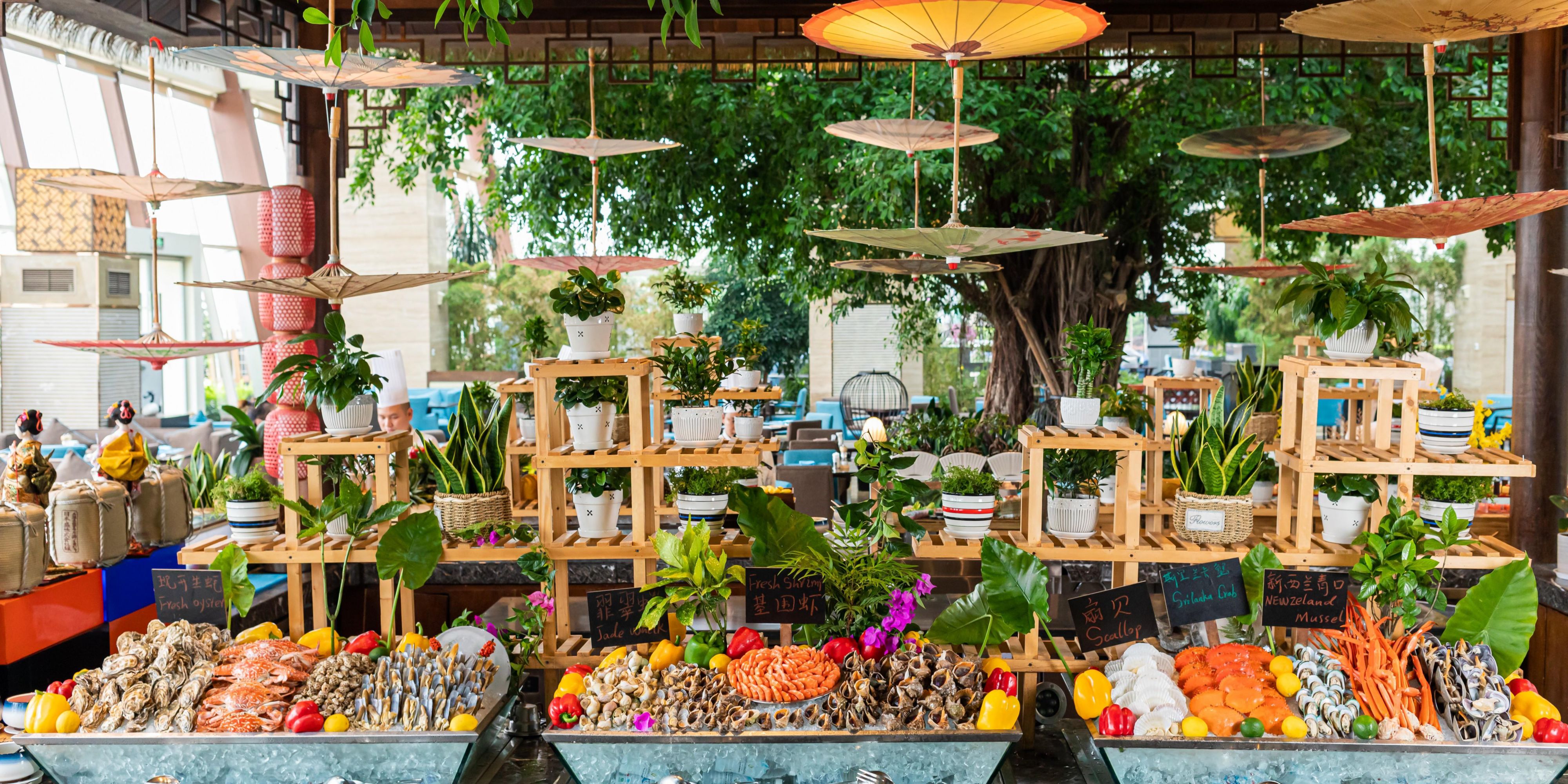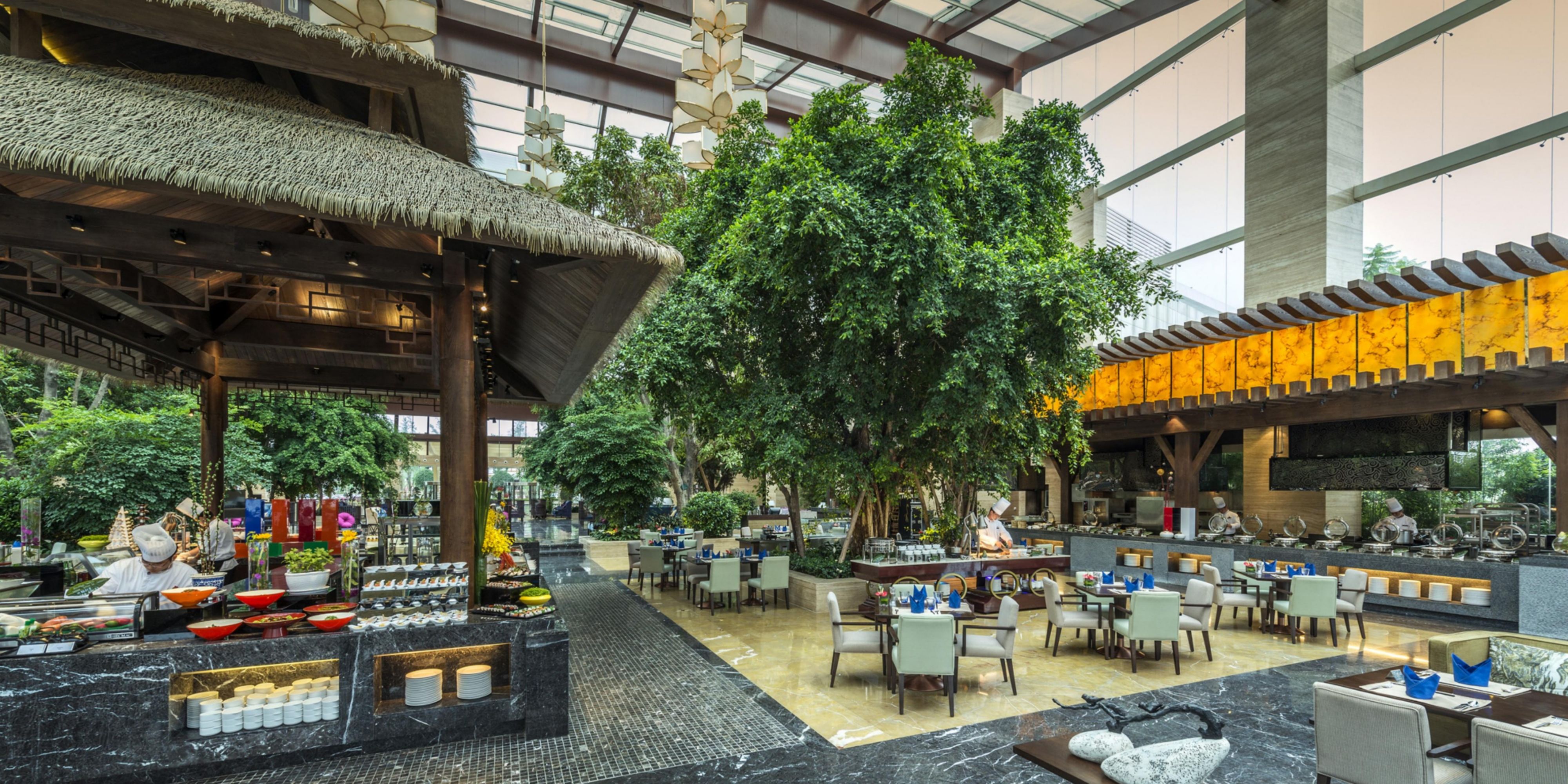 从西式、中式到亚洲风味的流行菜肴,提供自助餐及零点服务,现场制作的开放式厨房,让您惊喜体验美食制作的愉悦。