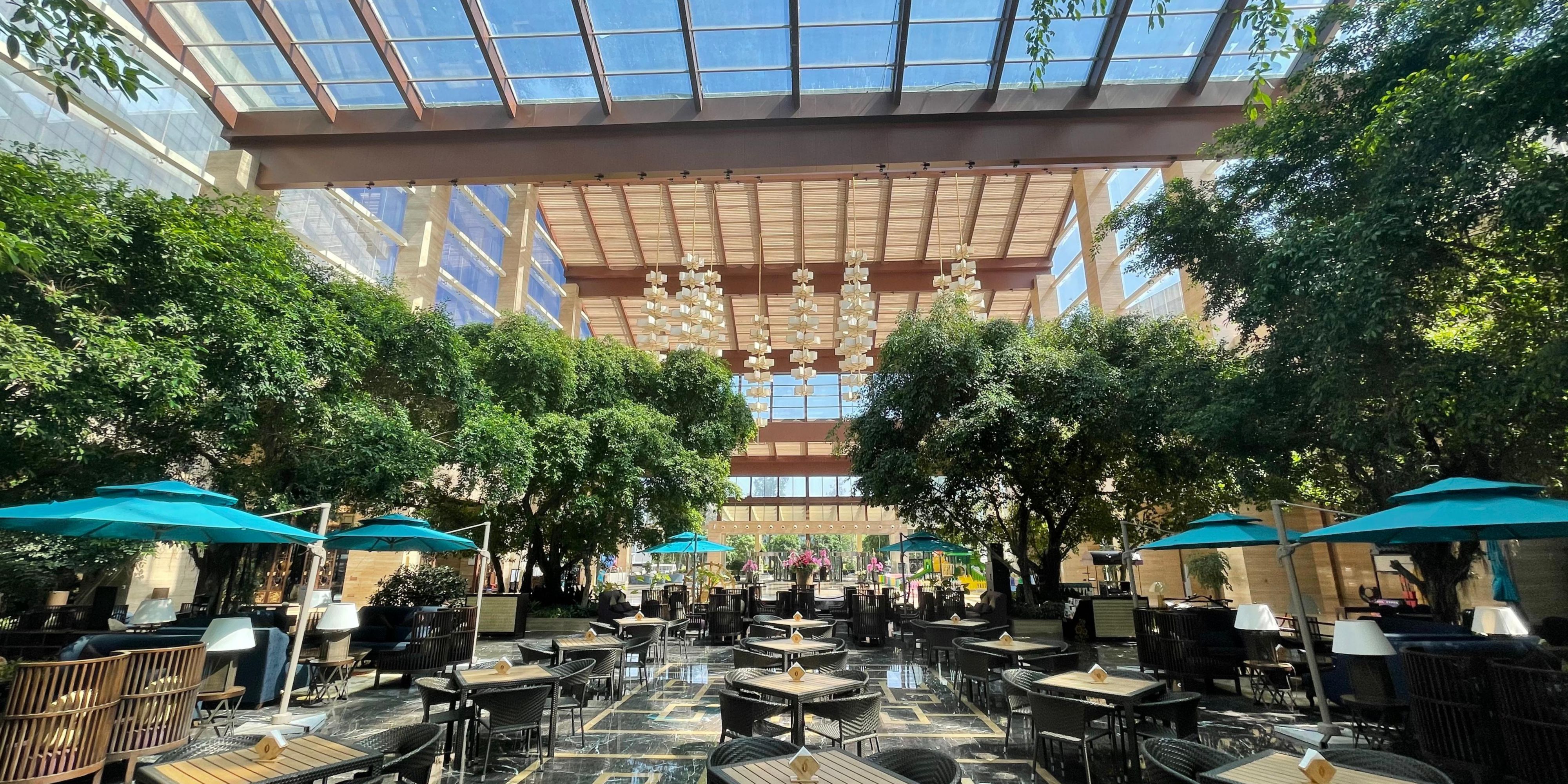 绿岛大堂吧坐落于酒店一楼穹顶大堂的中央,是一处隐于喧嚣的日光绿洲。这里阳光透过玻璃天顶倾泻而下,您可于日间慵懒时分,足不出户便沐浴在温暖自然光中,尽享宁静与写意。 我们为您精心提供香醇的现磨咖啡、精选茗茶以及经典下午茶套餐。无论是与挚交小聚,还是忙里偷闲,这里都是您享受一杯优质咖啡、一段悠然时光的理想之所。