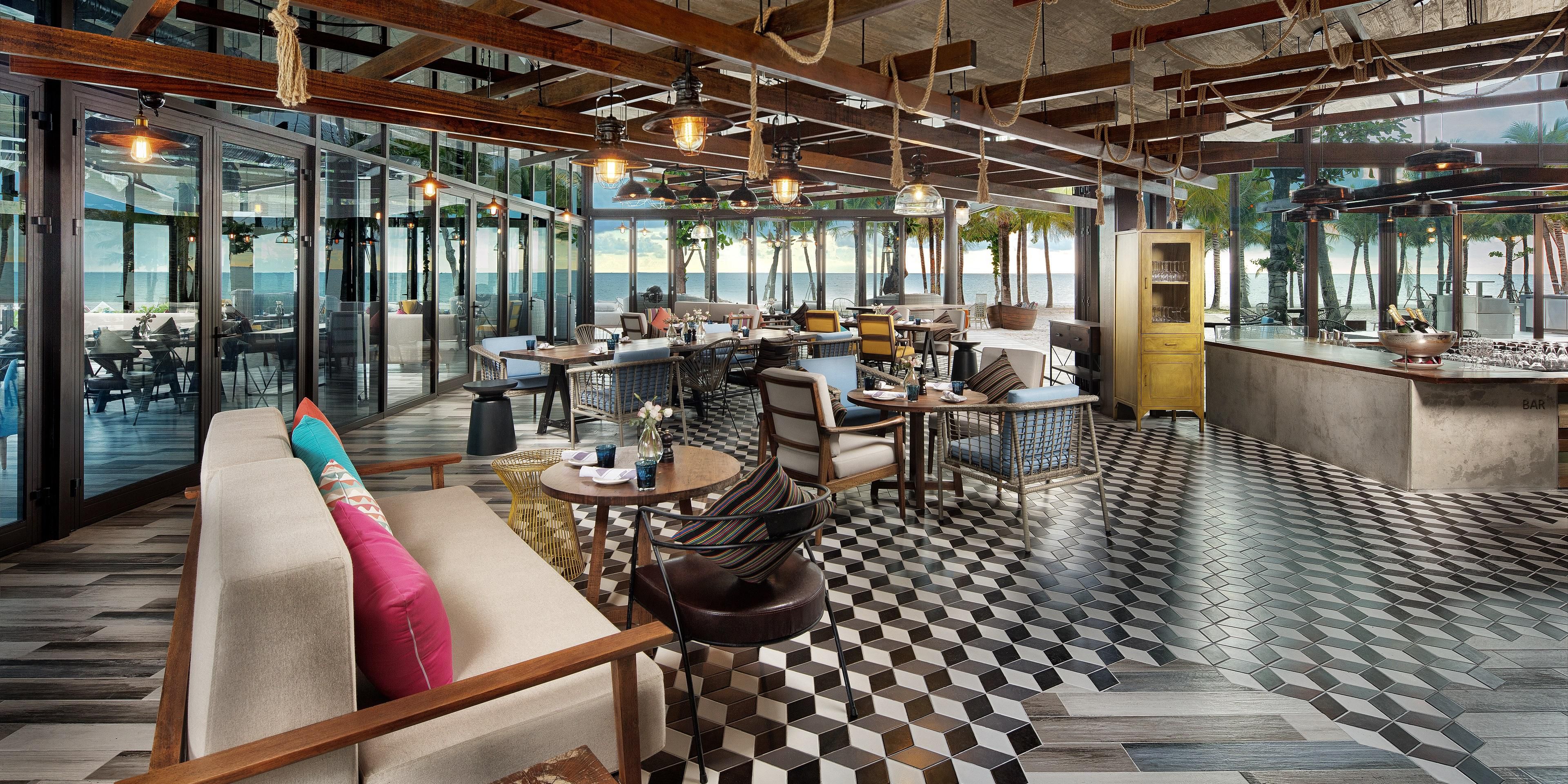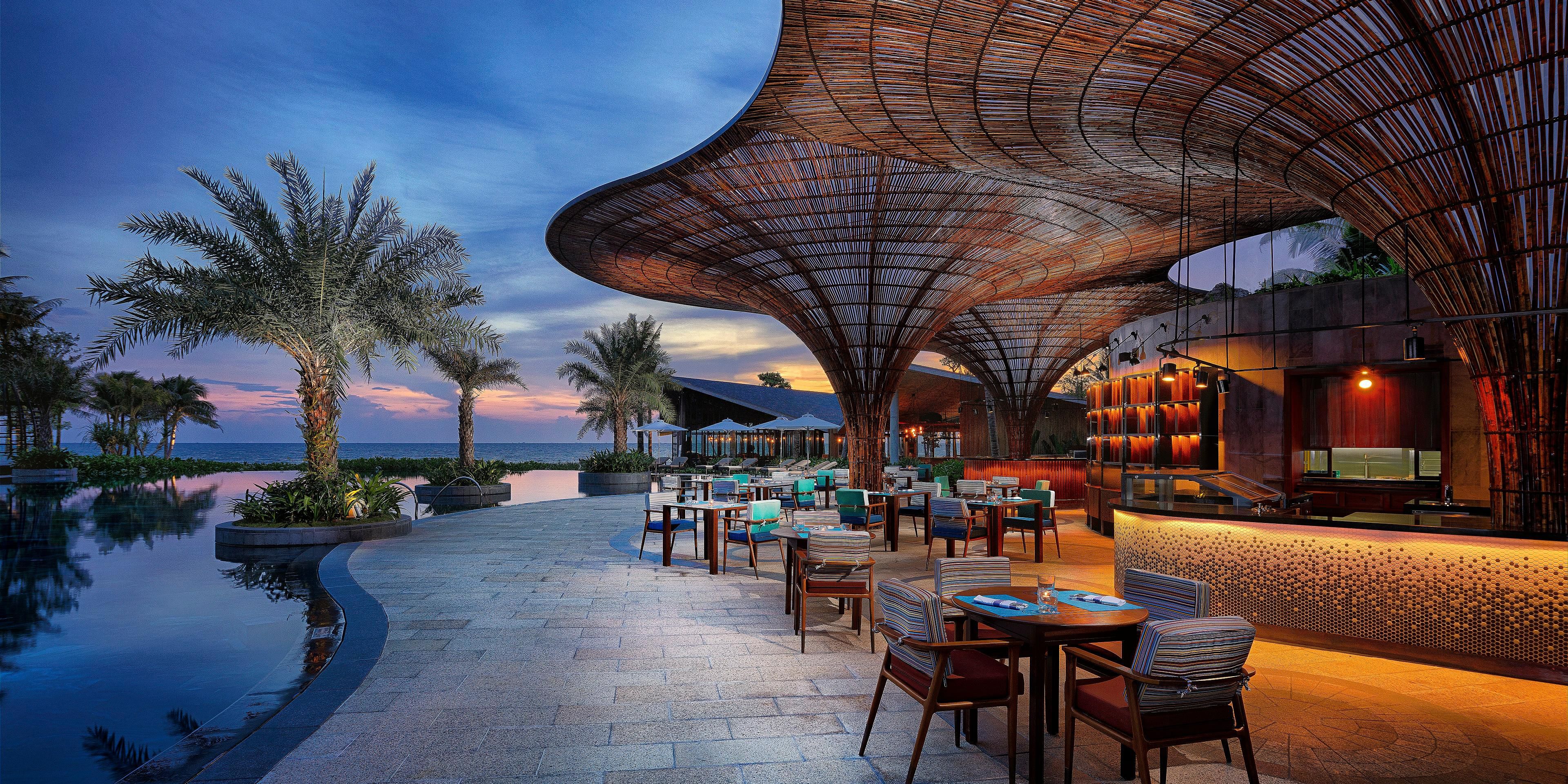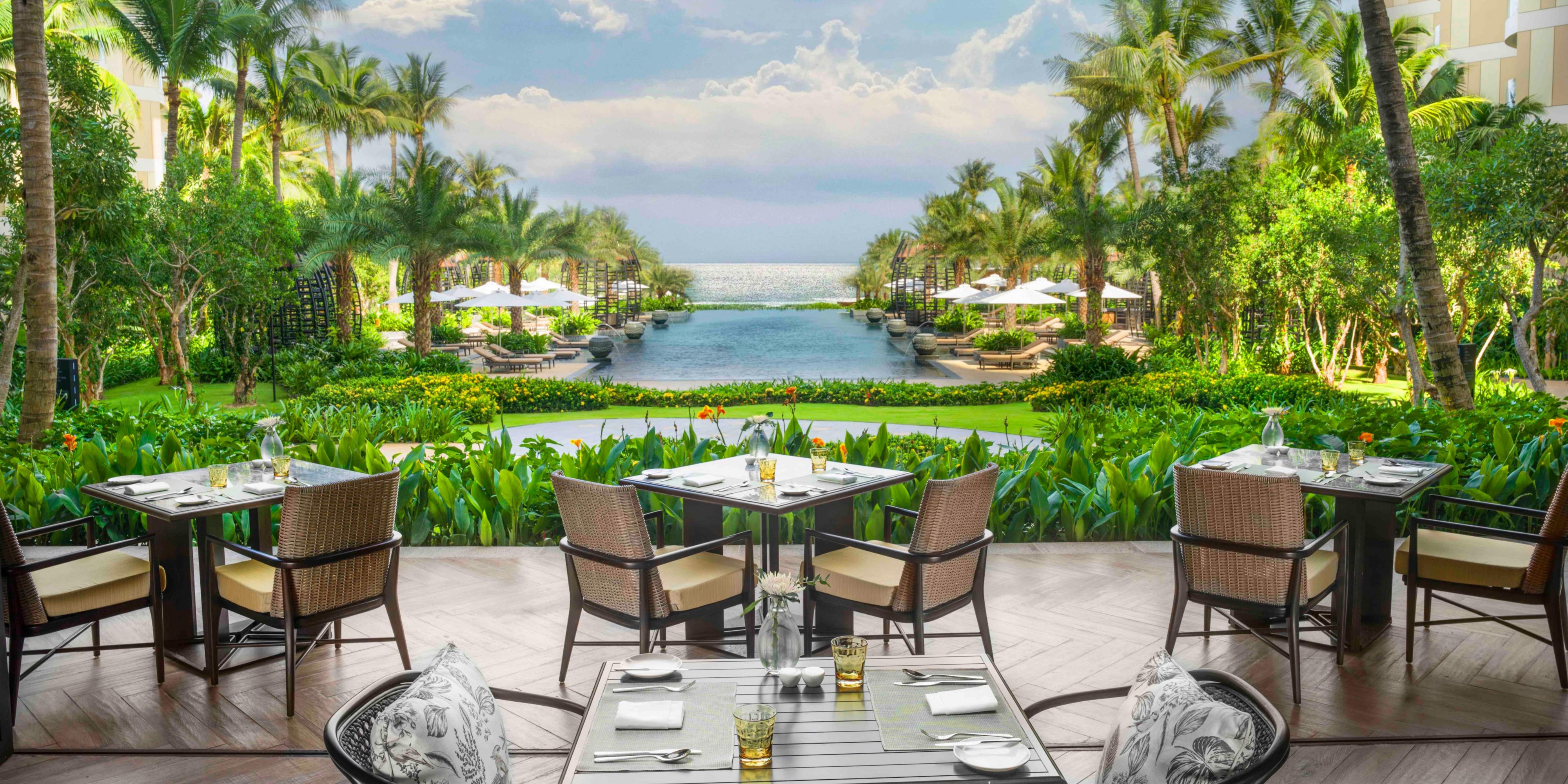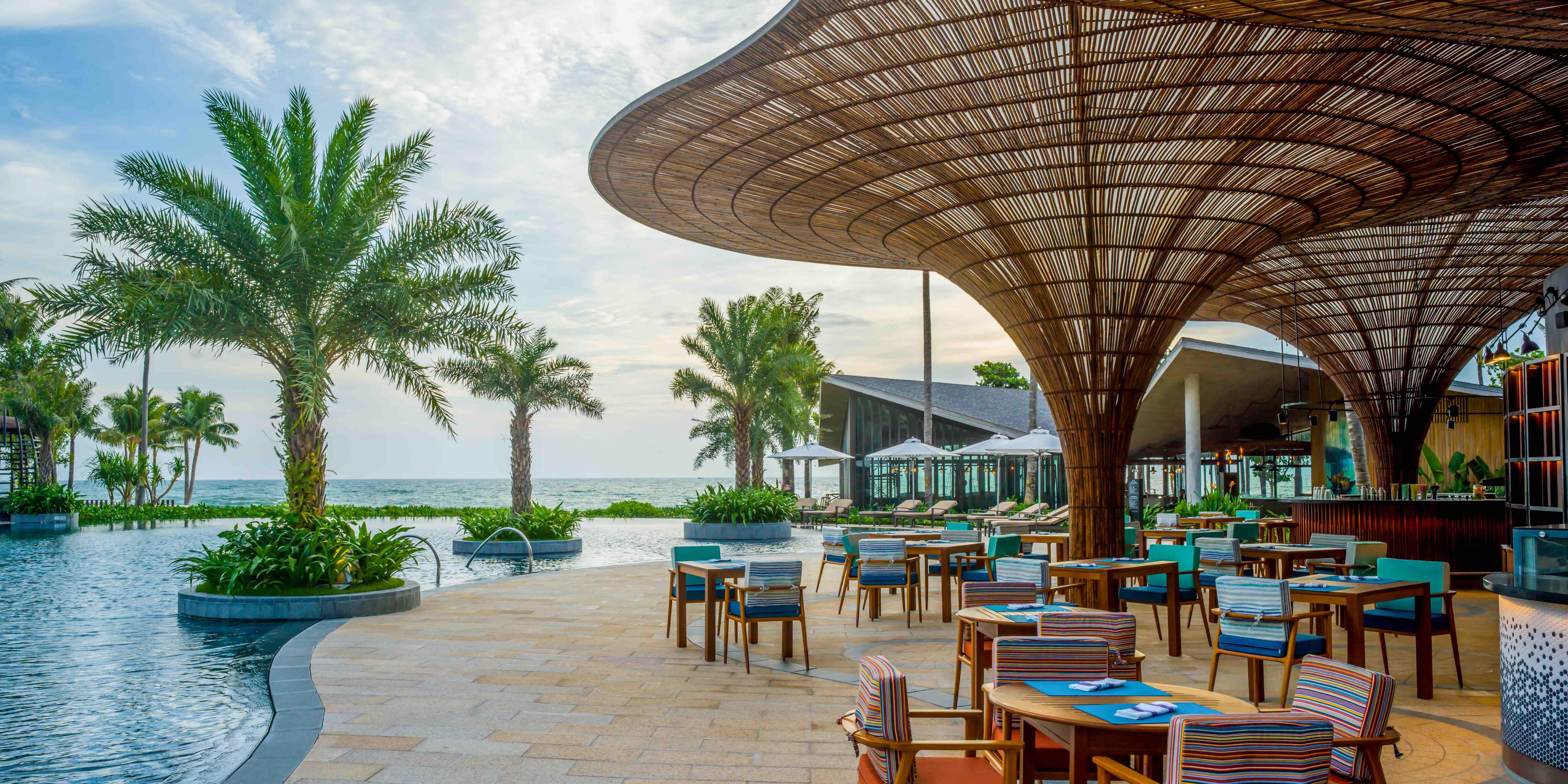 您可在此伴着柔和的晨光,一边品尝美味的全球风味自助早餐,一边欣赏美伦美奂的泳池和海洋美景。午餐和晚餐时段有日式和越南风味美馔供应。