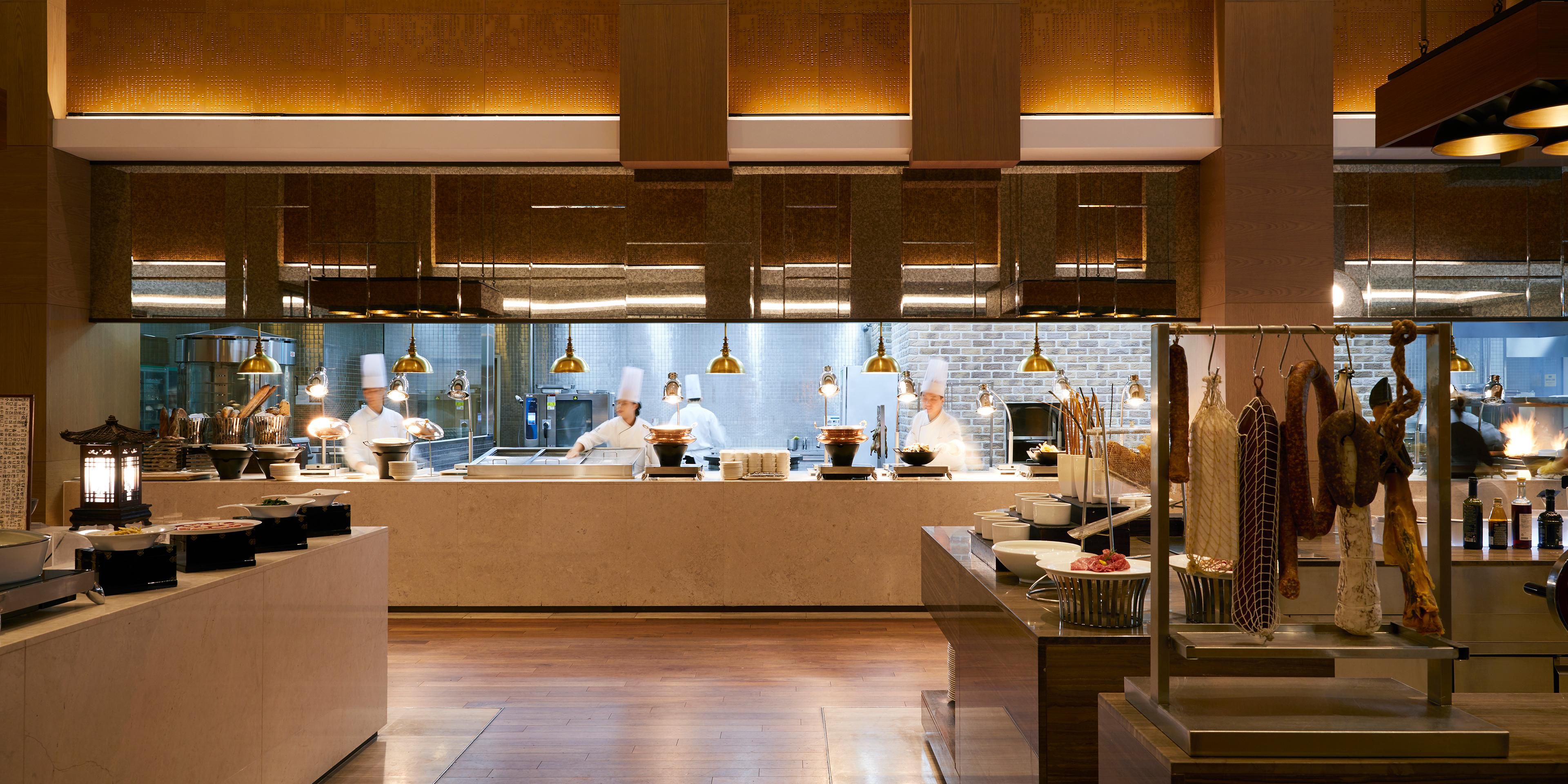 Embark on a farm-to-table feast at the Grand Kitchen. This exceptional international buffet features four culinary stations, each offering a diverse range of flavors to tantalize the taste buds. The open Kitchen Piazza adds an exciting element with captivating kitchen theatrics performed by our skilled chefs. For intimate gatherings or special occasions, the restaurant features 11 private dining rooms, accommodating up to 48 guests.