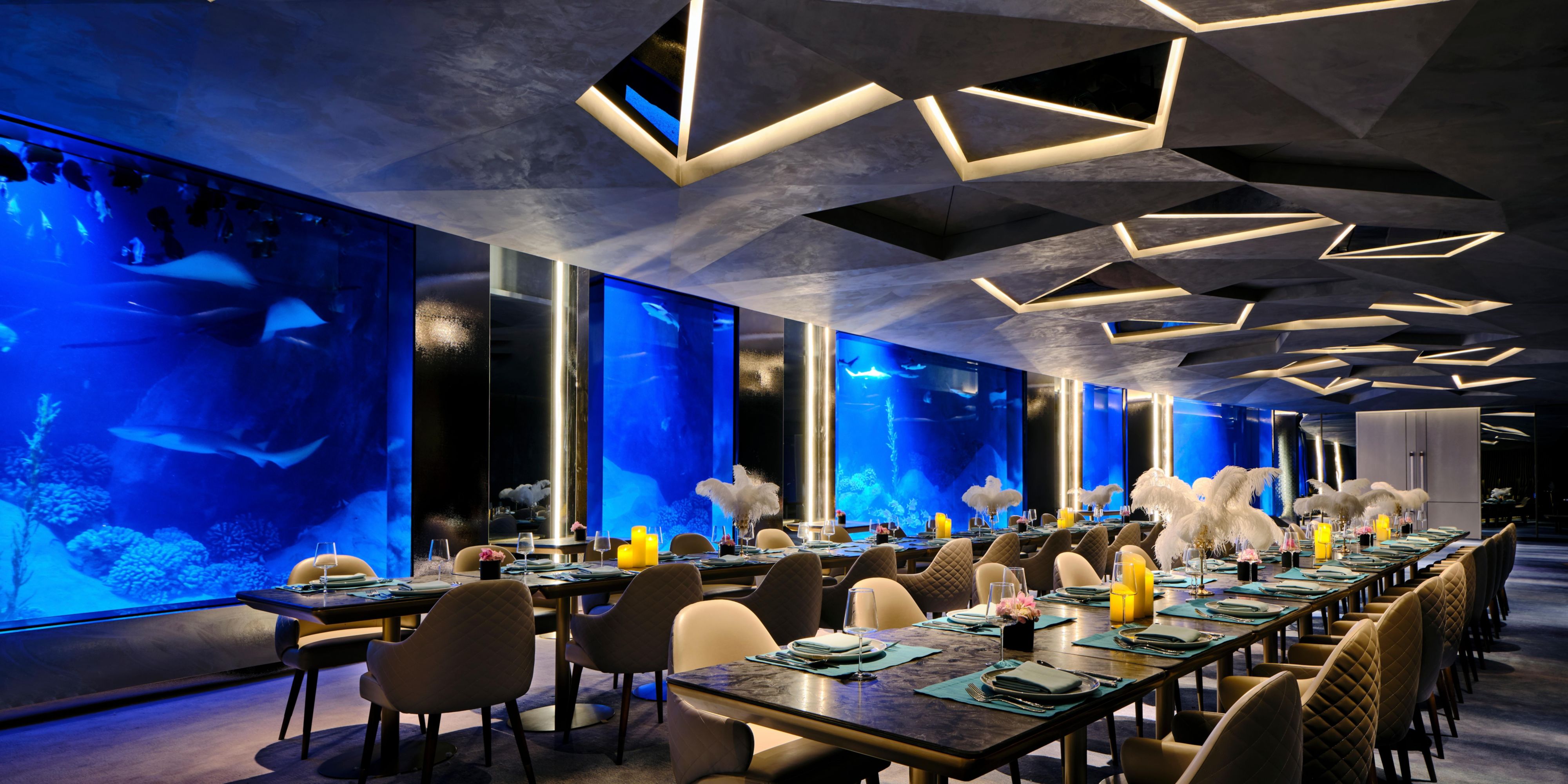 渔火特色餐厅位于水面以下,主打海鲜及西式美味。步入被水族馆环抱的餐厅,您将被五彩斑斓的海底世界景象和扑面而来的海洋气息深深吸引。菜单上琳琅满目的当季海鲜及特色美味,更可让您在这个充满生机活力之地享受美食带来的惊喜。