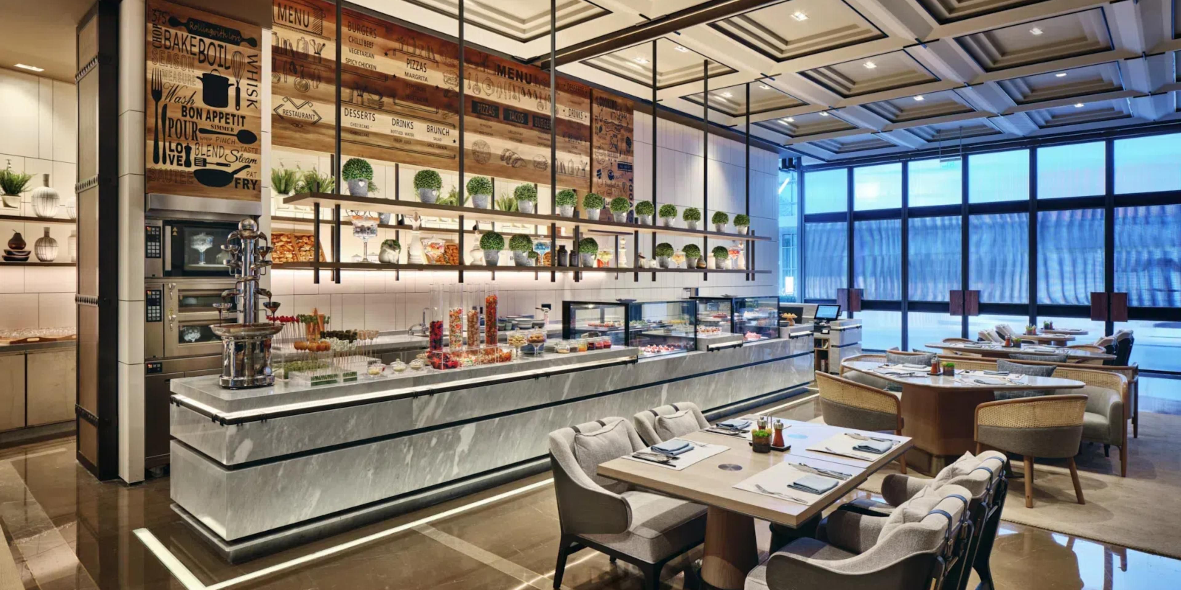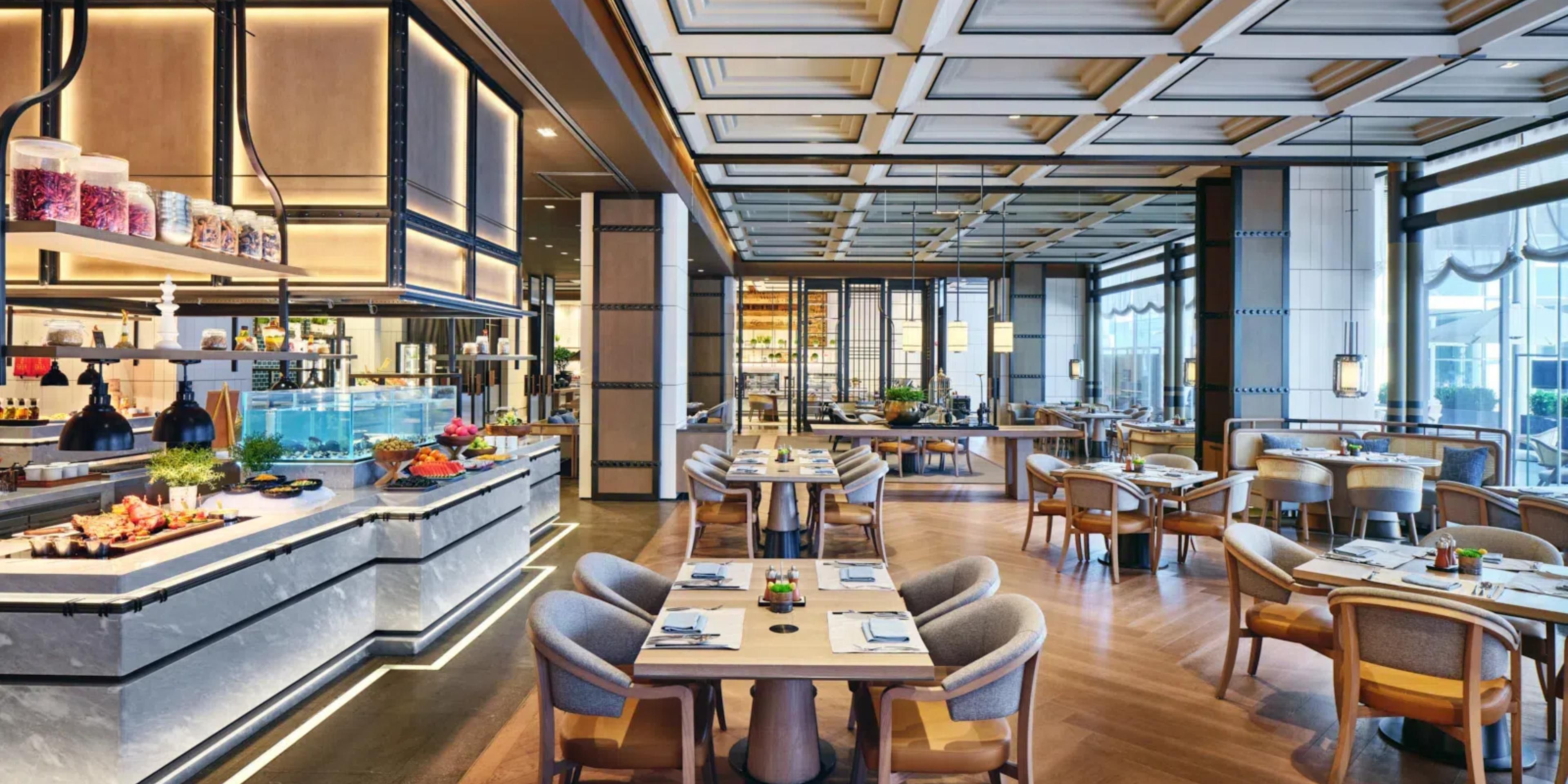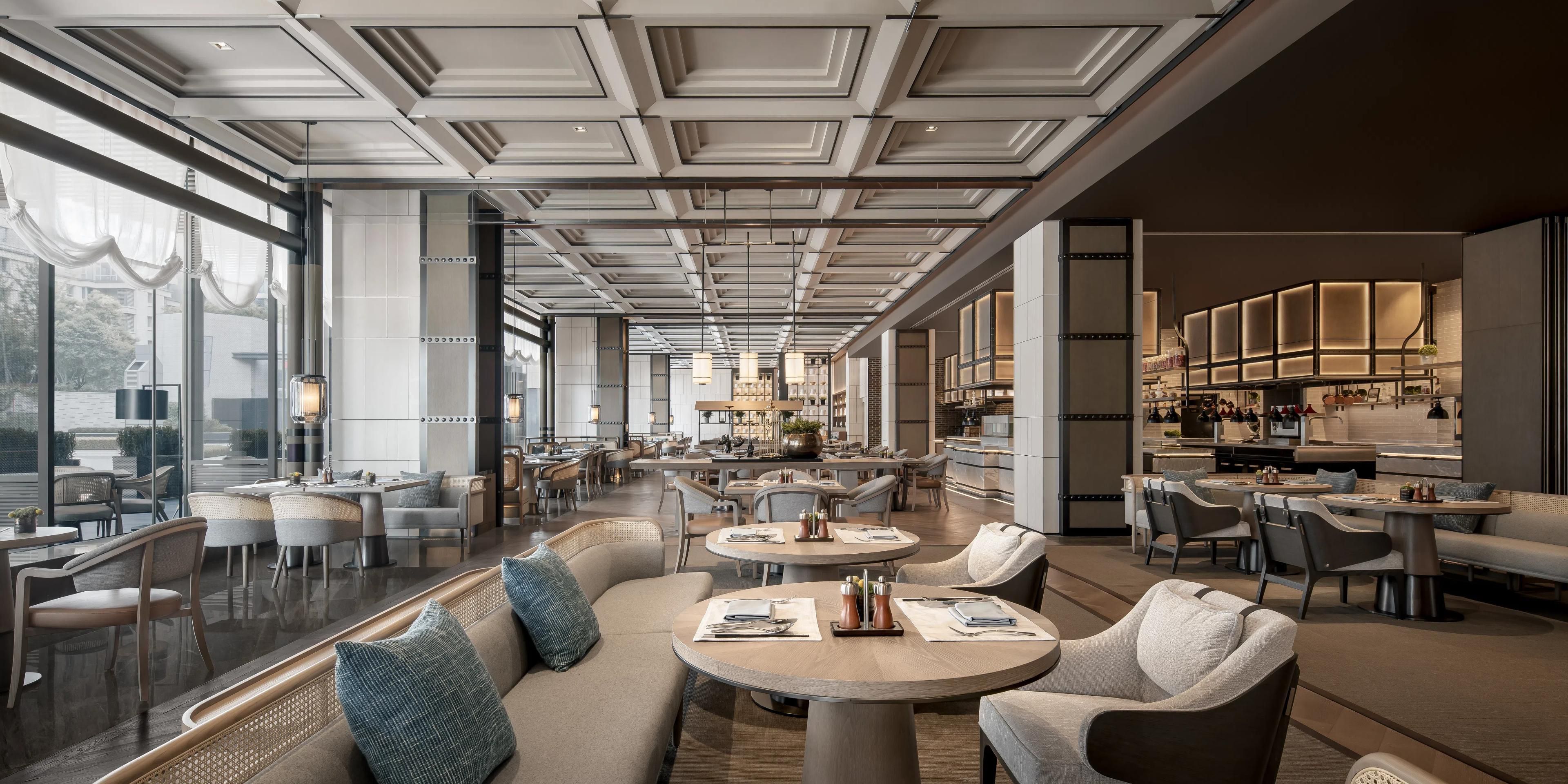 源·咖啡全日制餐厅餐厅甄选新鲜优质食材为您烹制环球美味,全天候供应自助美食及西安特色风味。开放式厨房设计,更添互动乐趣。移步户外用餐区域,美食和美景交相辉映,探味之旅愈发妙趣横生。