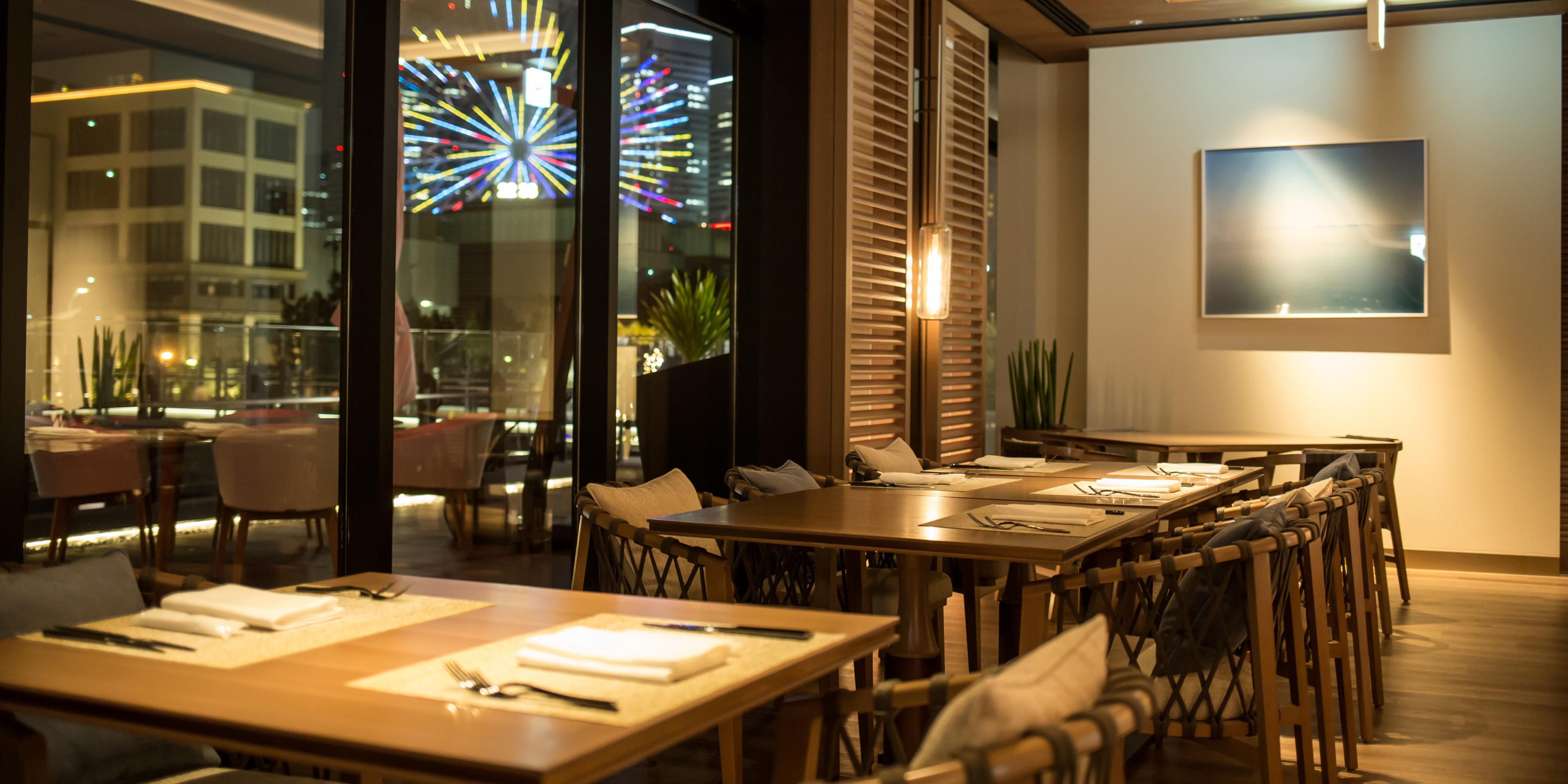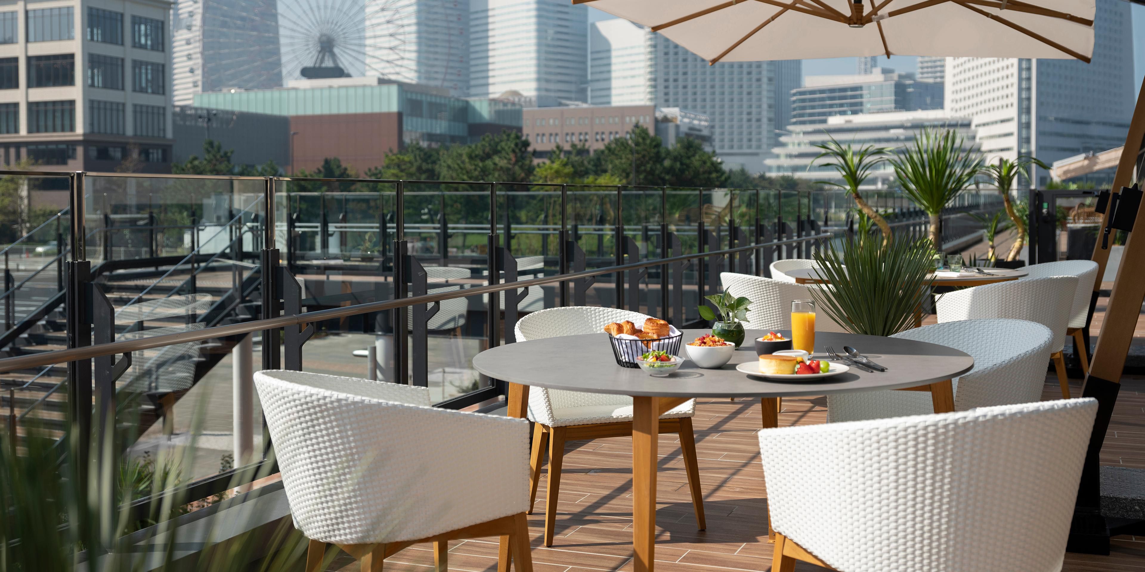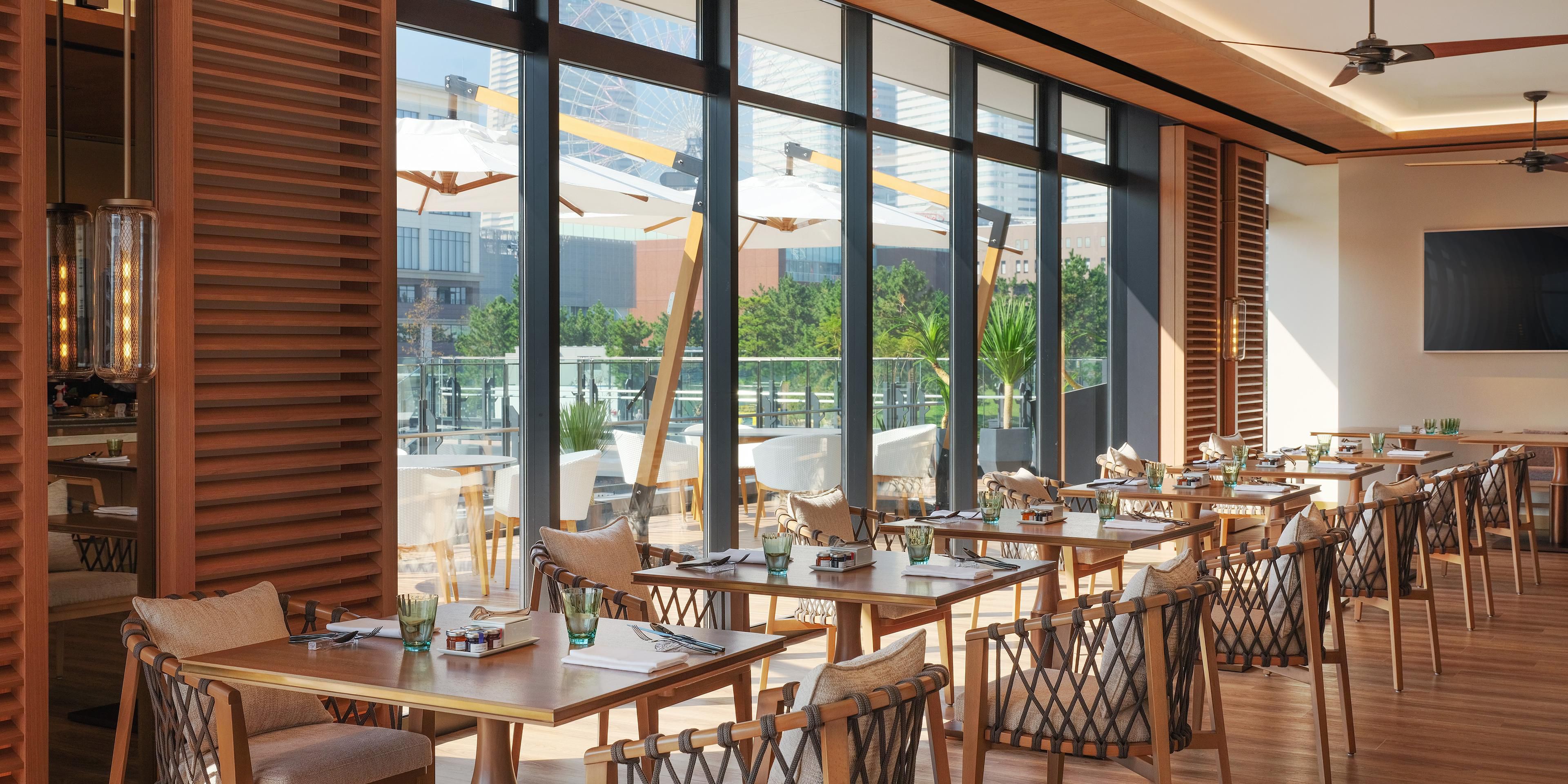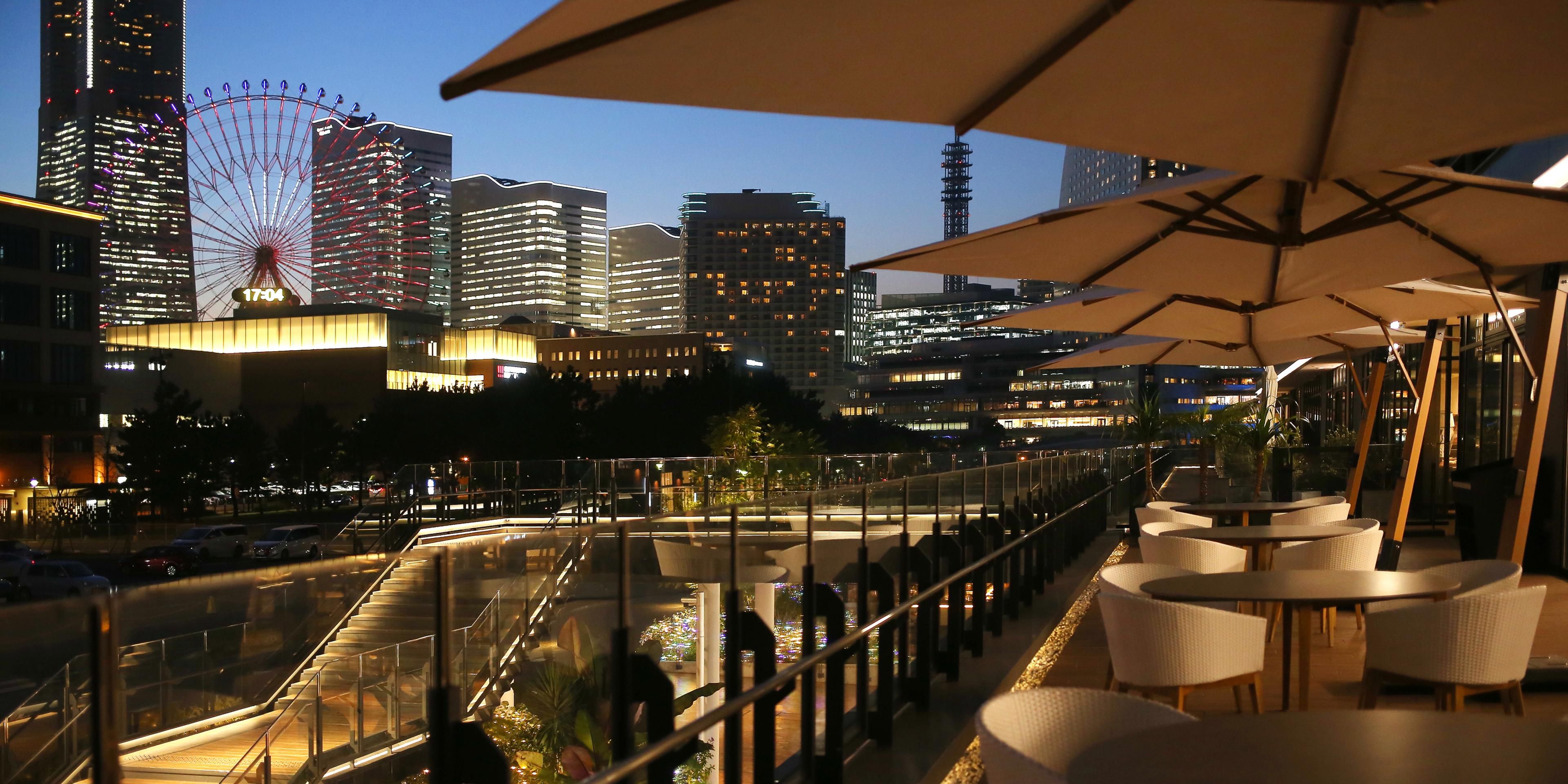 Our set course dishes use only ingredients produced locally in Kanagawa Prefecture. Come discover the innovative Yokohama style Western cuisine. The restaurant is equipped with a relaxing interior and terrace seats to enjoy the panoramic Minatomirai cityscape and the sea. Indulge yourself in an extensive selection of wines and cocktails to the accompaniment of live jazz during bar time. Restaurant phone: 81 45 307 2228