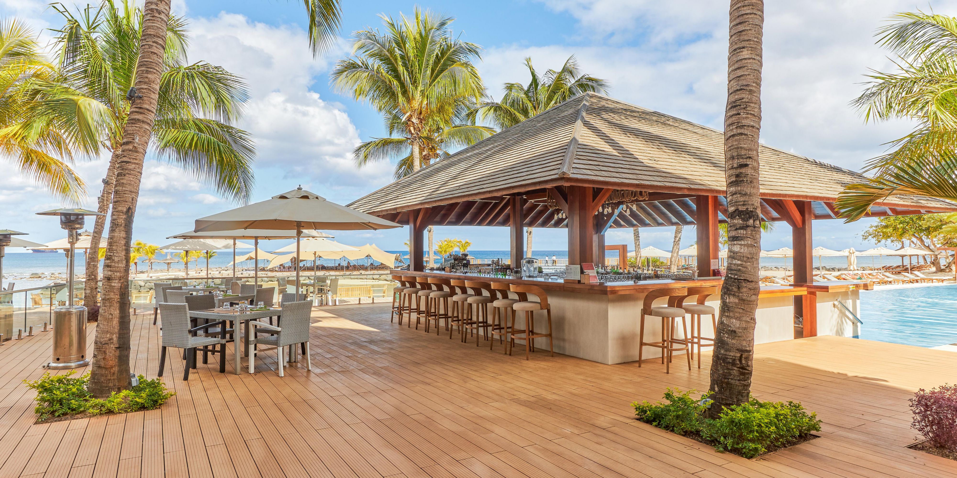This chic open-air bar is located by the resort’s main pool, offering breathtaking views of Balaclava Bay. Relaxed and personalized service complements a casual seaside ambience, while an extensive bar menu offers light meals and snacks made from the freshest ingredients. Order a signature drink from the bar, or share sunset cocktails with your loved ones while enjoying sweeping Indian Ocean views.