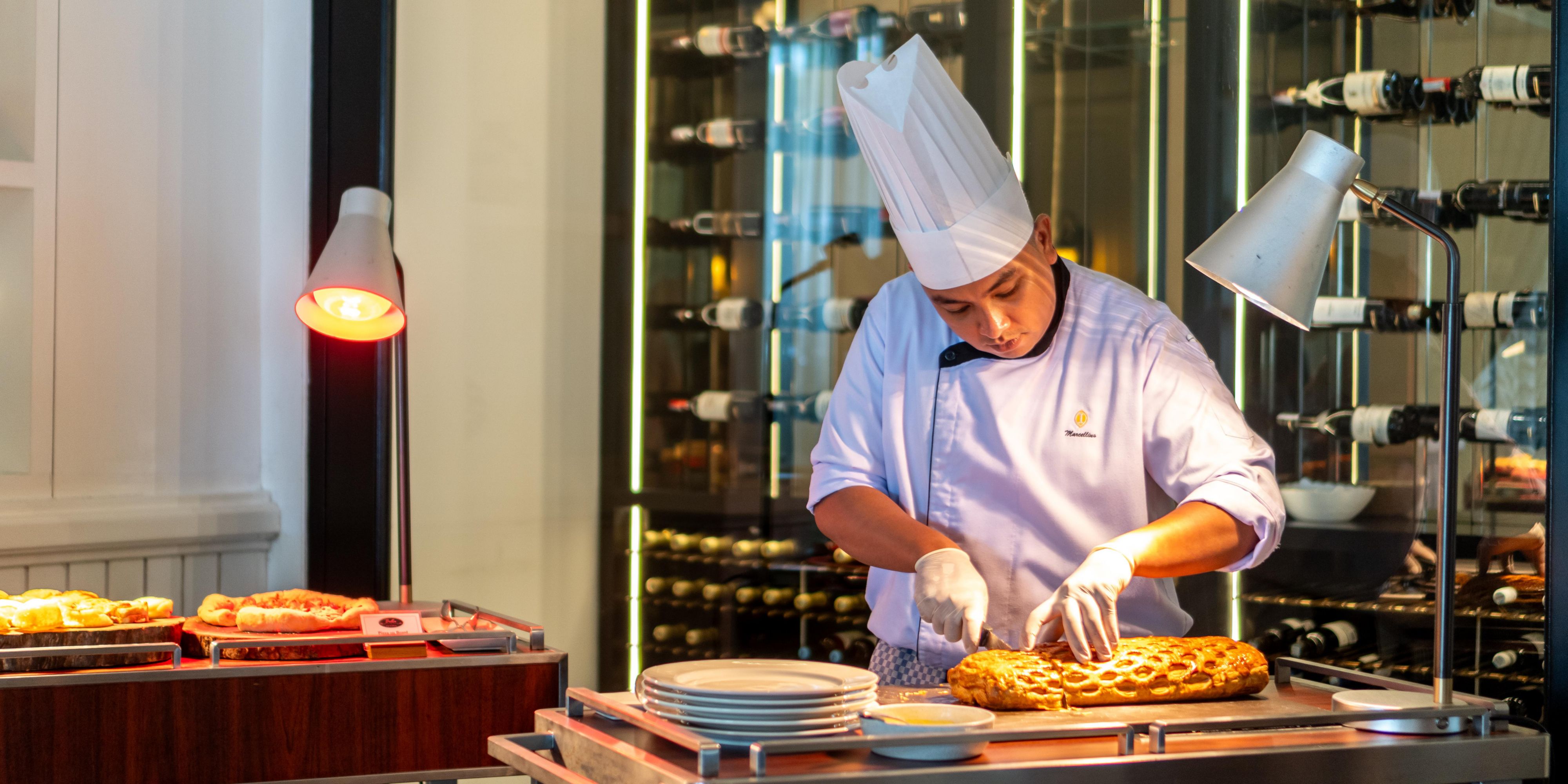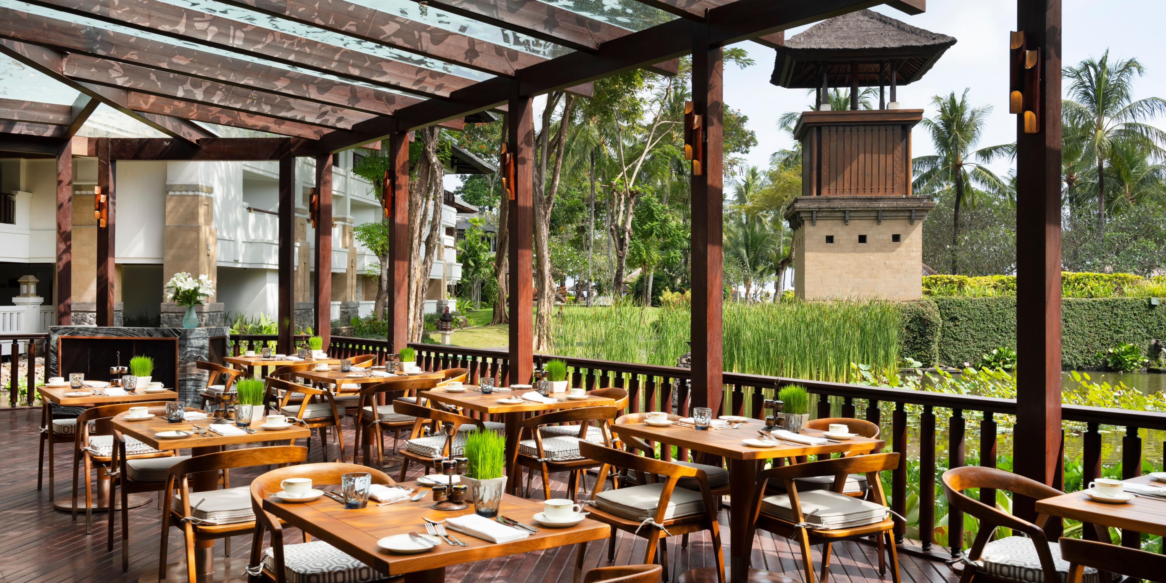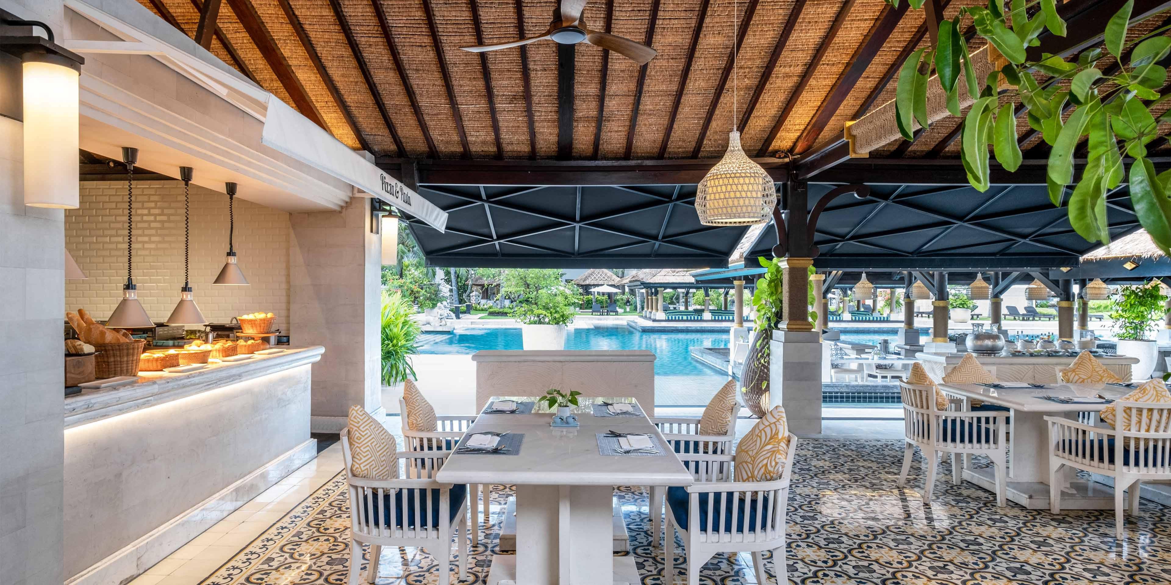 A pendulous bamboo lighting installation reminiscent of a set of Balinese wind chimes sets the stage for breakfast at Taman Gita. Settle into a sleek banquettes and alcoves adorned with Balinese artefacts, before indulging in the extensive international breakfast buffet. Take time to peruse the storyboard wall display of musicians playing gamelan instruments, a tribute to the restaurant's namesake, Taman Gita, which means heavenly garden of music.