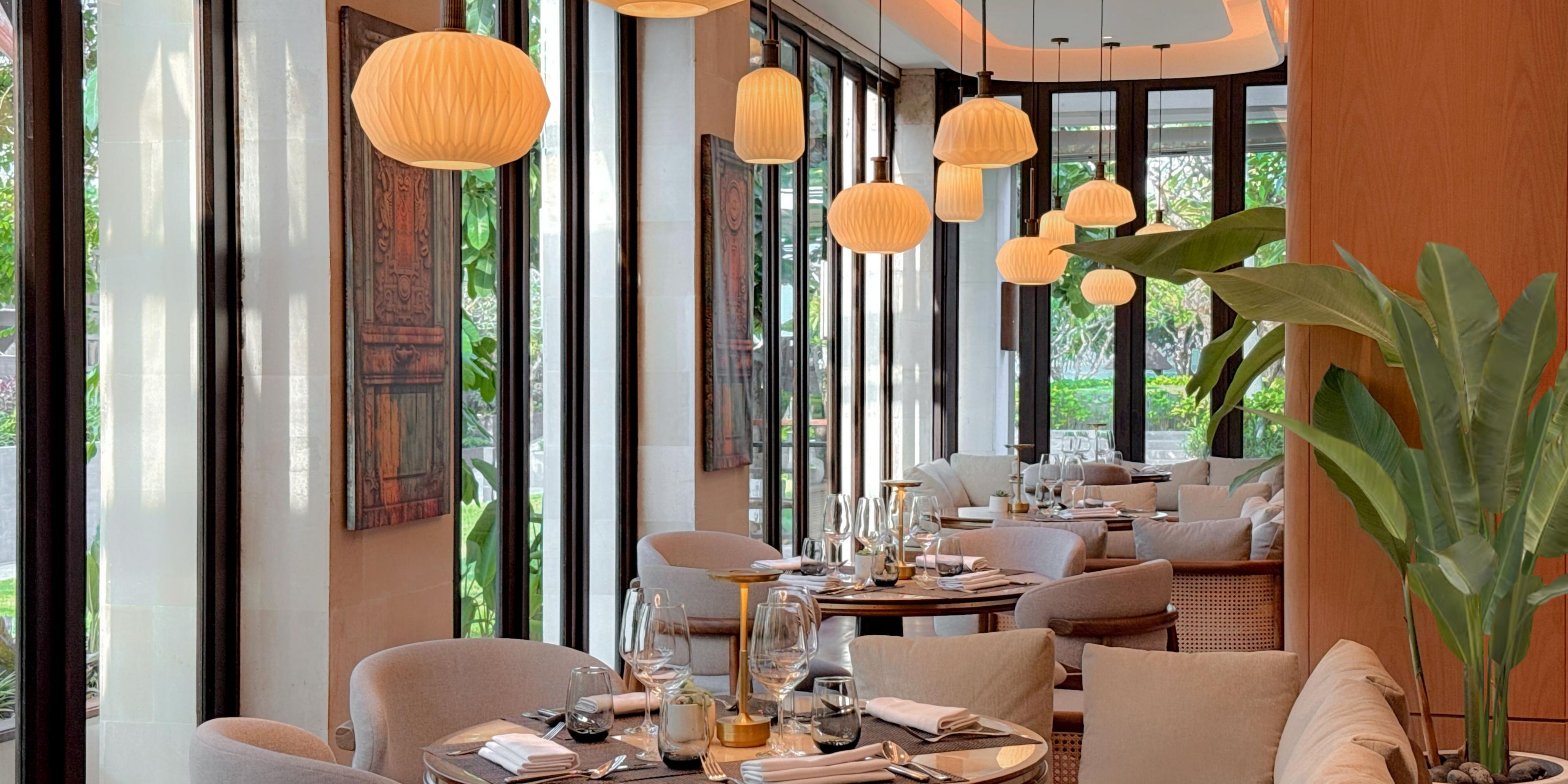 Layang Layang Restaurant epitomizes Bali natural beauty and earthiness. Meaning Kite in Bahasa, Layang Layang open air dining room captures the sea breeze and puts guests at ease. Indigenous wood panelling and Kalimantan marble flooring give the restaurant a soul that is uniquely Indonesian. Layang Layang also offers an exquisite outdoor dining experience amidst the hotel lush tropical garden surrounded by a flowing water feature. Menu and operating hours subject to change