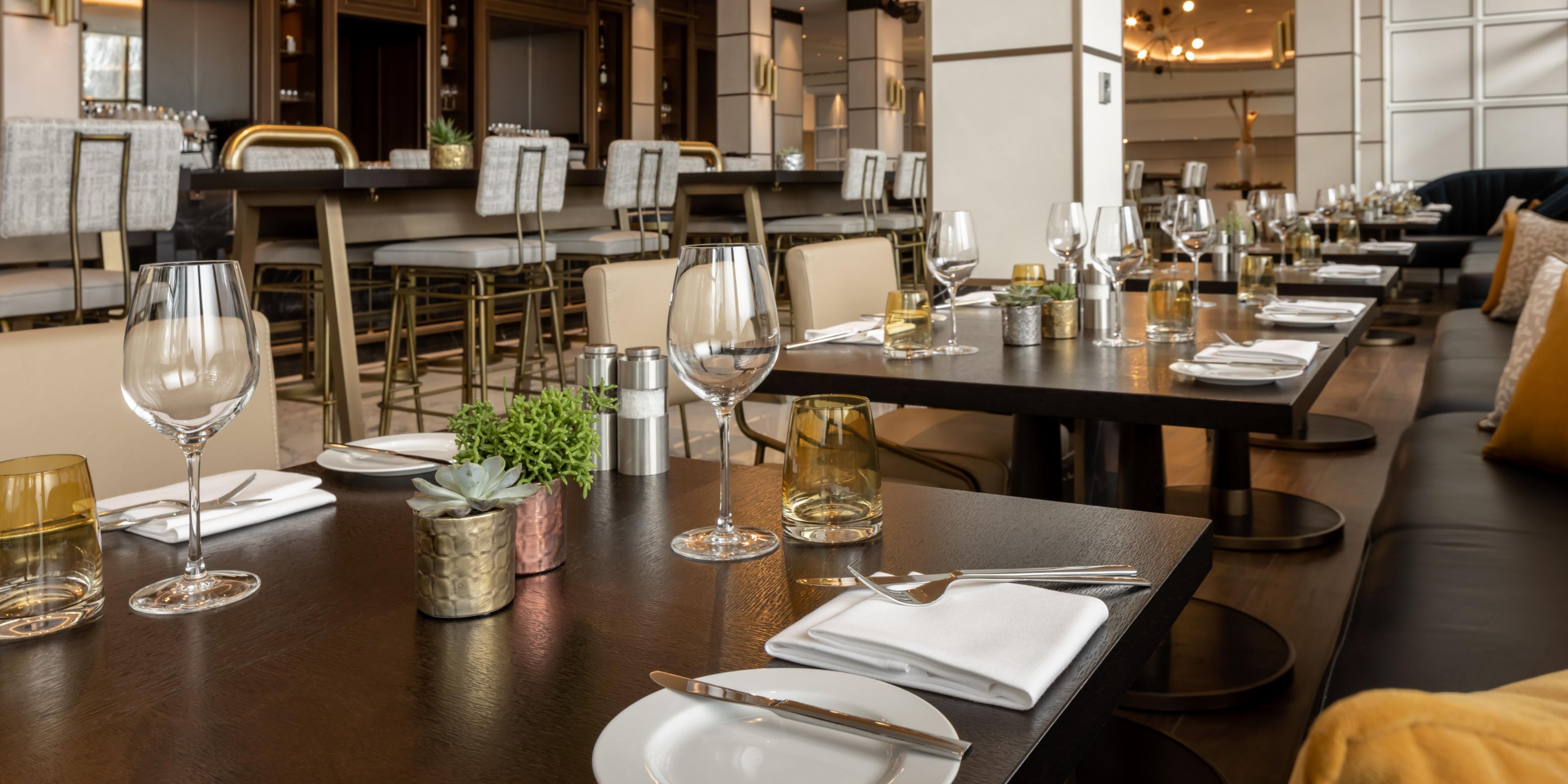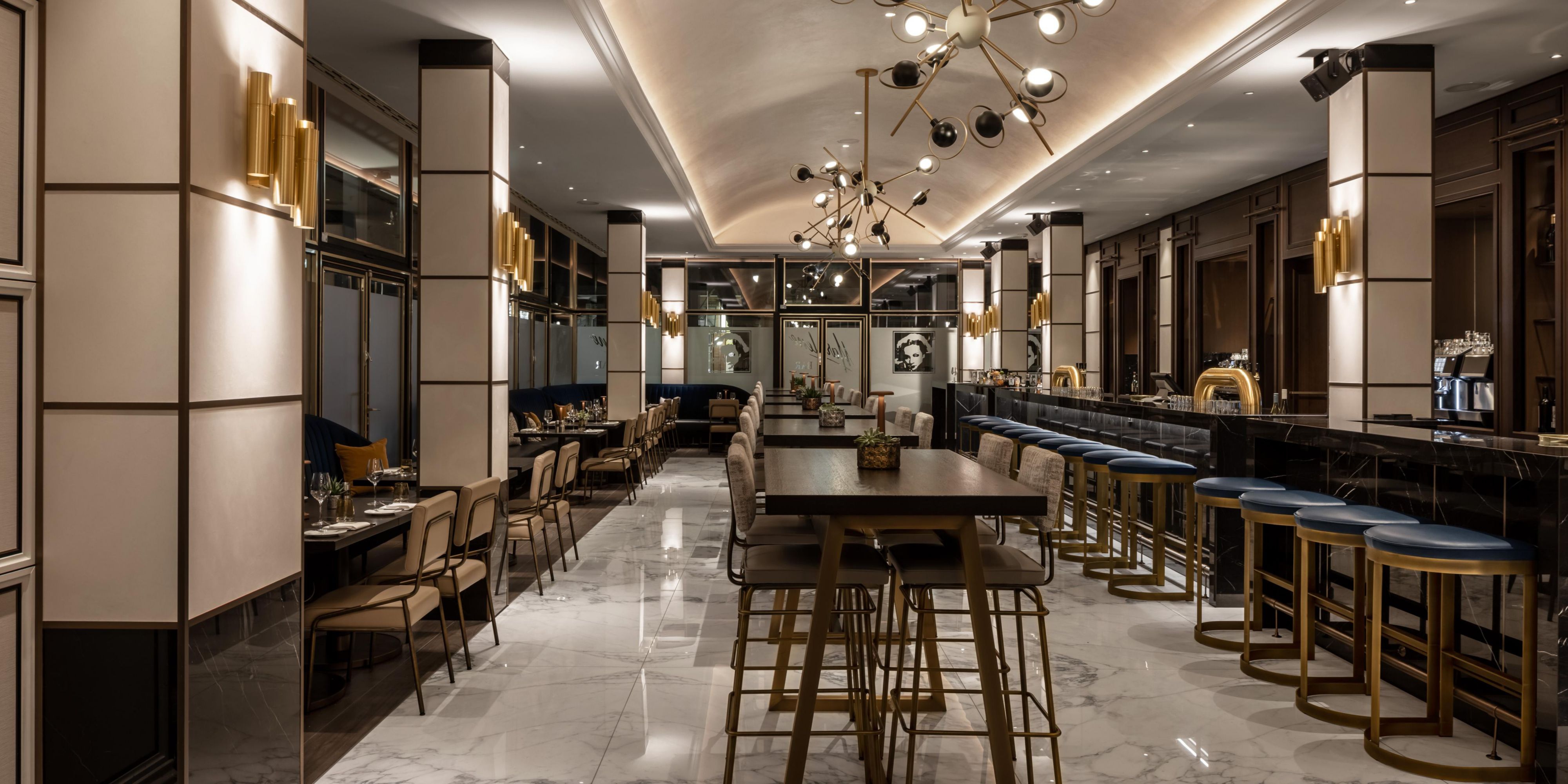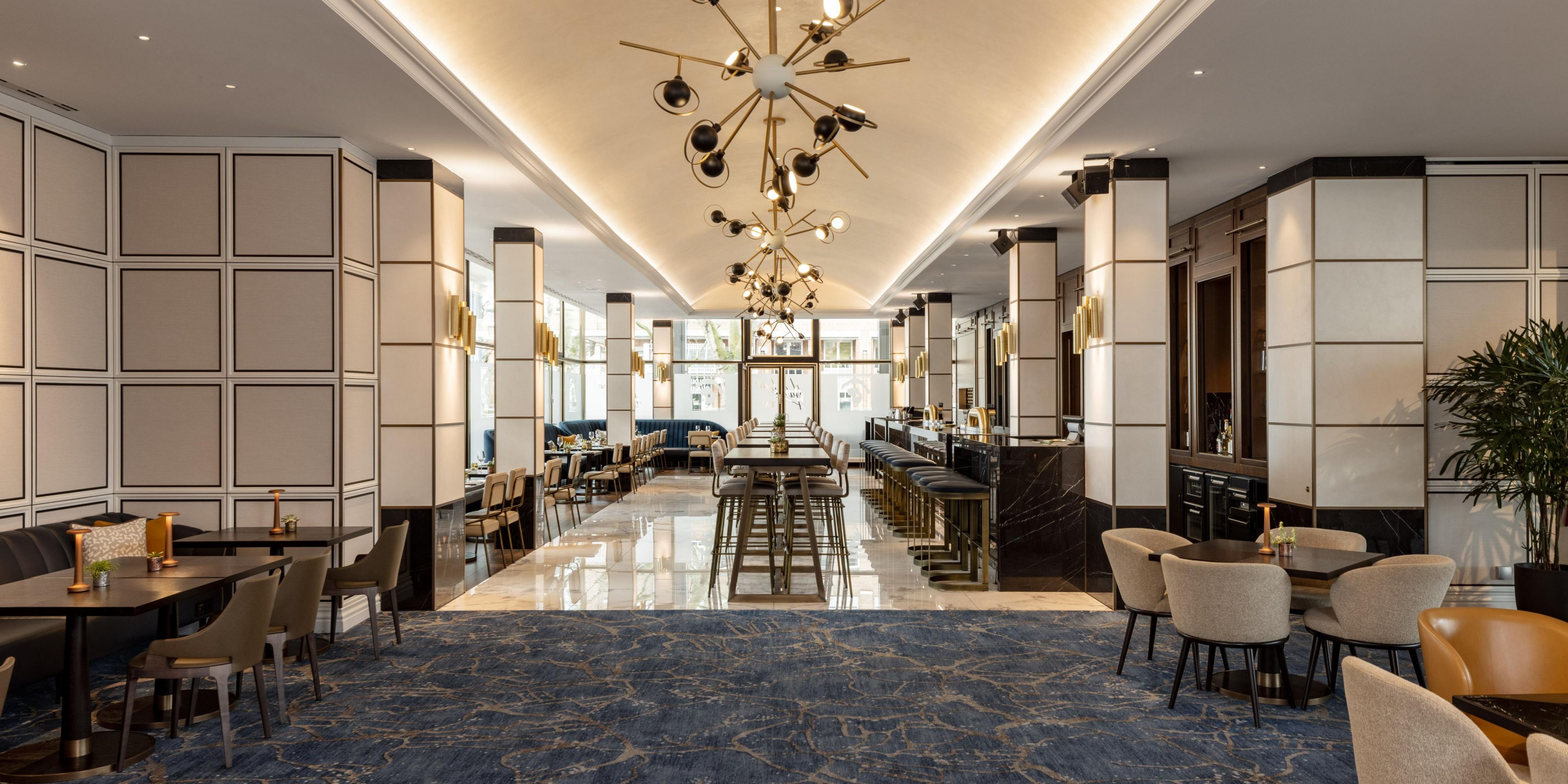 Newly renovated, our bar and restaurant offers sleek, modern and stylish décor. Take a seat, relax at the long bar, and have our mixologist create fabulous cocktails, or entertain friends or colleagues at the high tables tasting locally inspired delights from our menu.