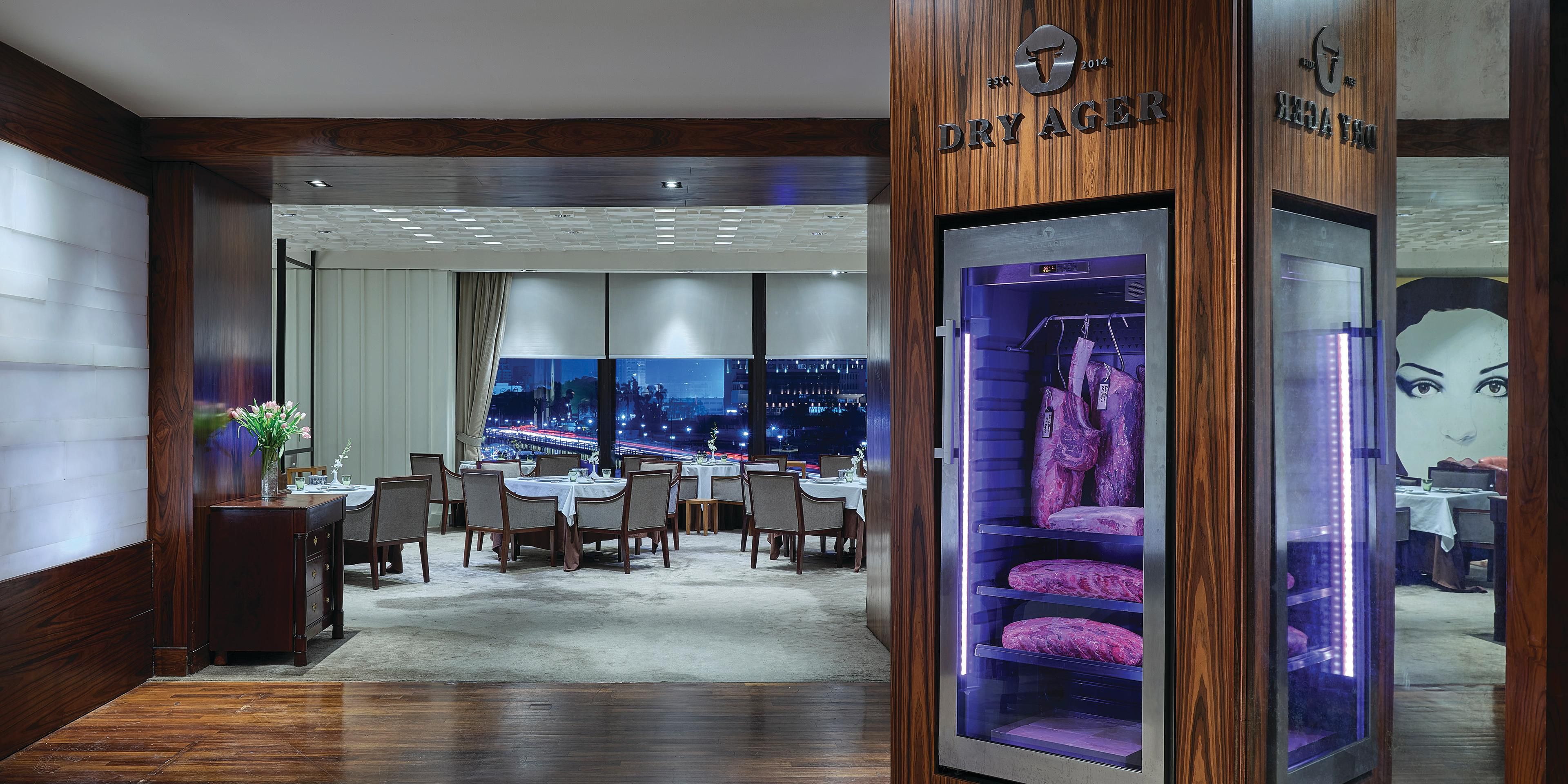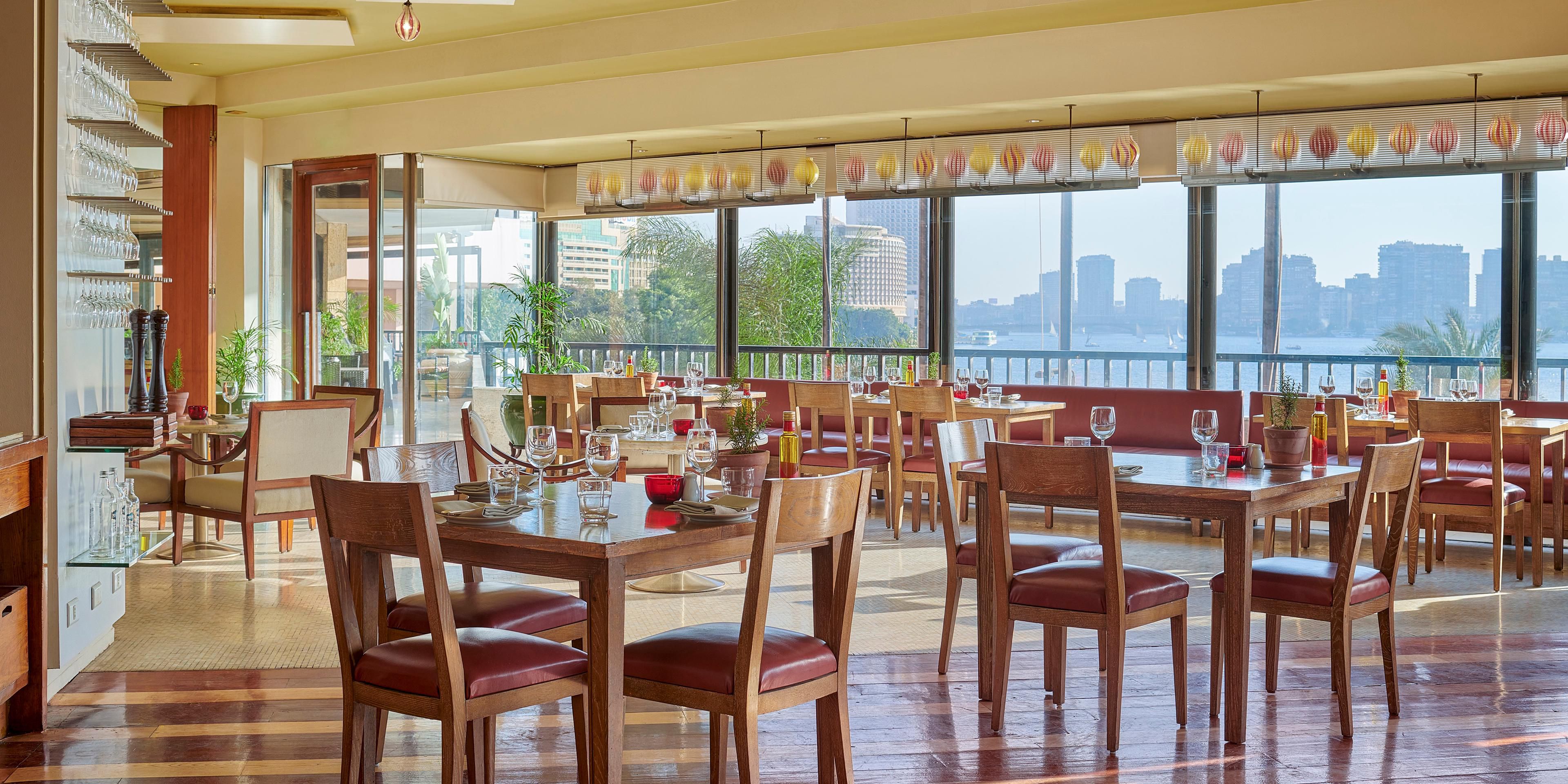 The Grill offers an exclusive dining experience, specializing in the art of dry aging, where every cut of meat is meticulously prepared to perfection. Guests are invited to indulge in a selection of premium meats and expertly grilled dishes, all crafted to highlight the rich, natural flavors. The restaurant's ambiance is elevated by a breathtaking panoramic view of the Nile.