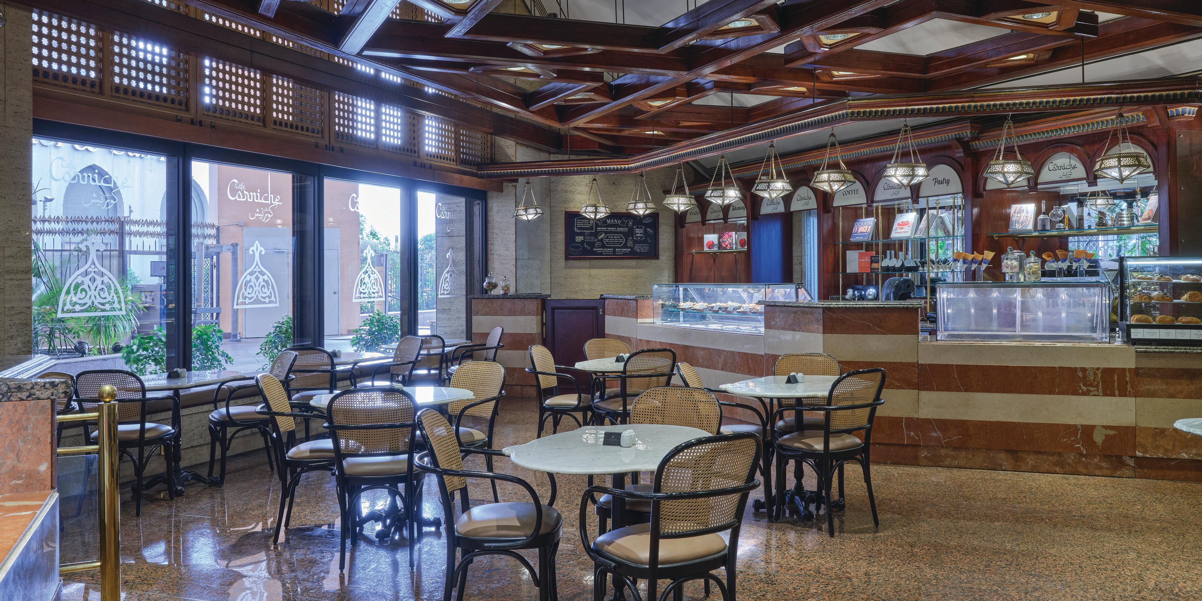 Café Corniche offers a truly luxurious experience, combining the comfort of a neighborhood café with a tantalizing Oriental twist. Open all day, it is the perfect spot to indulge in succulent treats such as the Ivory Coast chocolate éclair, the Wimbledon strawberry tartlet, the Burgundy raspberry mousse, and black currant financier. Takeaway options are also available as well as a range of gourmet sandwiches, salads, bakery, sumptuous teas, and freshly brewed coffee. Open 24 hours.