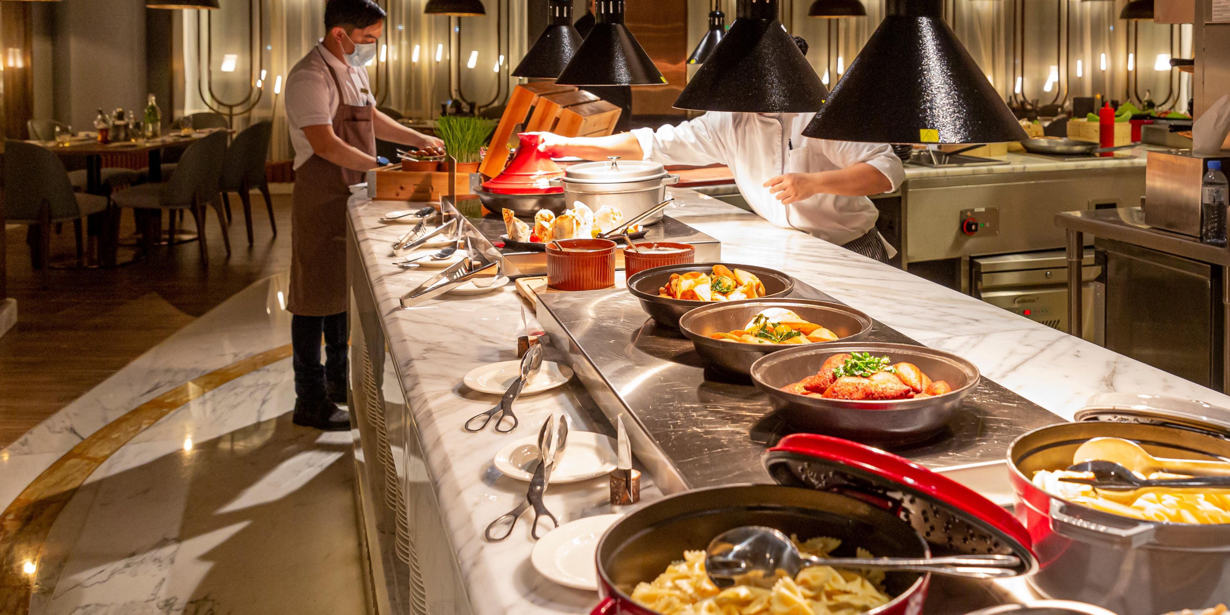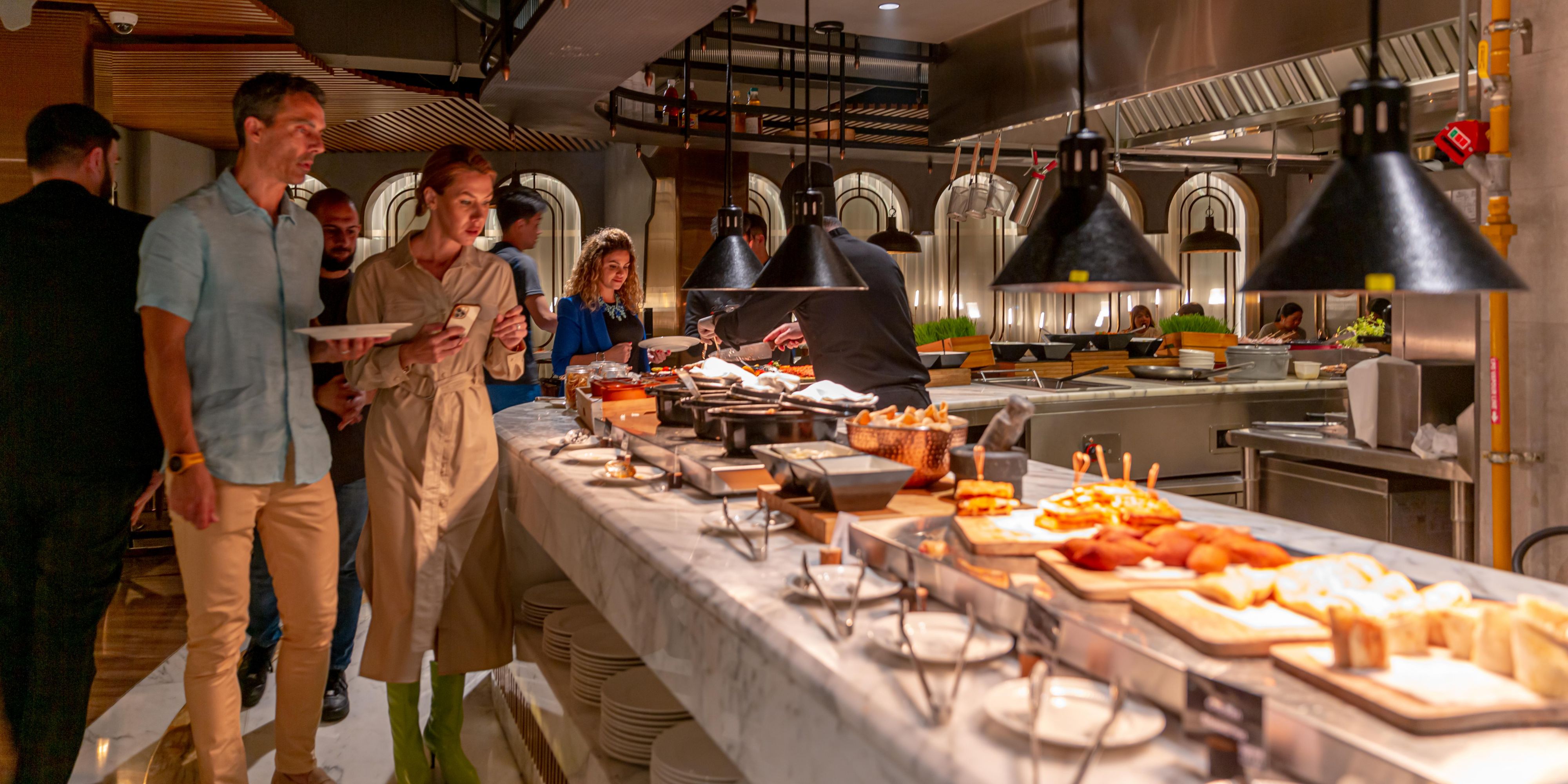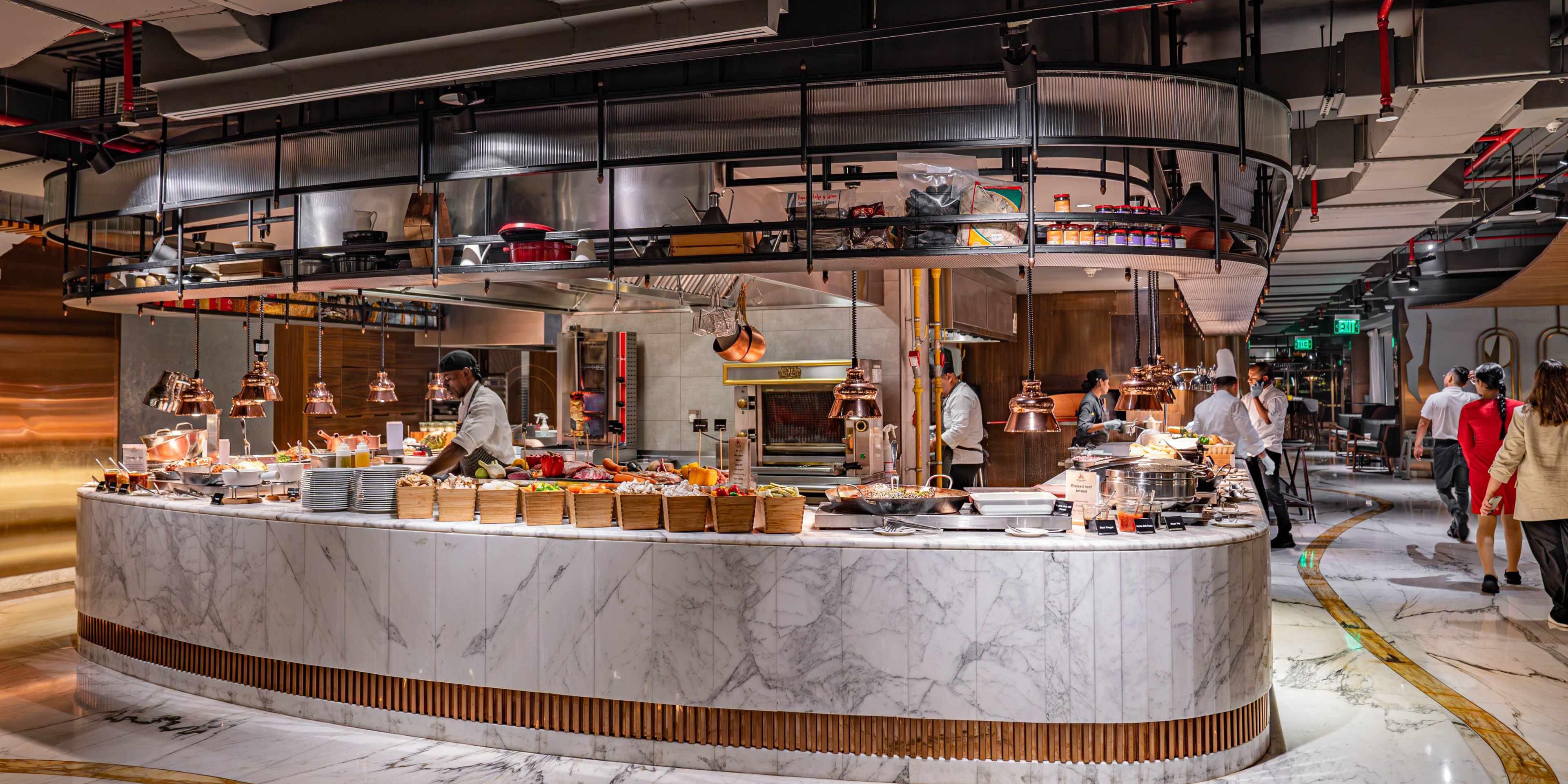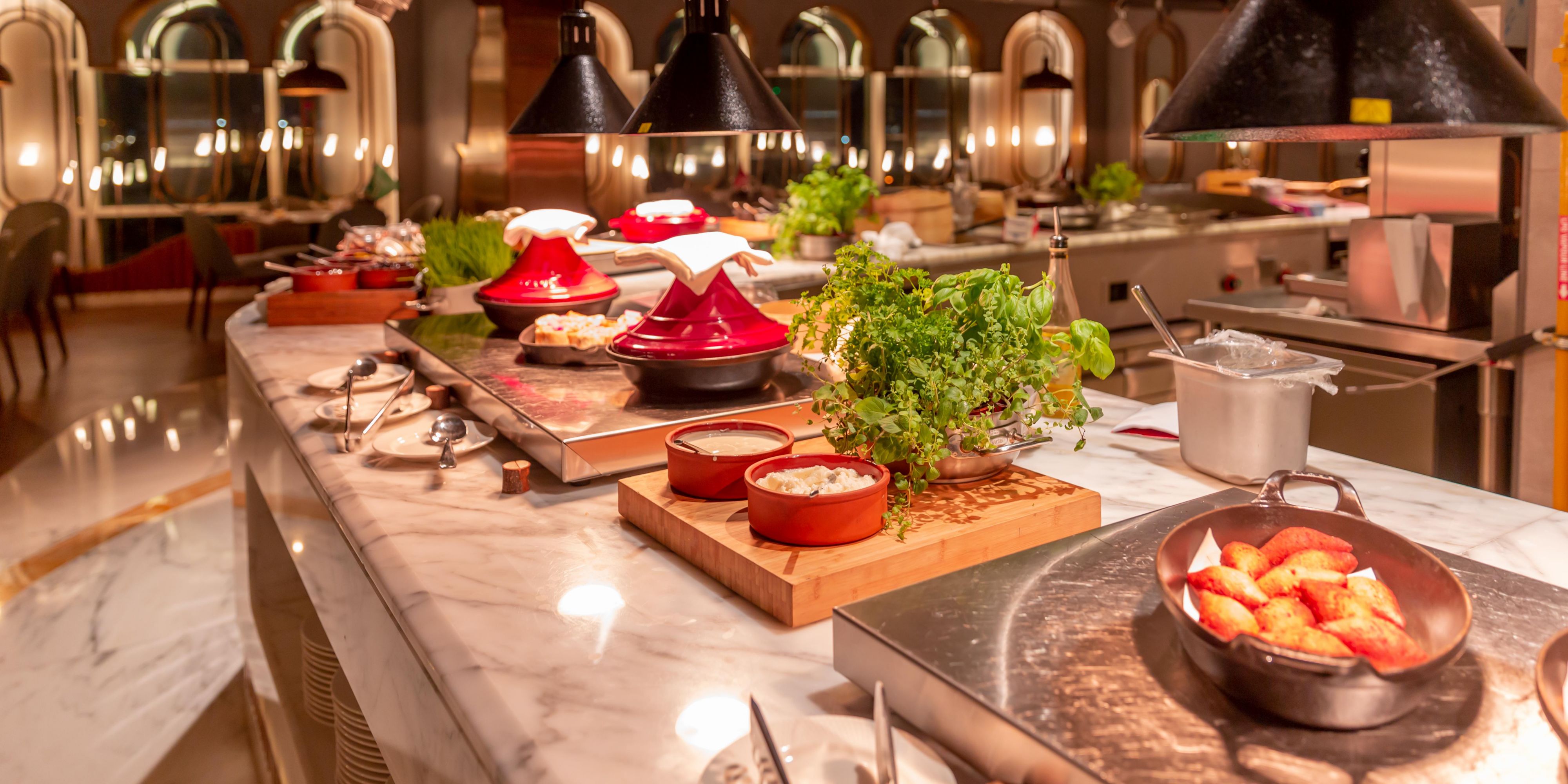 A culinary adventure with a warm, family-friendly atmosphere. Enjoy a lively and engaging dining experience with open kitchens and chef stations, creating a vibrant energy that brings joy to everyone. The restaurant features theme nights, such as Butcher Night, where you can handpick your cut of meat, and the Seafood Market Night with the freshest catch. There's also a dedicated kids' club area to ensure everyone has a fantastic time.