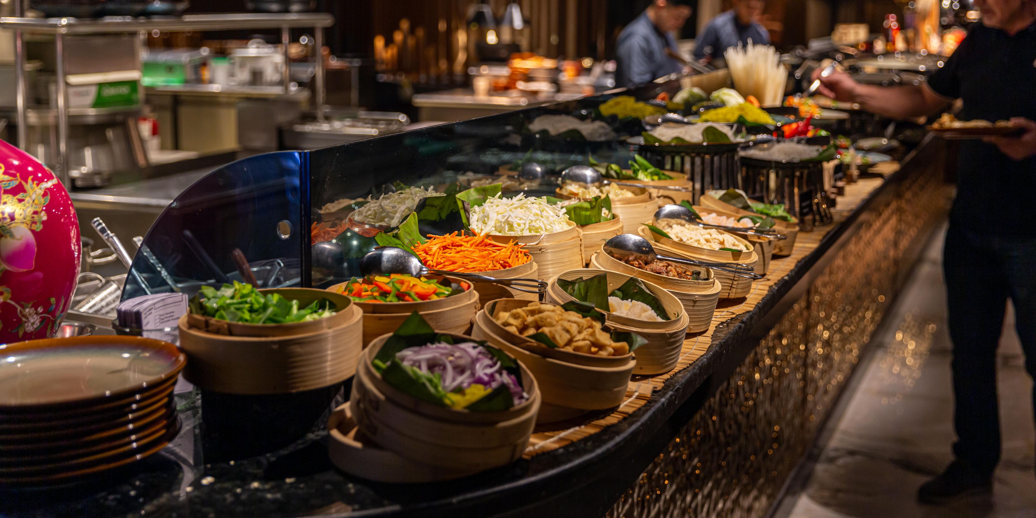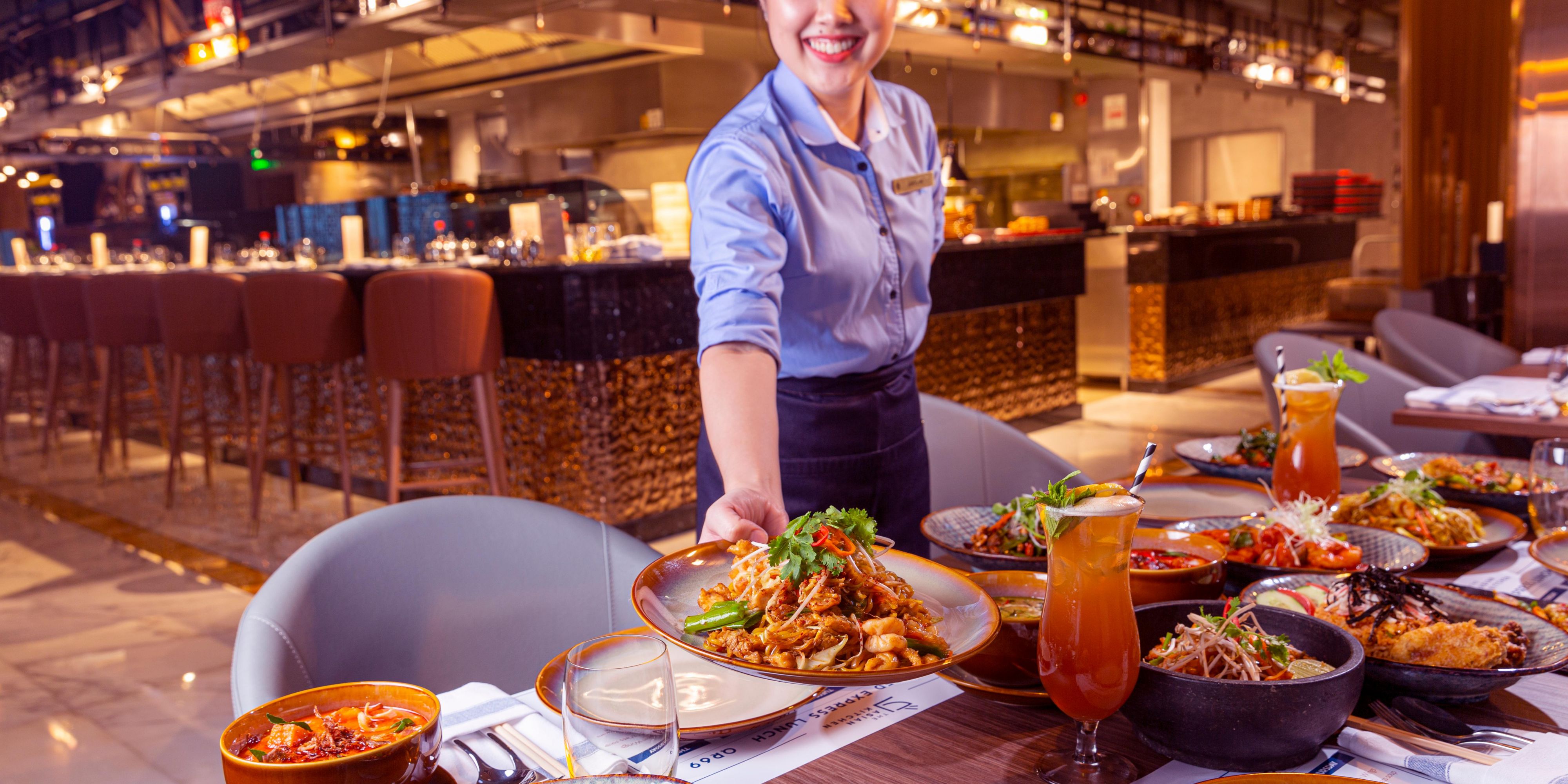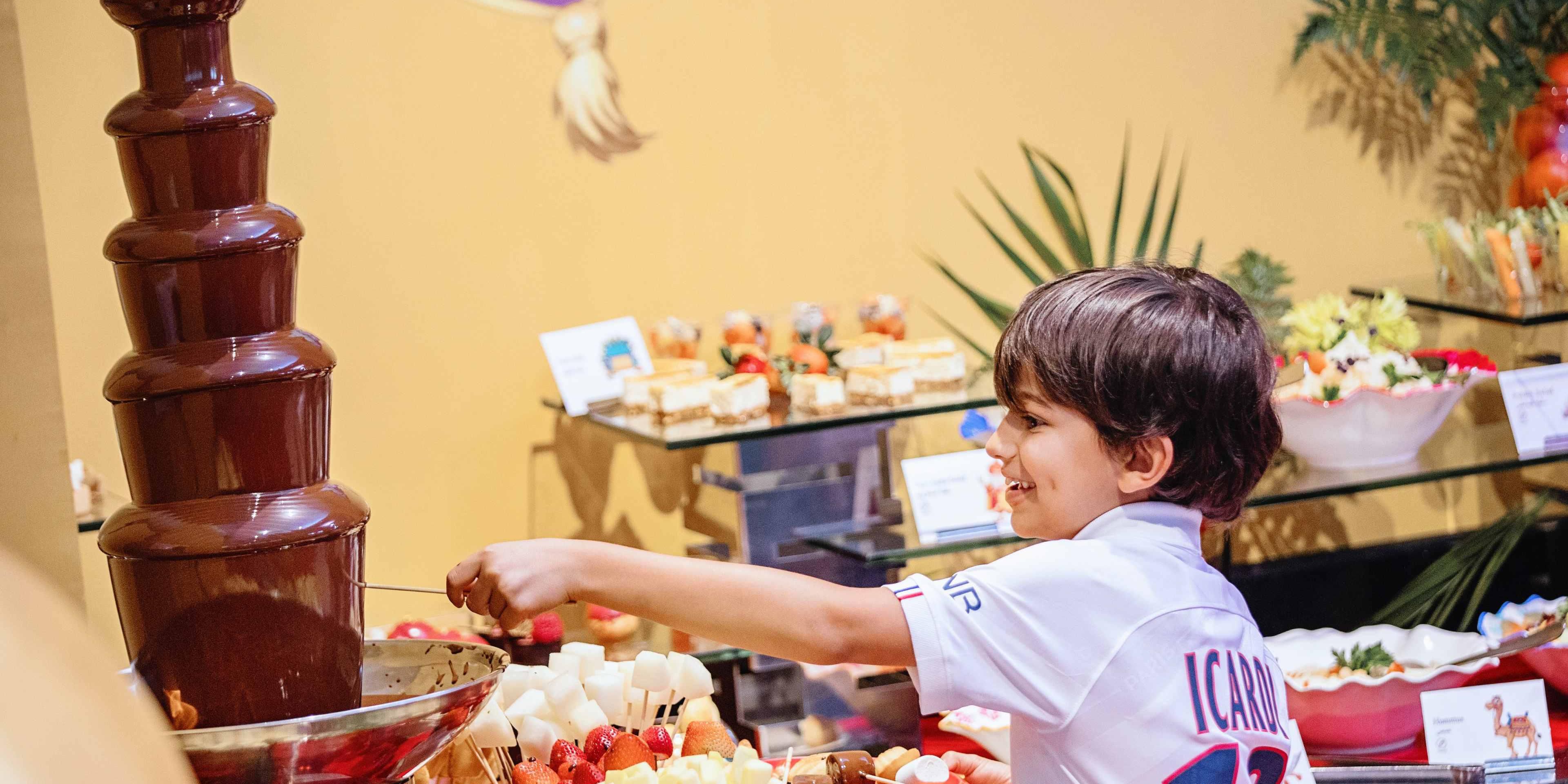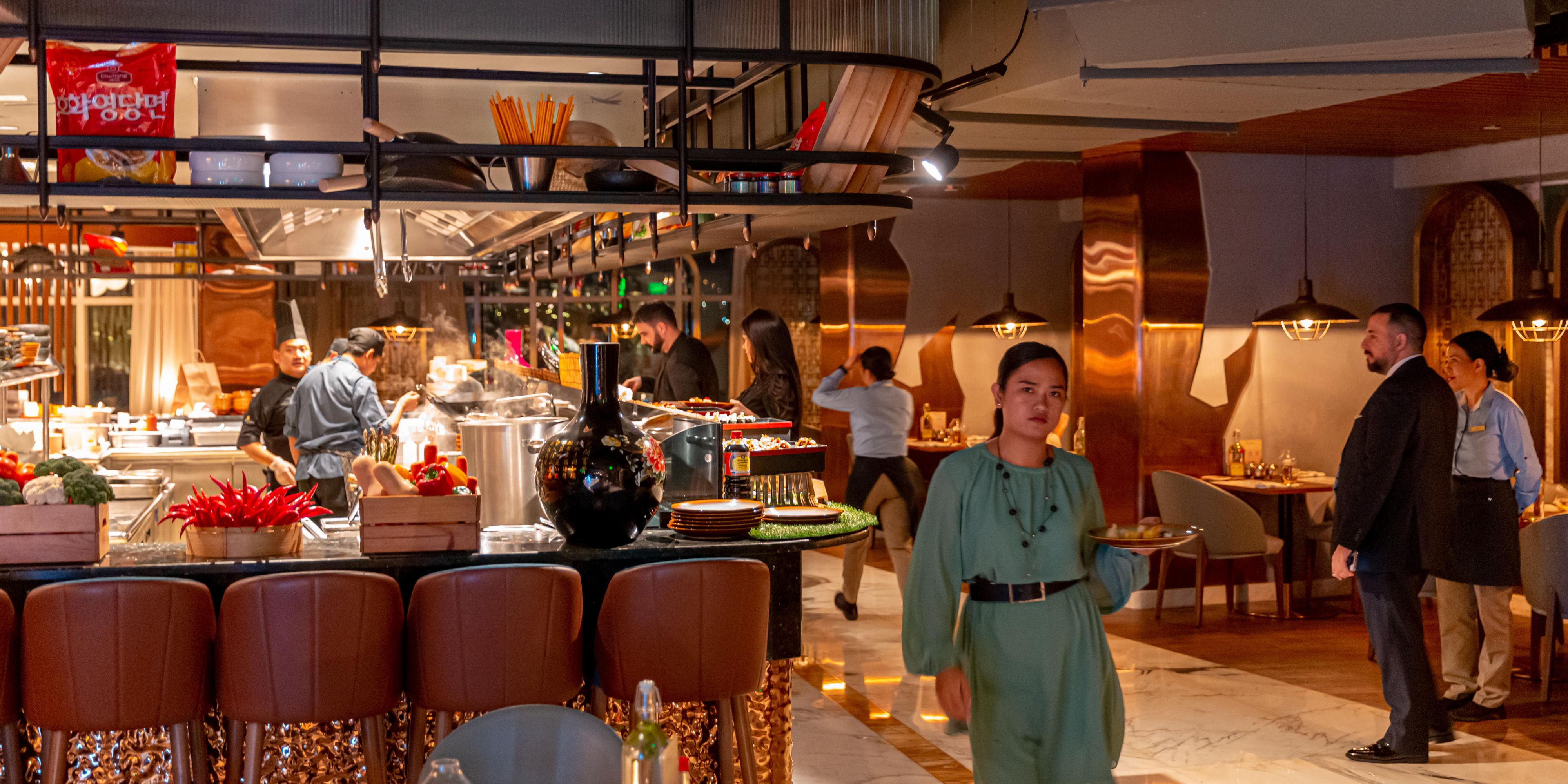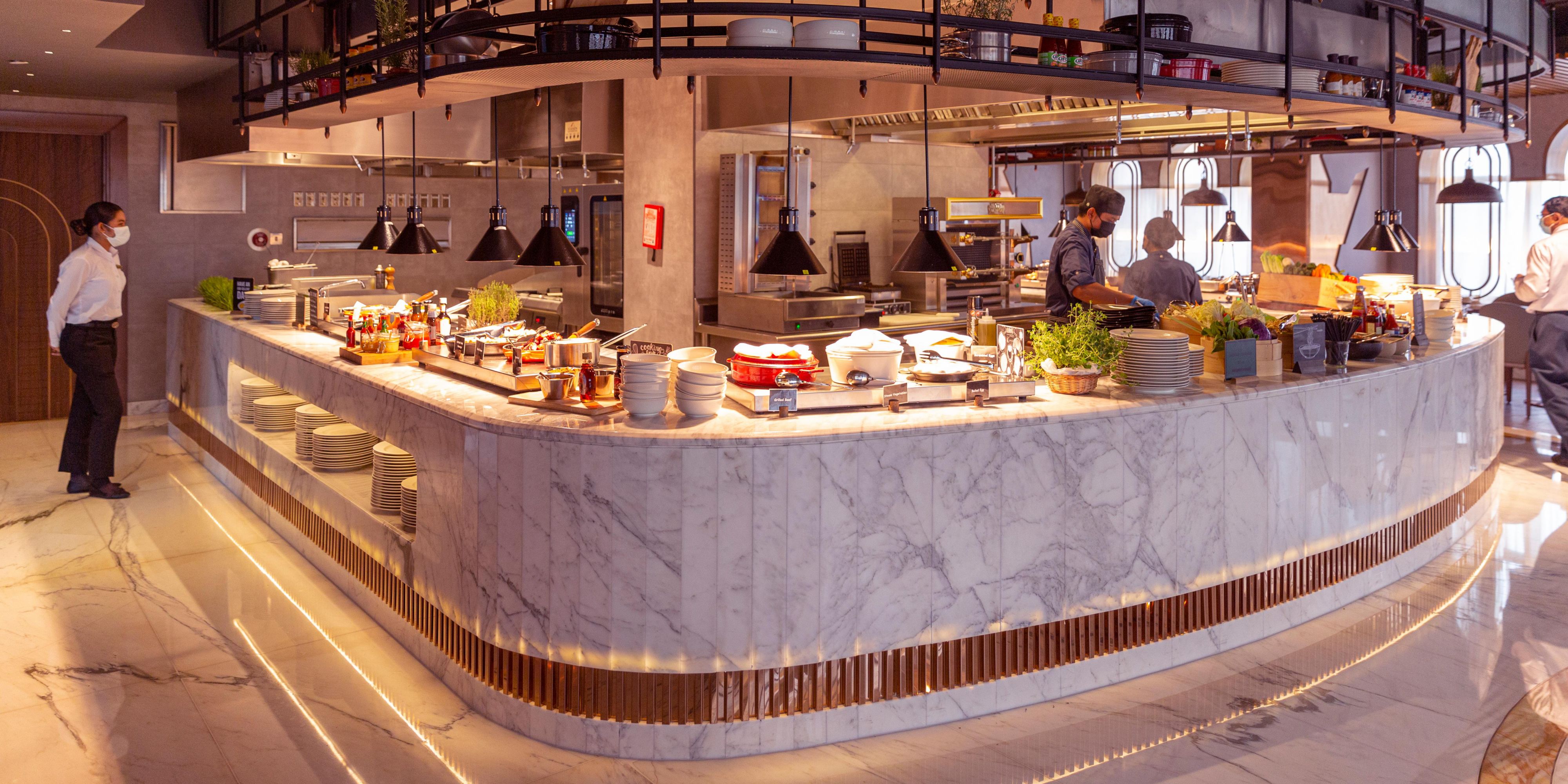 A culinary adventure with a warm, family-friendly atmosphere. Enjoy a lively and engaging dining experience with open kitchens and chef stations, creating a vibrant energy that brings joy to everyone. The restaurant features theme nights, such as Butcher Night, where you can handpick your cut of meat, and the Seafood Market Night with the freshest catch. There's also a dedicated kids' club area to ensure everyone has a fantastic time.
