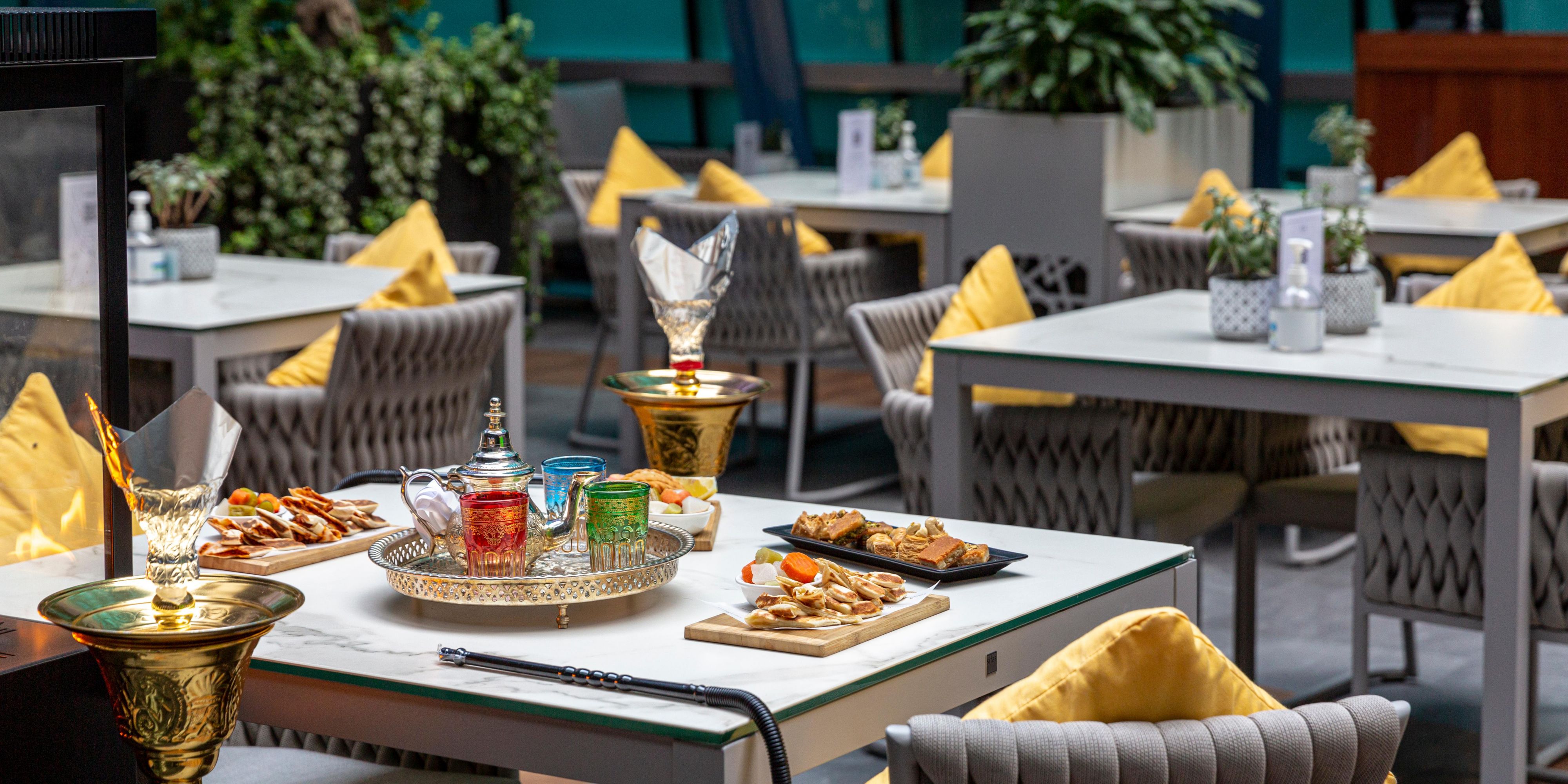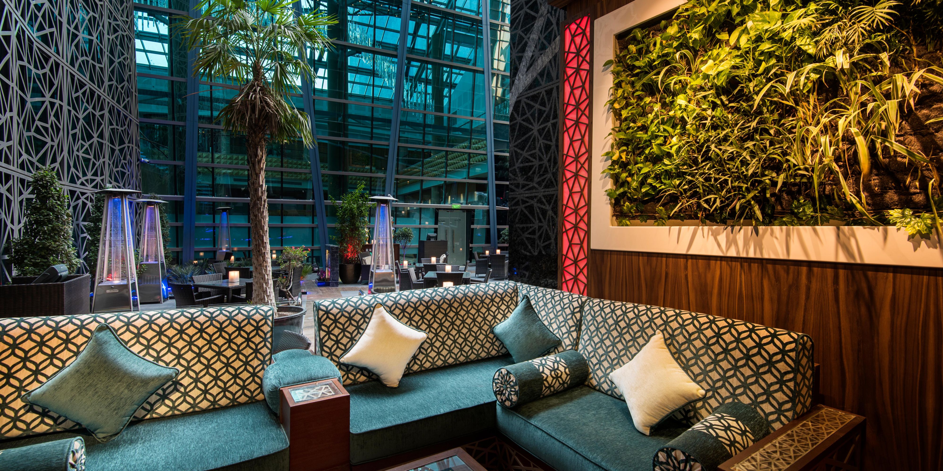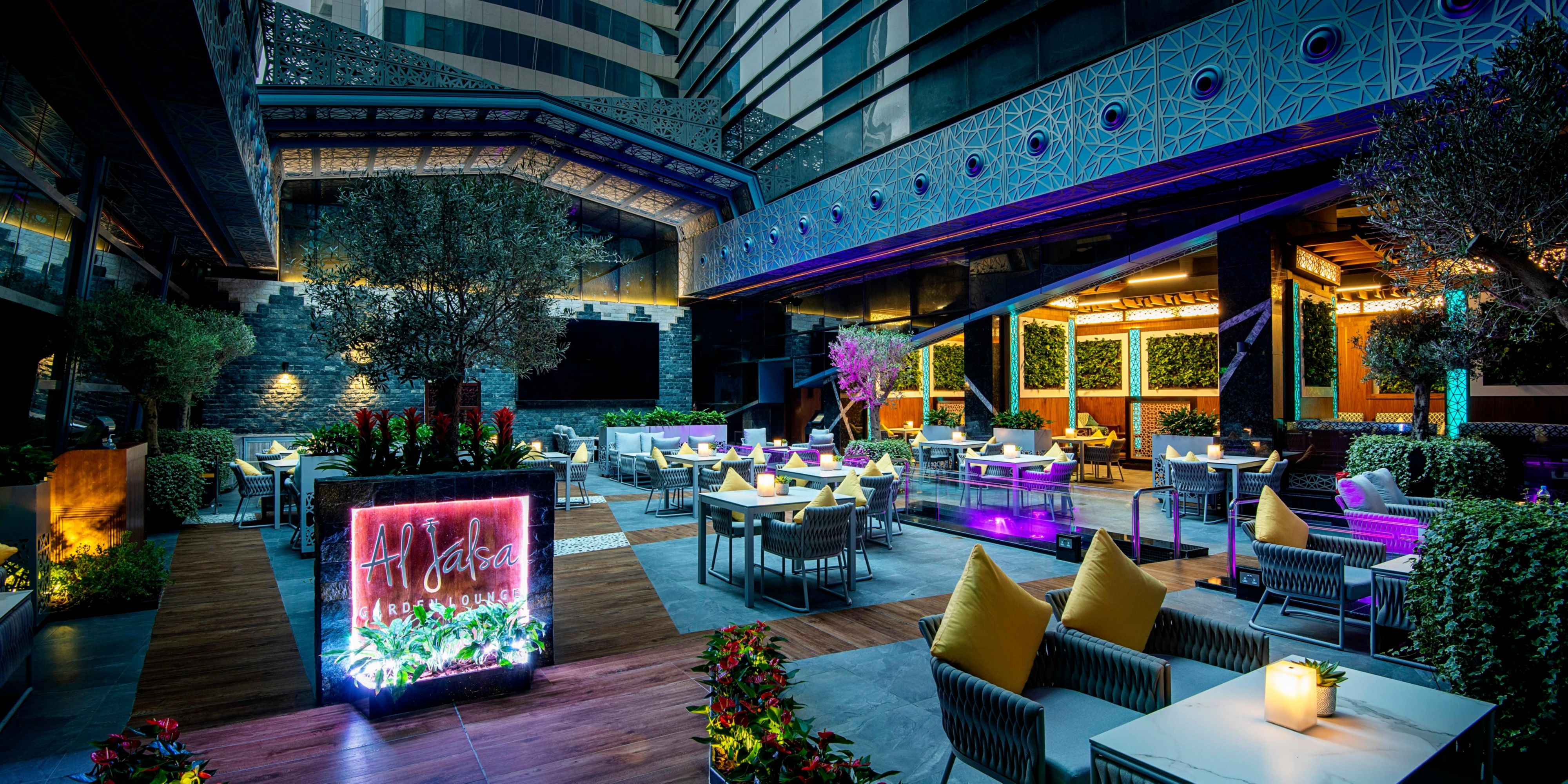 What could be better than eating under the stars? In the peaceful open air Al Jalsa Garden Lounge you can settle down to a Middle Eastern breakfast, lunch or dinner, choose from an extensive shisha menu and sip on delicious mocktails, embraced by plants, fountains and colourful mood lighting.