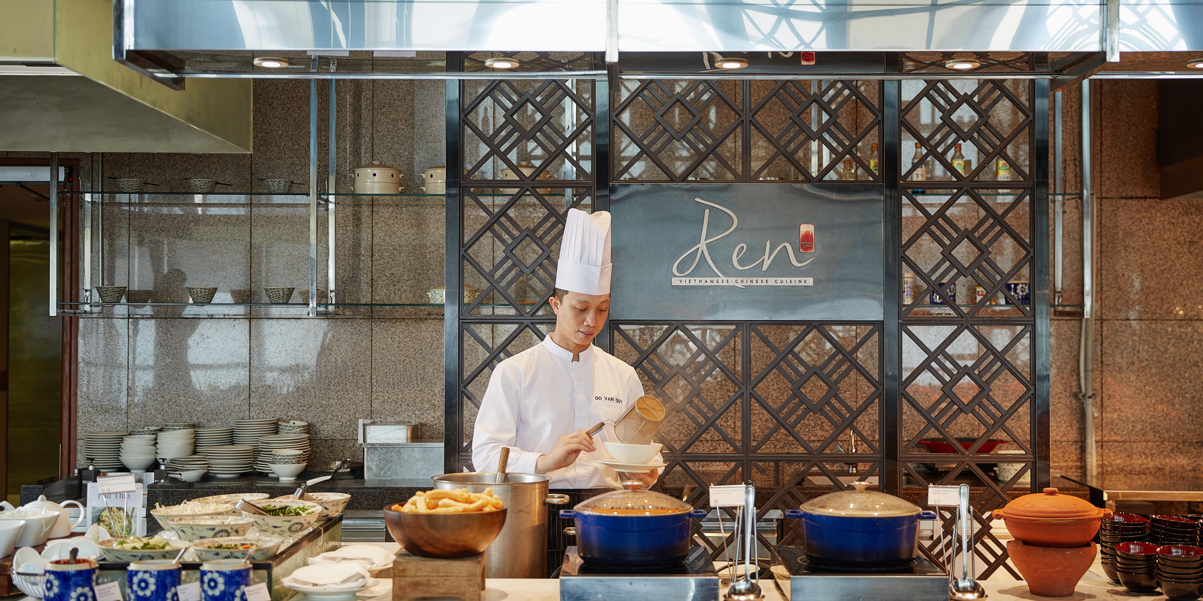 With panoramic views of Hanoi skyline, 3 Spoons offers a vibrant dining experience, featuring a curated selection of global cuisines. Beyond the extensive breakfast buffet, guests can witness chef's artistry firsthand. Savor authentic Vietnamese dishes, fresh seafood and Korean BBQ from dedicated Japanese and Korean kitchens. For European flavors, enjoy fragrant Italian breads, pastas and freshly made pizzas, creating a diverse culinary journey in an unforgettable setting.