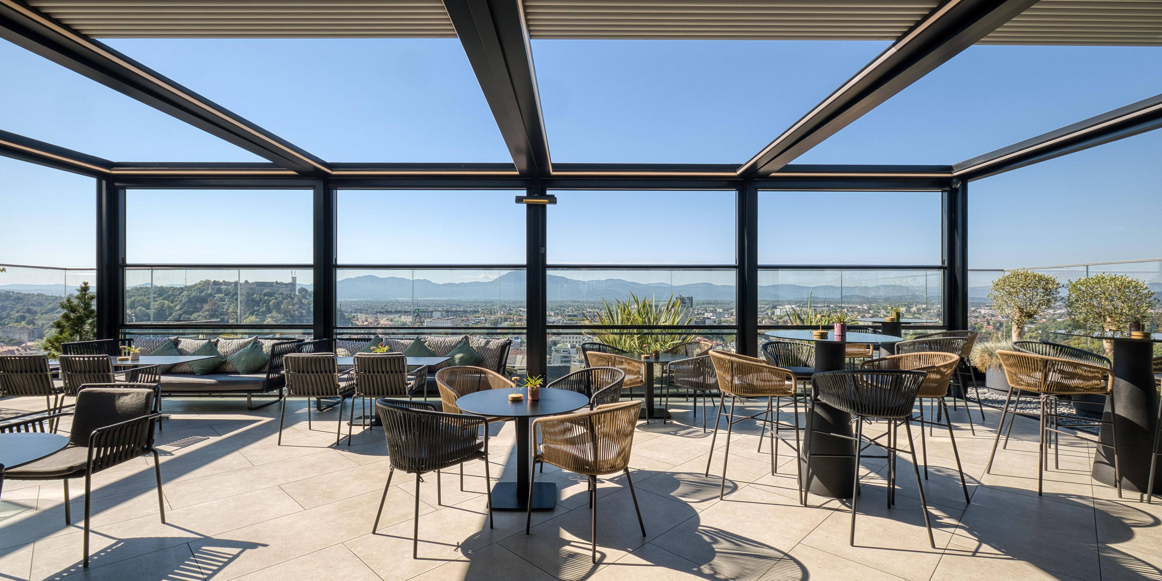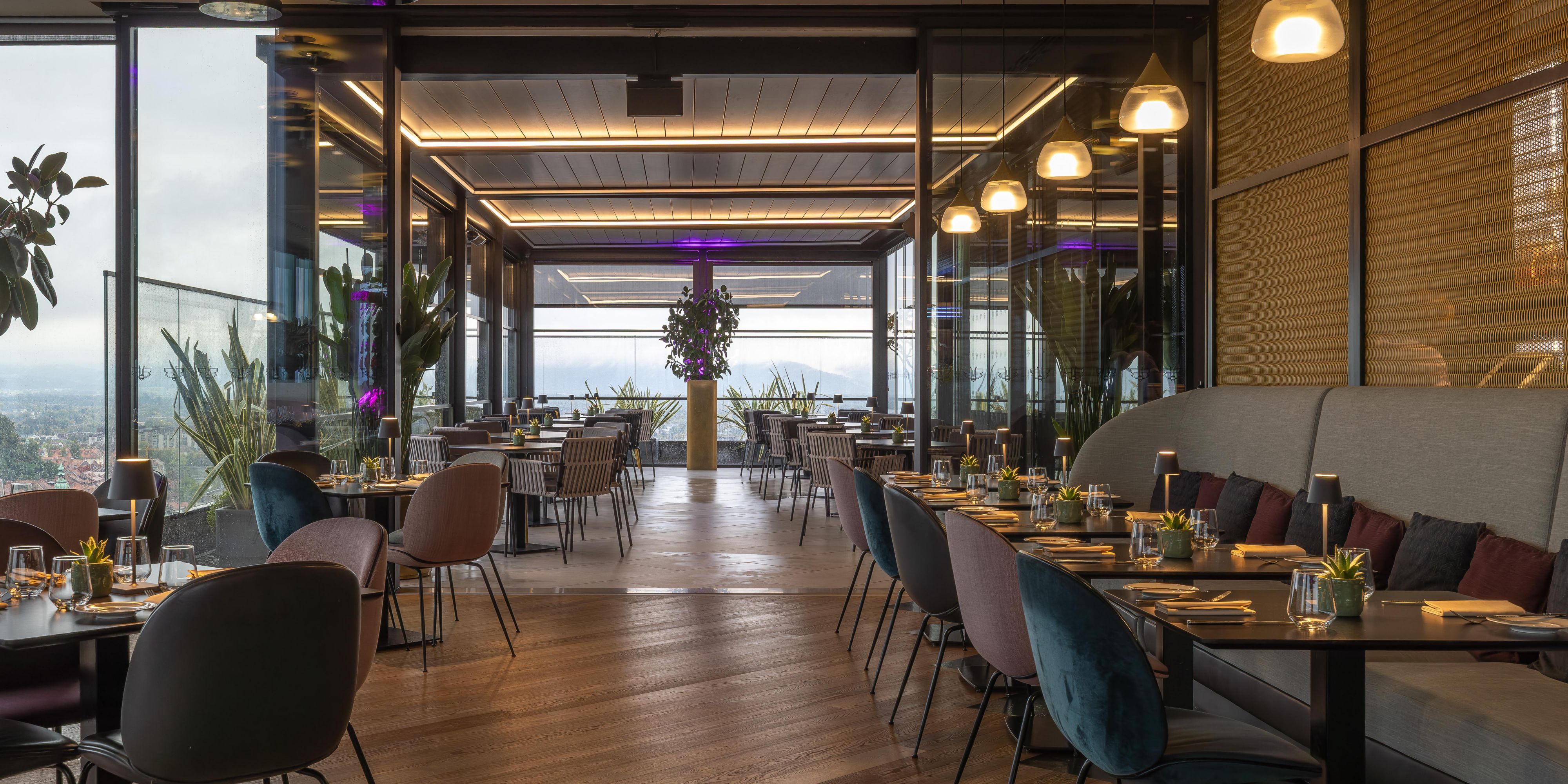 Michelin plate chef Komnen Bakic supervises the menu at B restaurant, combining culinary artistry with a chic rooftop setting to celebrate the pleasure of the dining experience. Exquisite seasonal cuisine, local ingredients and atmospheric lighting make it the most exciting fine dining restaurant in Ljubljana.