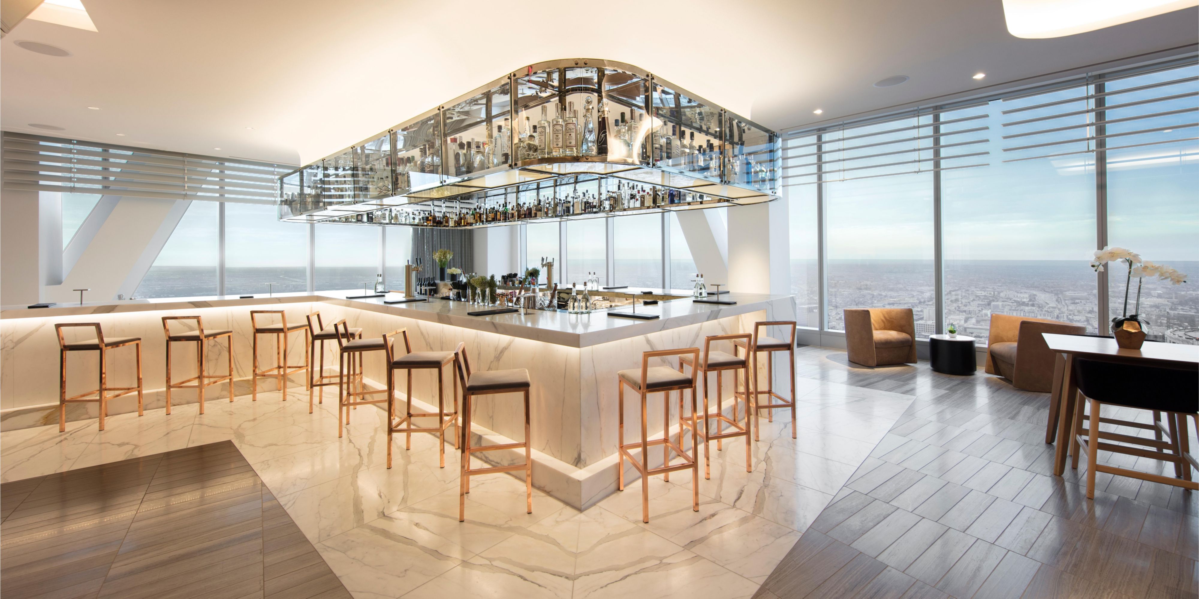 Spire 73 is perched on the hotel's 73rd floor and offers breathtaking views of famous sites, including Dodger Stadium, the Hollywood Sign, the Griffith Park Observatory, and the Pacific Ocean. As the highest rooftop bar and lounge in the Western Hemisphere, Spire 73 captivates visitors with its sweeping 360-degree view of the city, sleek design, and classic cocktails with a modern twist. Savor gourmet appetizers and signature drinks with the Los Angeles skyline as the backdrop.
