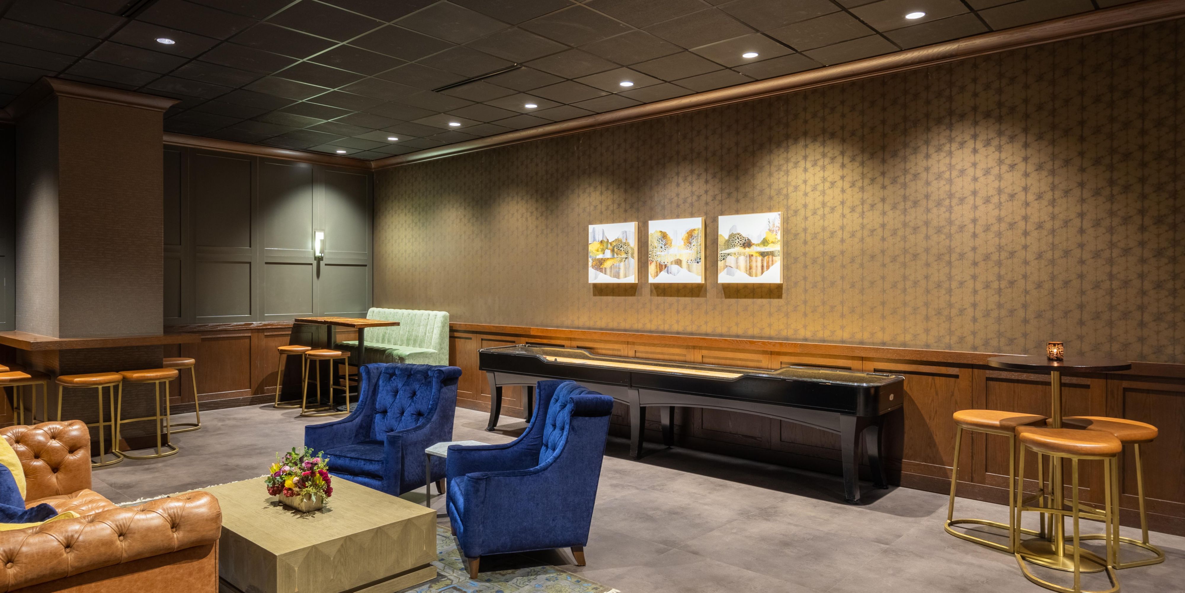 A revelry forward gaming hall featuring gastropub favorites, expertly crafted cocktails, a wide beer selection and interactive entertainment that energizes both players and spectators of shuffleboard, foosball or pool. Waking up as the day winds down, the space opens for happy hour. Warm and welcoming, it is the modern day version of a party in the billiard room of the mansion of a lumber baron. A hub of joviality, this is the place to lounge about with friends or to meet and make new ones.