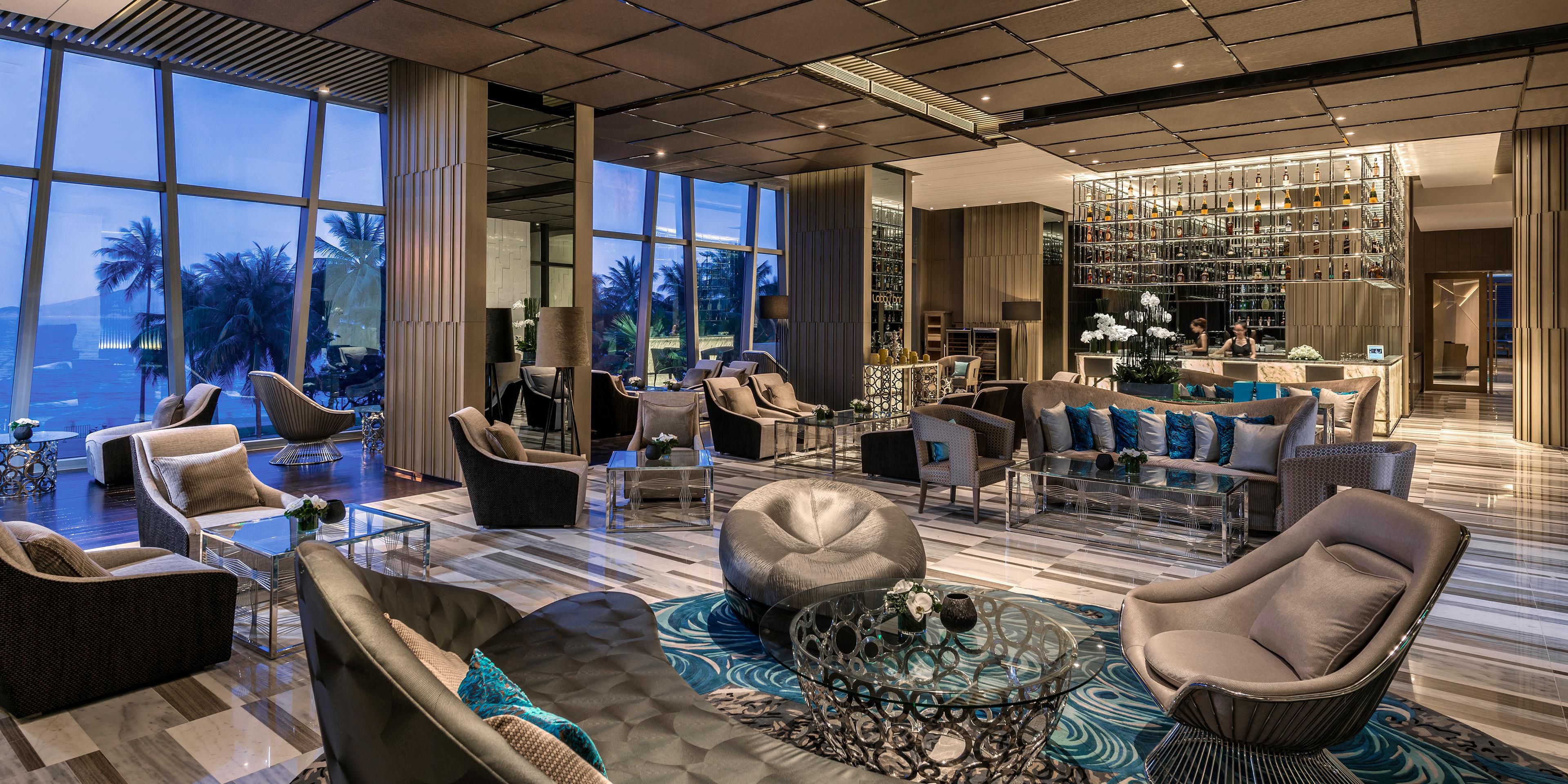 The Lobby Lounge features a full-length glass window displaying a mesmerising panorama of Nha Trang Bay and comfortable lounges with indoor and outdoor seating options. From early morning to late evening, relax in an elegant and contemporary atmosphere while being served a fine selection of teas, local and international coffees, cocktails, chilled wines and premium spirits.