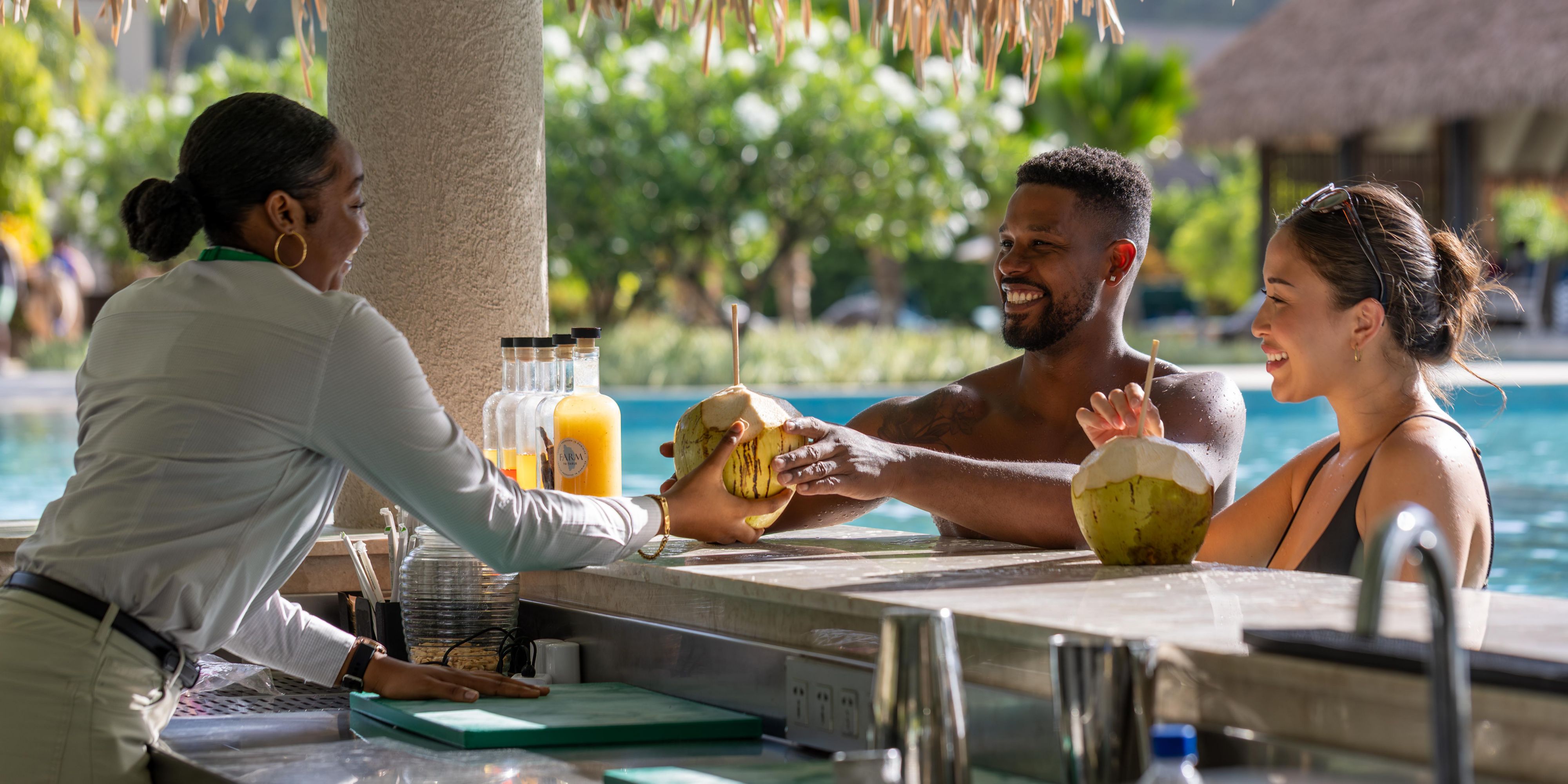 Discover our distinct selection of restaurants and bars. Enjoy breakfast buffet at Cabrits Market, lunch al fresco at Kwéyòl Beach Restaurant. Visit our swim-up bar for drinks and snack or sip rum cocktails infused at the Rumfire Bar.