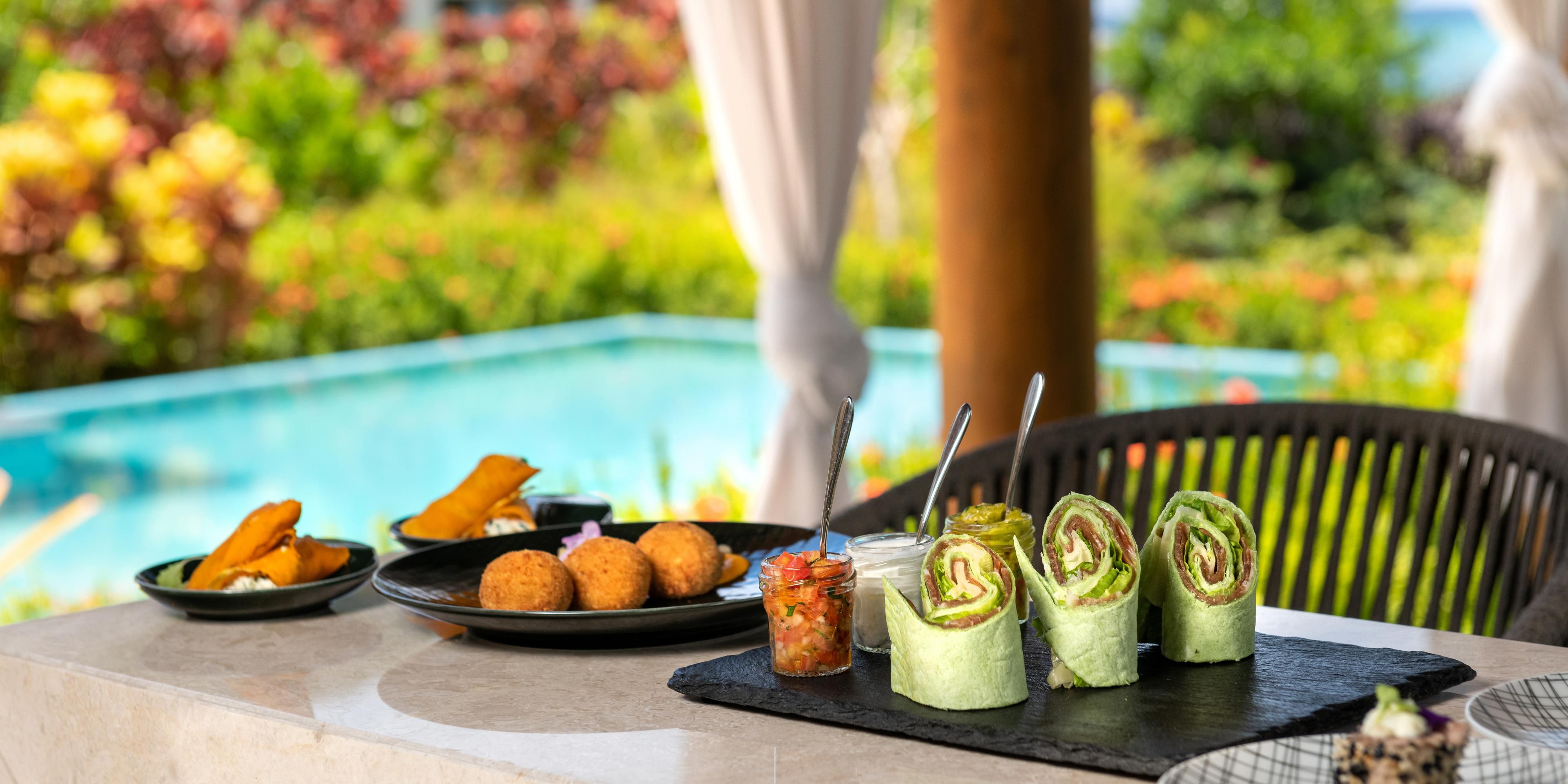 We invite you to dine at our beachfront restaurant that delivers sea to table fare with sophisticated simplicity. Our locally and internationally inspired creole dishes will delight during lunch. Perfectly situated adjacent to the main pool, Kwéyòl Restaurant offers a laidback charm and sunset ocean views from our terrace. We source all vegetables and herbs from our organic orchard and source our fish from local fishermen. With every bite, we are committed to giving back to our community.