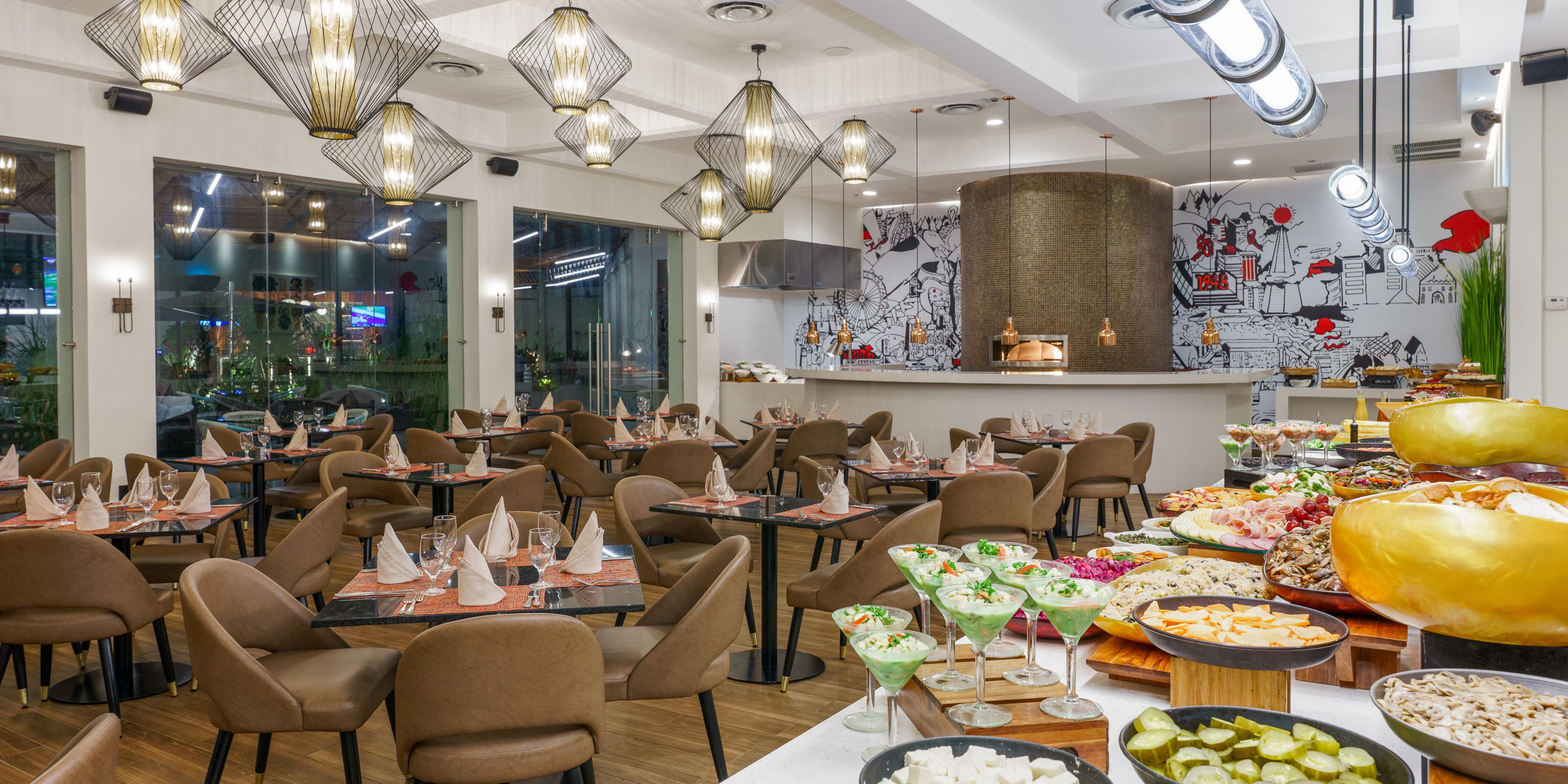 Discover a world of flavors at the newly renovated Bambú Restaurant. Enjoy an international buffet for breakfast, lunch, and dinner, or choose from our delicious à la carte options. Experience themed dinner nights, create custom dishes prepared by our chefs right before your eyes, or savor freshly baked stone oven pizza. Our diverse offerings and inviting atmosphere will keep you coming back for more.