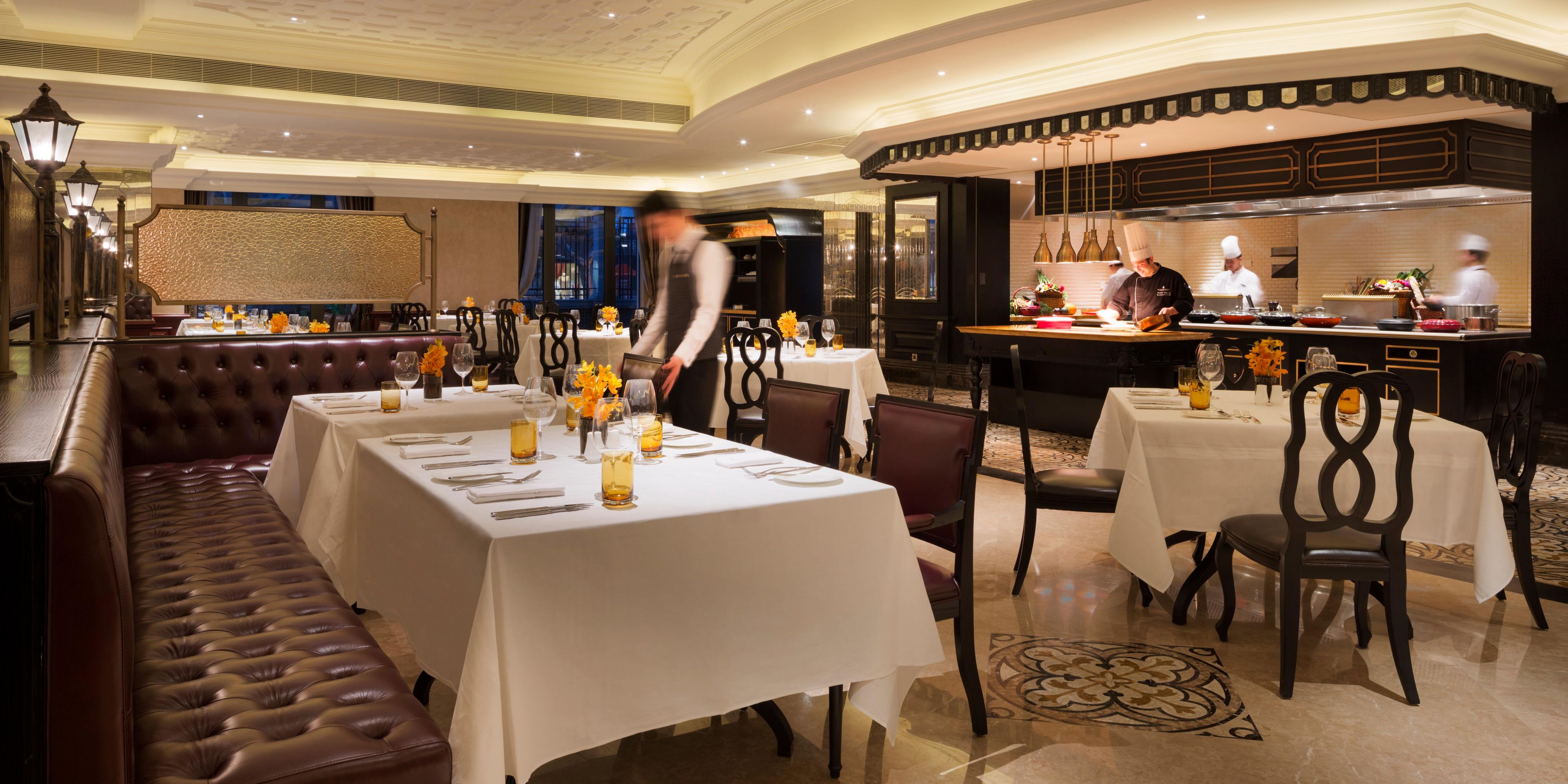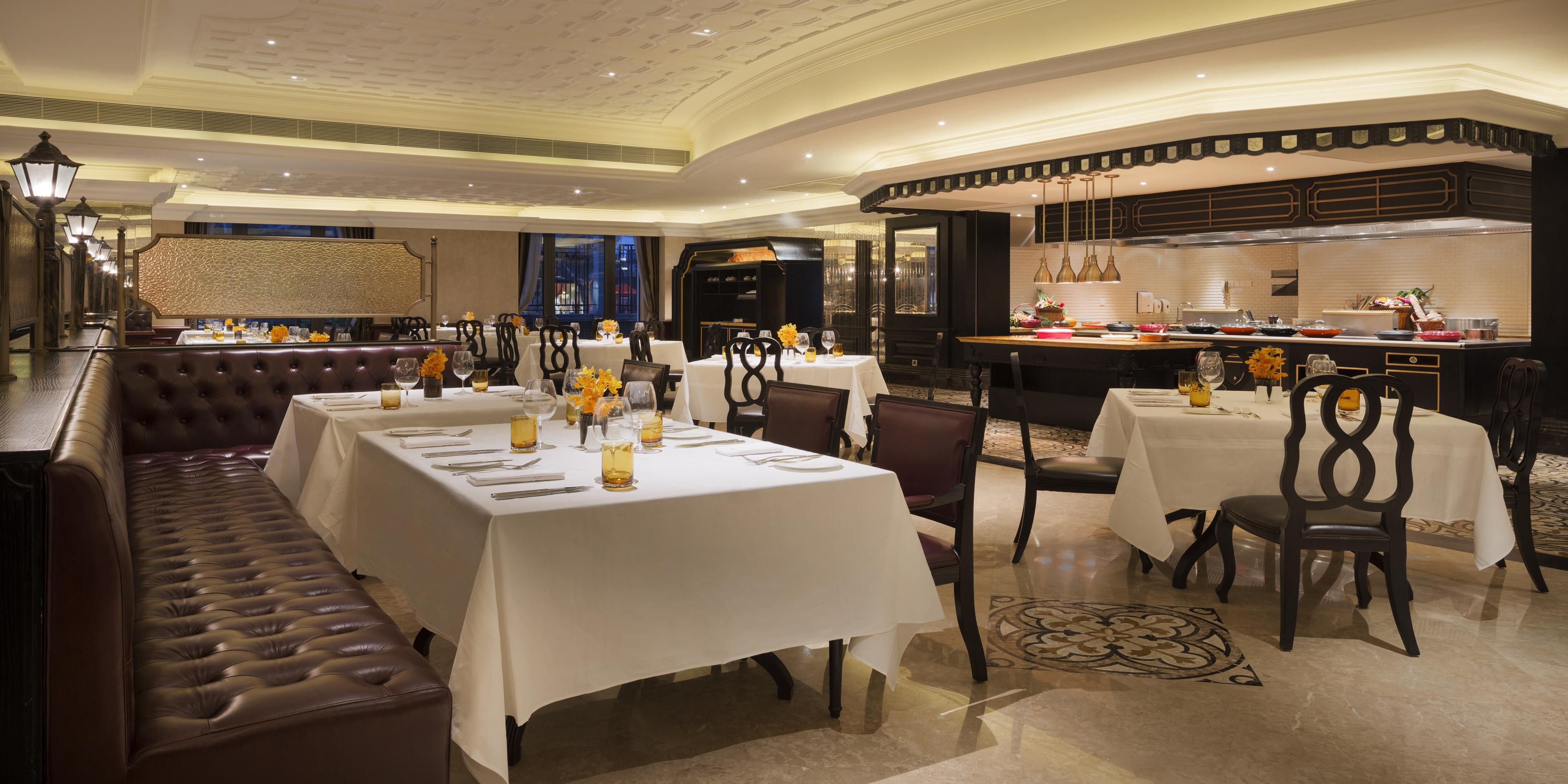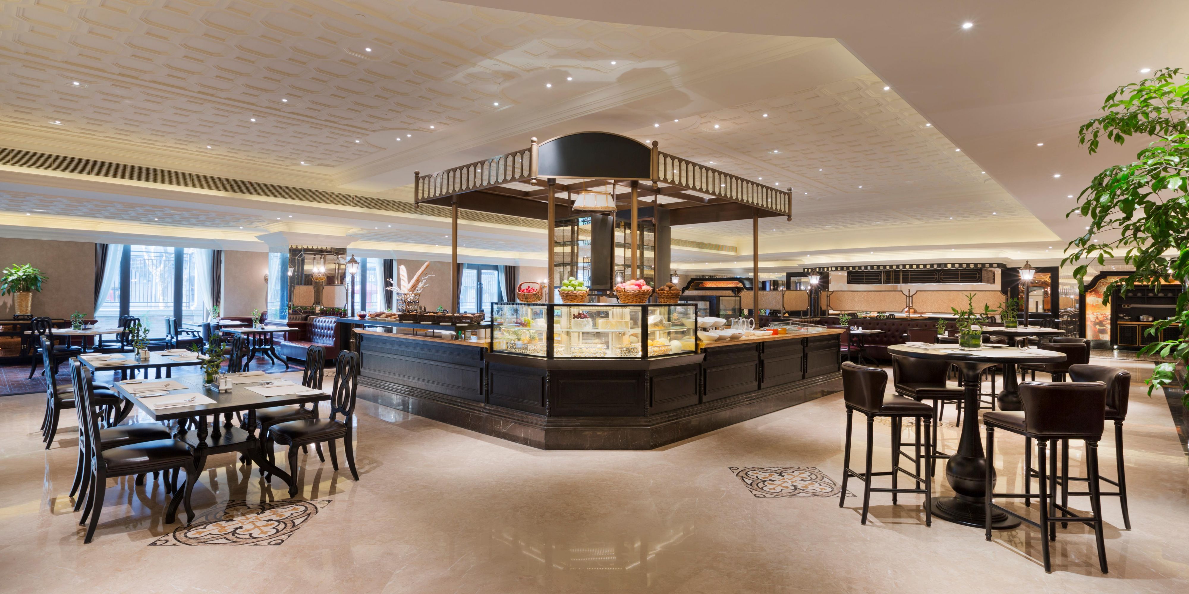 La Rue Buffet Breakfast and Buffet Lunch offers a truly awe inspiring dining experience filled with market fresh produce, gourmet recipes and a warm atmosphere. The restaurant is beautifully styled with coffered ceilings, patterned marble floors and black chesterfield booth seating. Floor to ceiling windows look out to the heritage gardens and romantic Fuxing Road, lined with French plane trees.