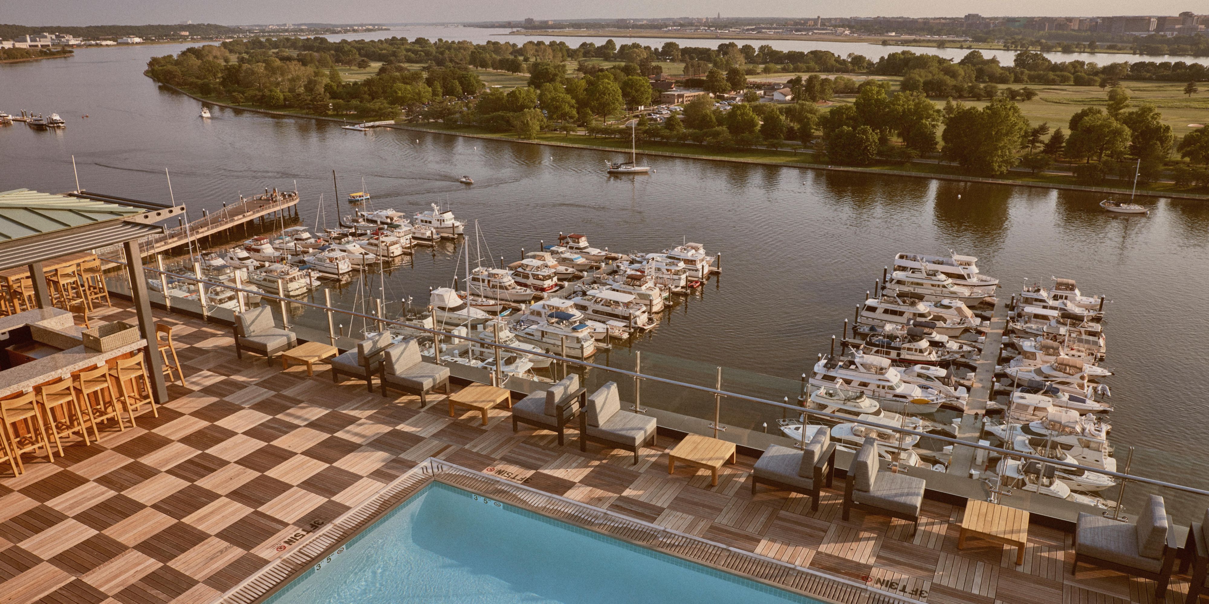 WAVES is currently closed for the season. Satisfy your cravings surrounded by The Wharf's most breathtaking vistas. Open seasonally, WAVES serves a selection of cocktails, craft beers, and a tempting selection of light bites, appetizers, and elevated tavern fare. WAVES dining and and rooftop pool are for hotel guest use only.