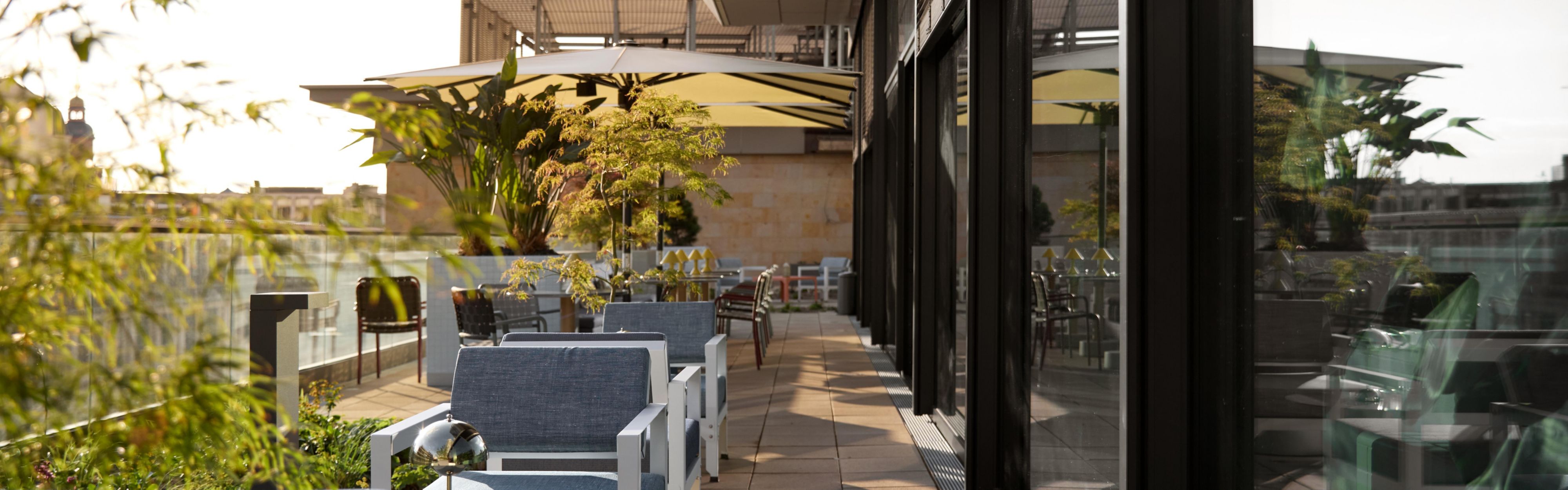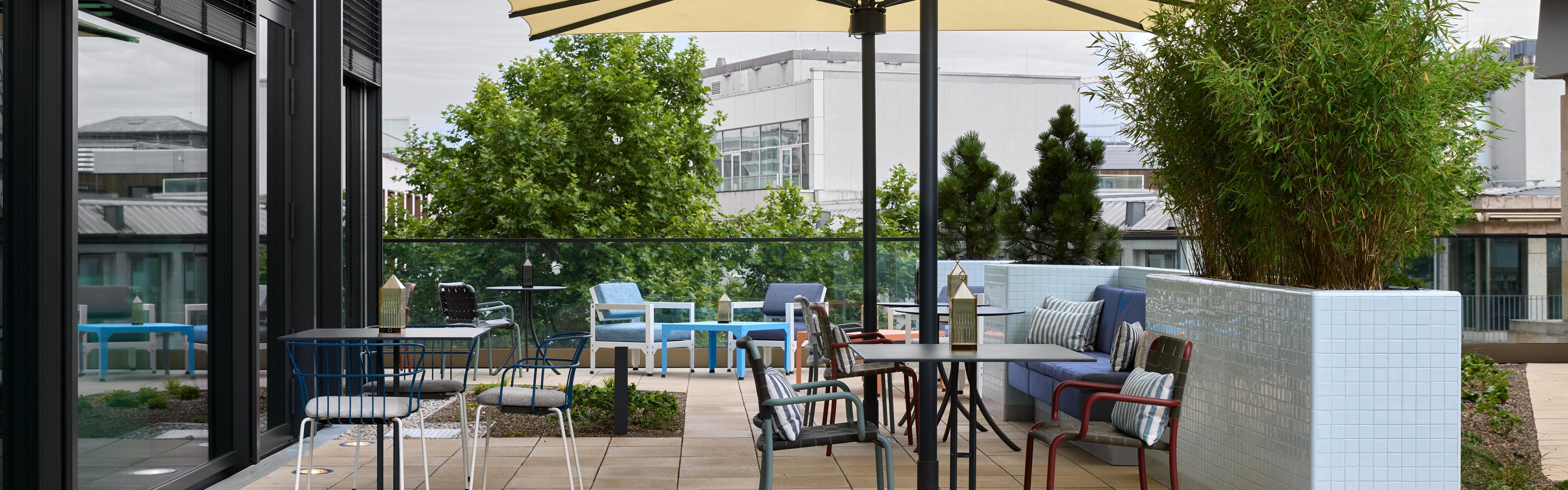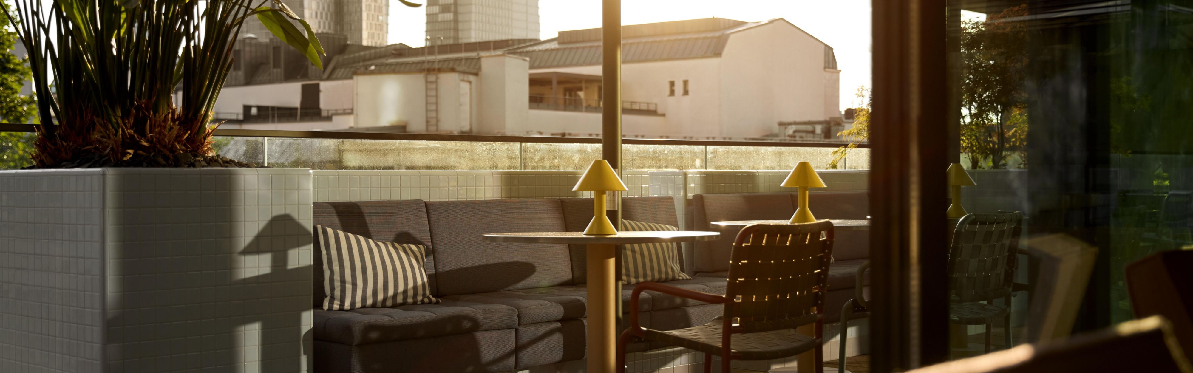 Located on the rooftop, 5th floor, this vibrant cocktail bar offers casual dining and drinks, complemented by stunning views of the Frankfurt skyline.